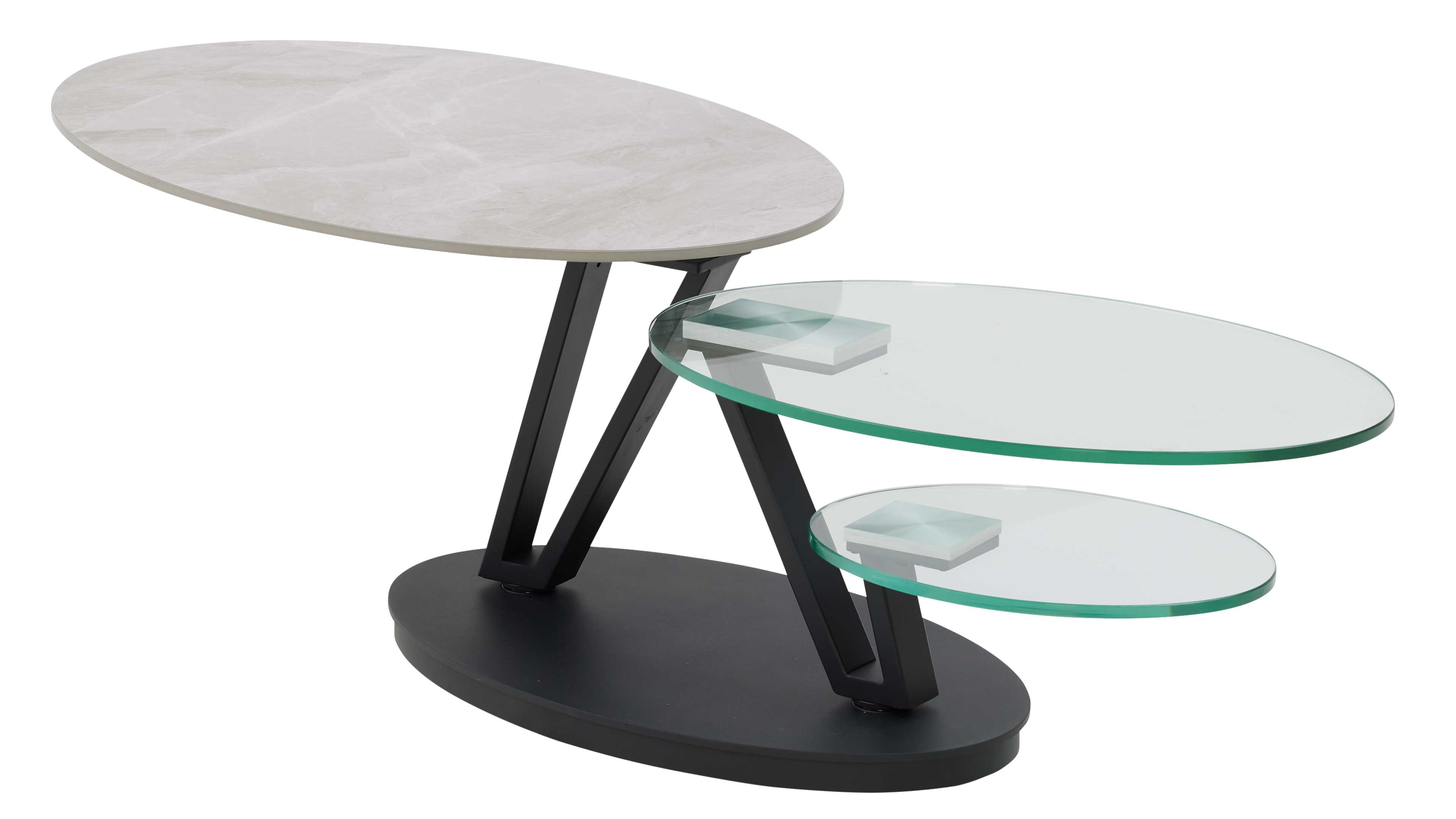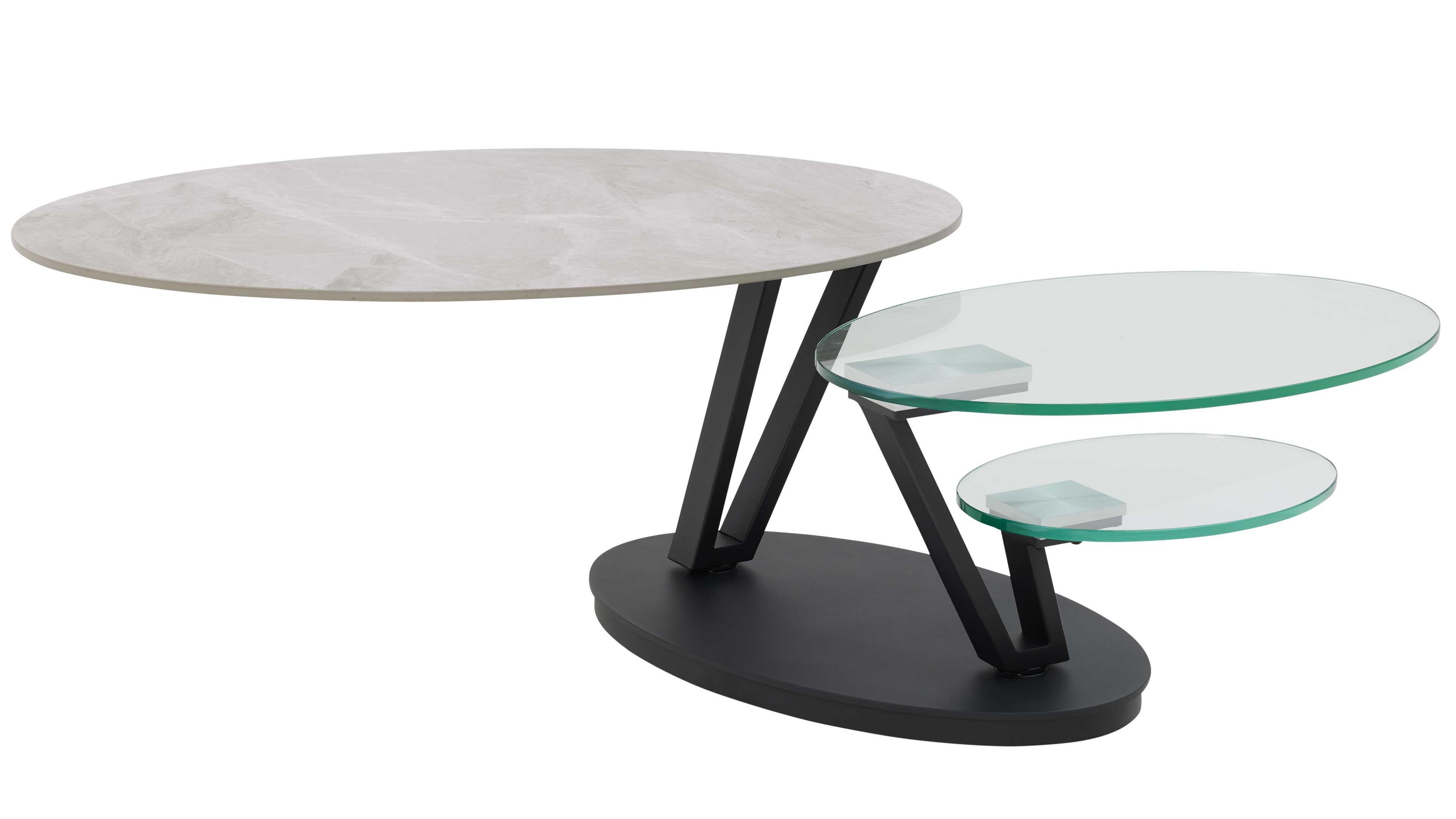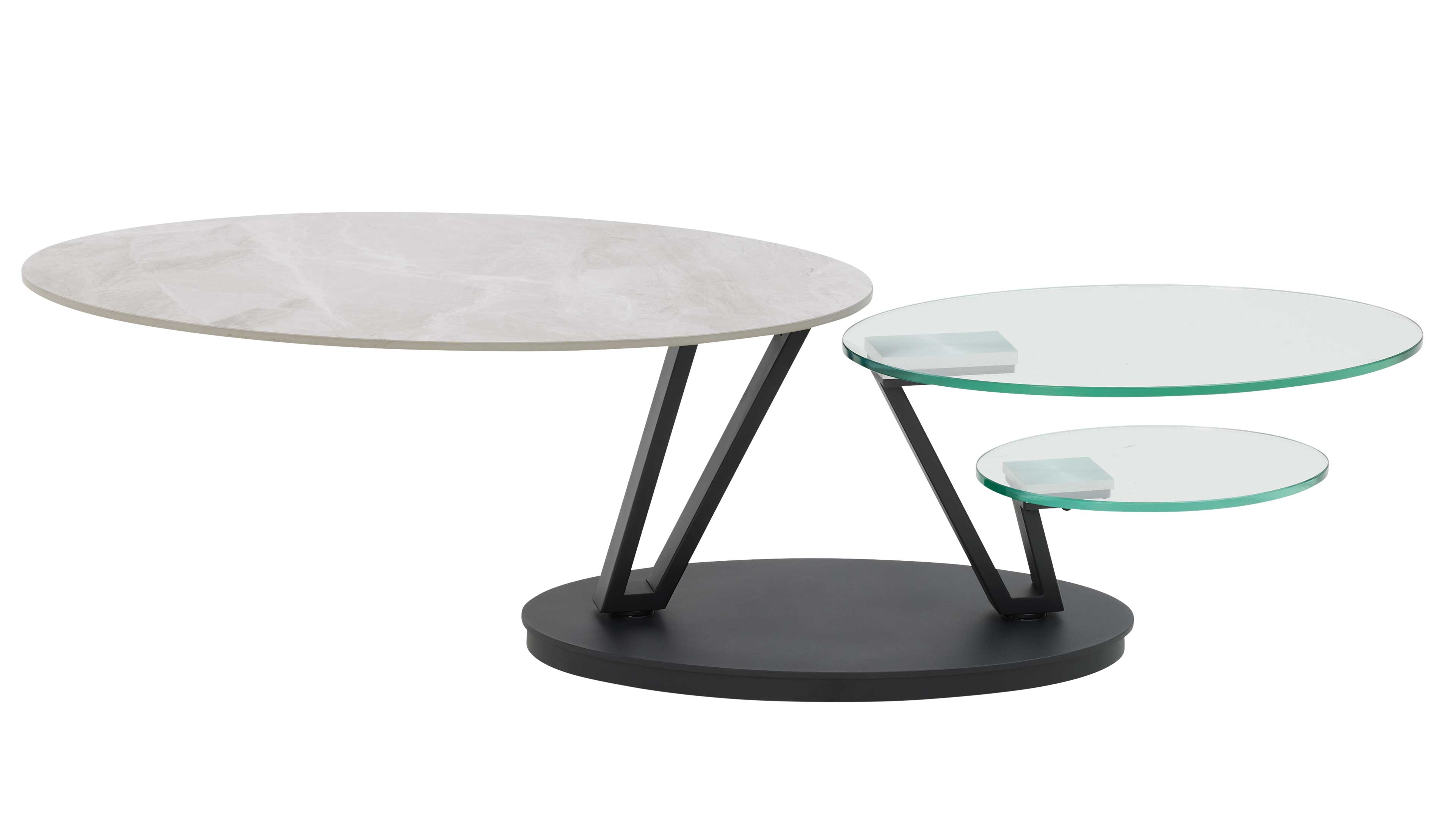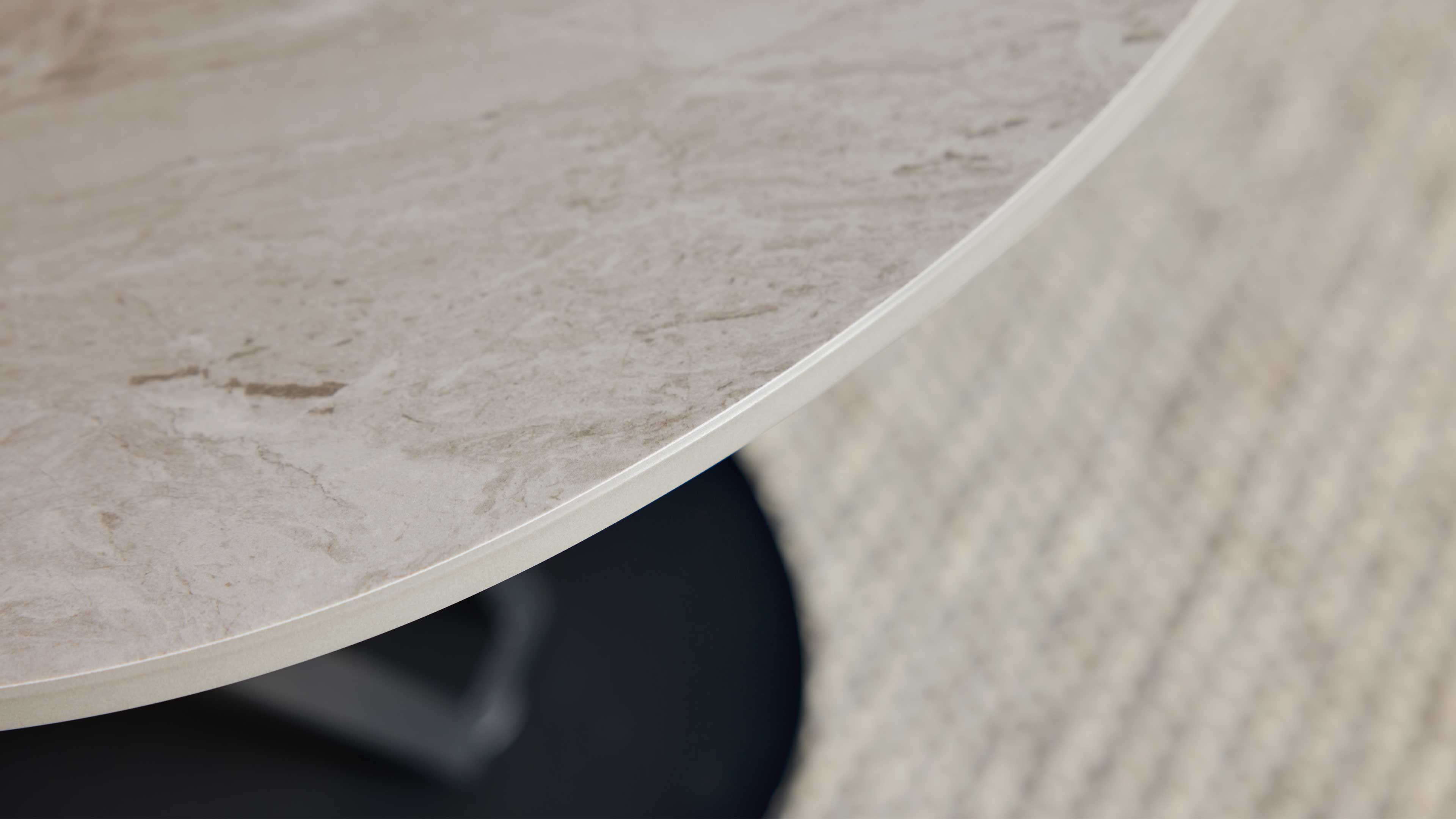 Couchtisch mit drehbarer Keramikplatte und schwarzem Sockel