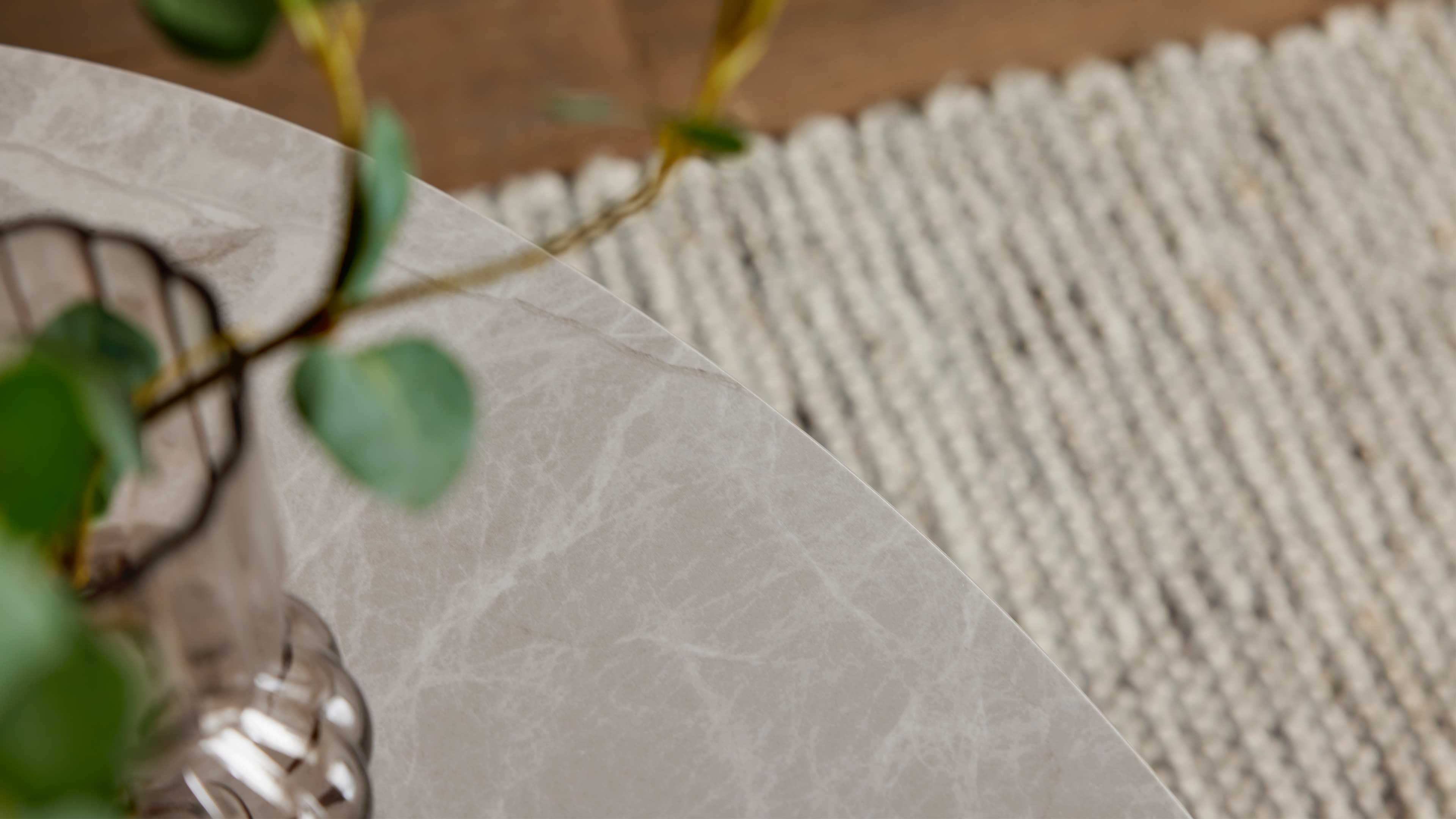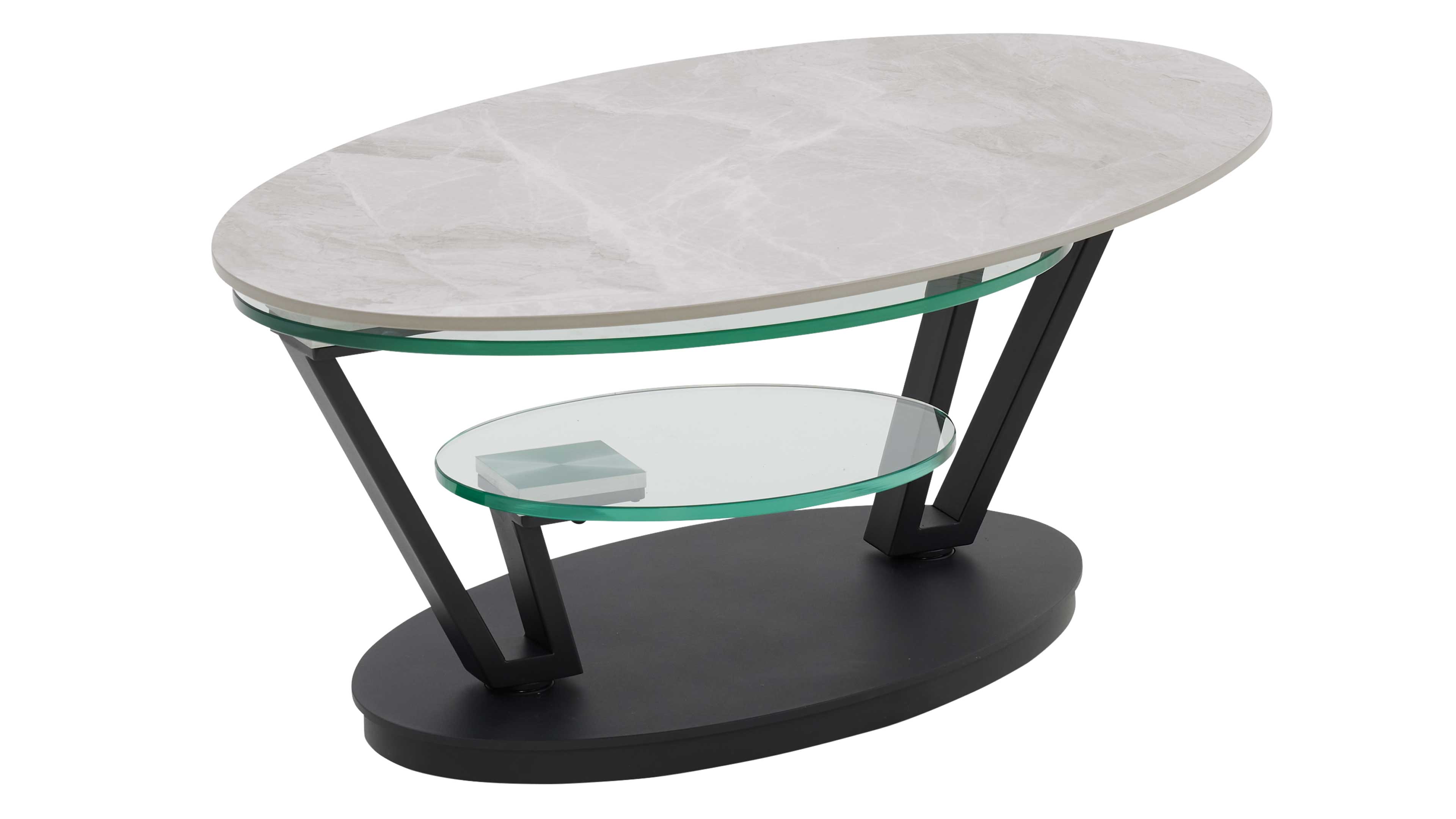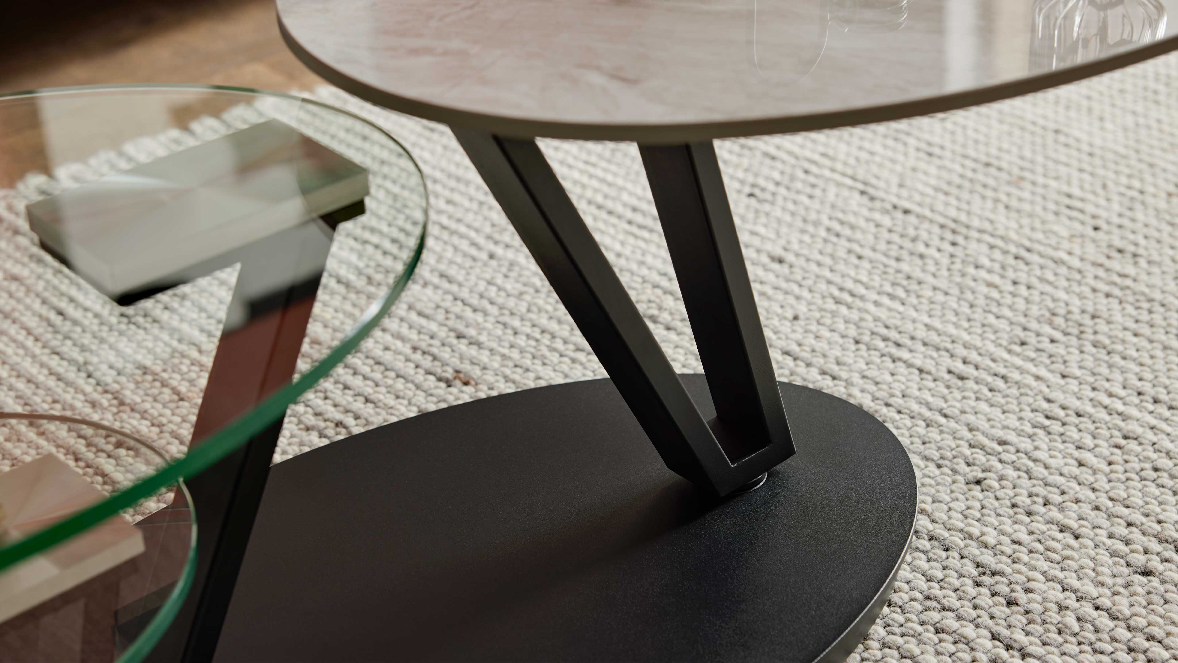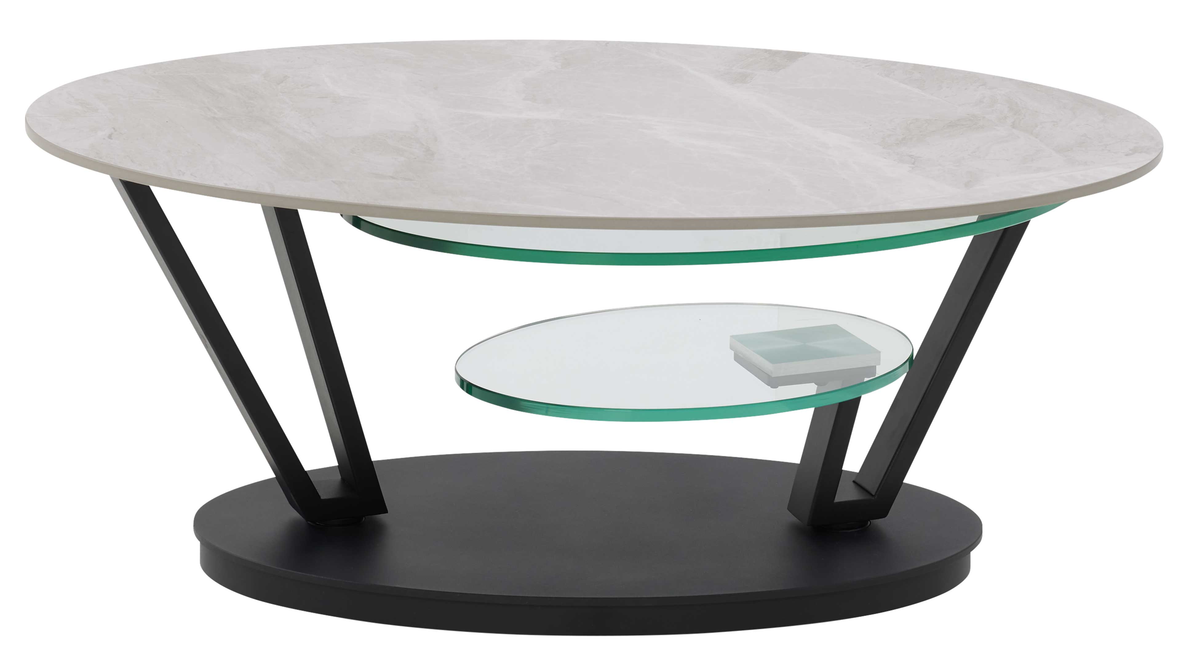 Couchtisch mit drehbarer Keramikplatte und schwarzem Sockel