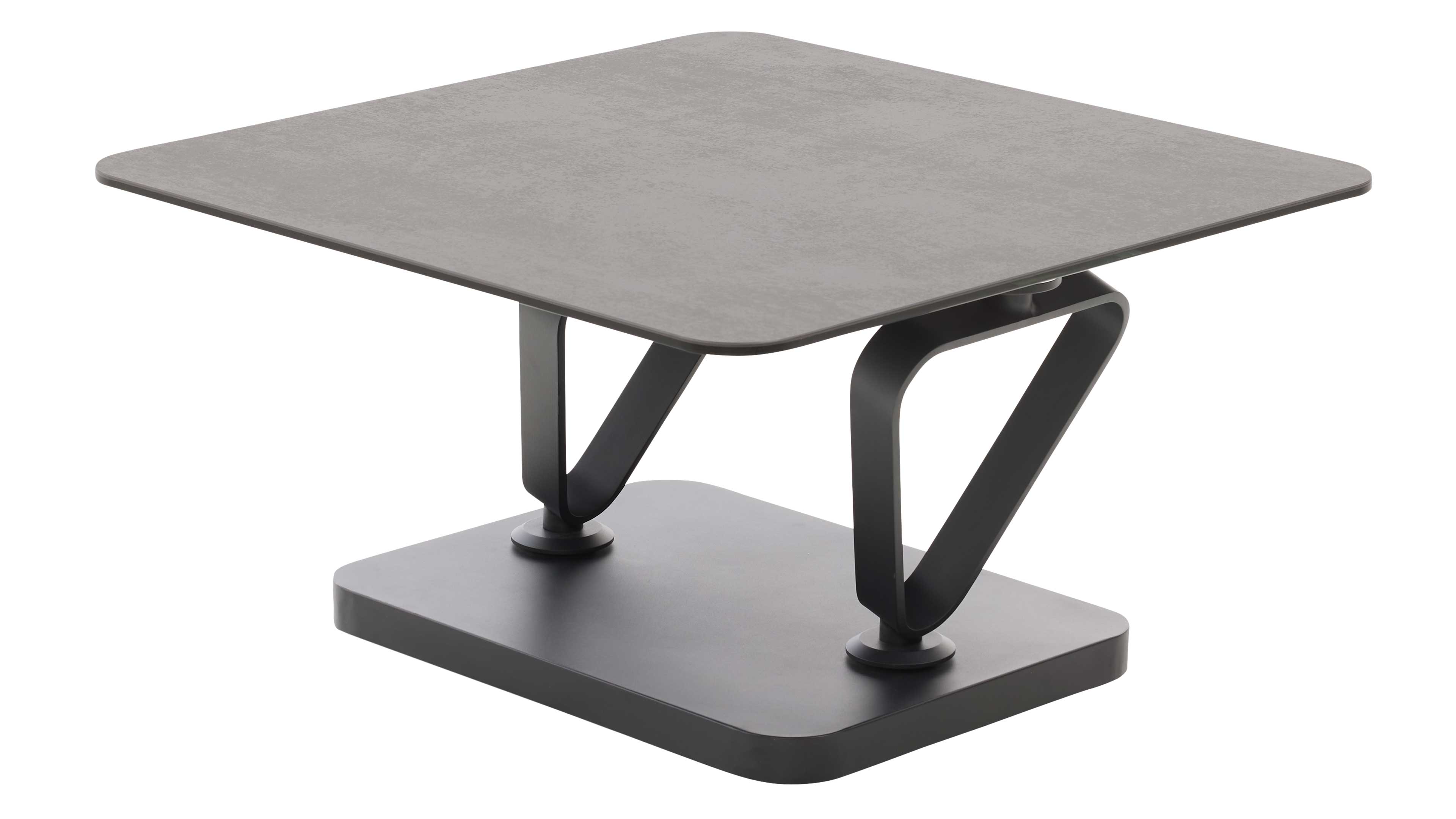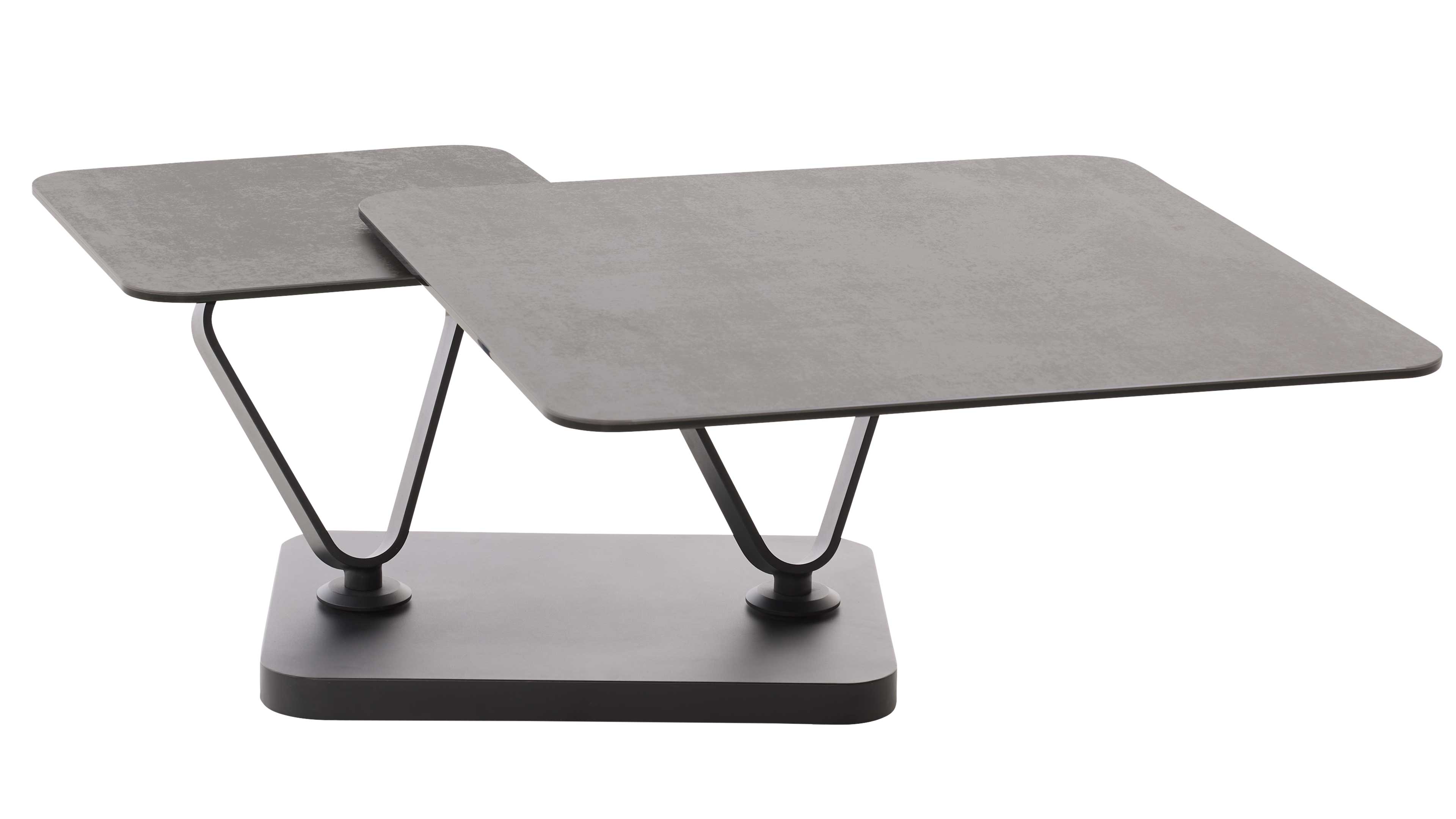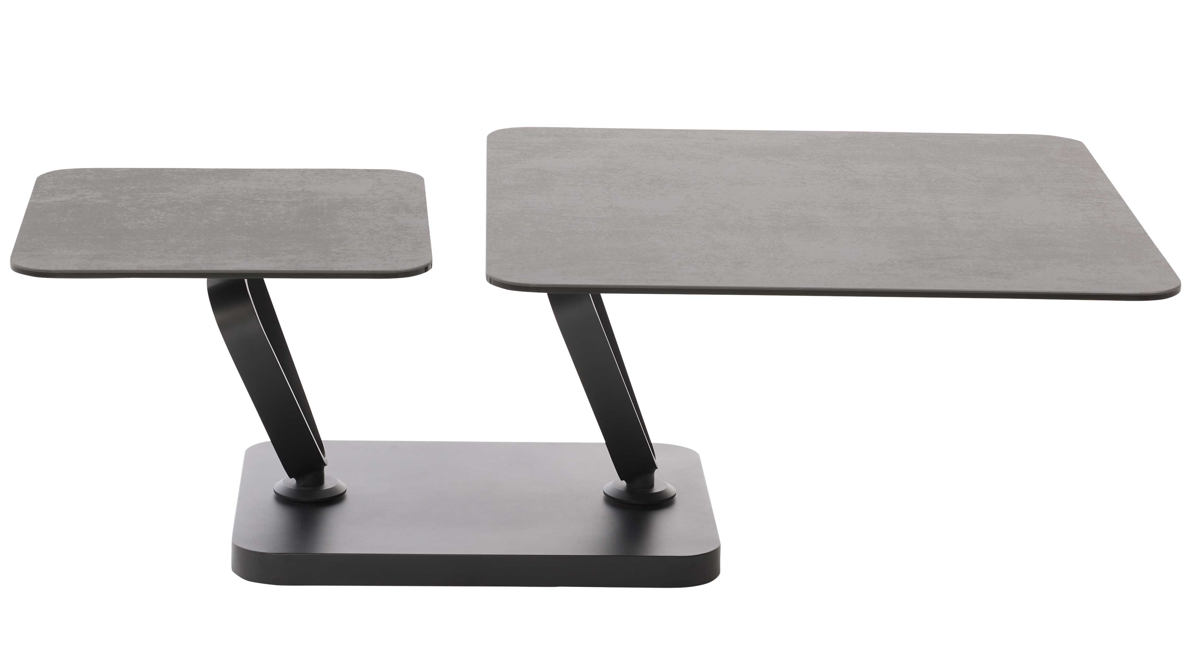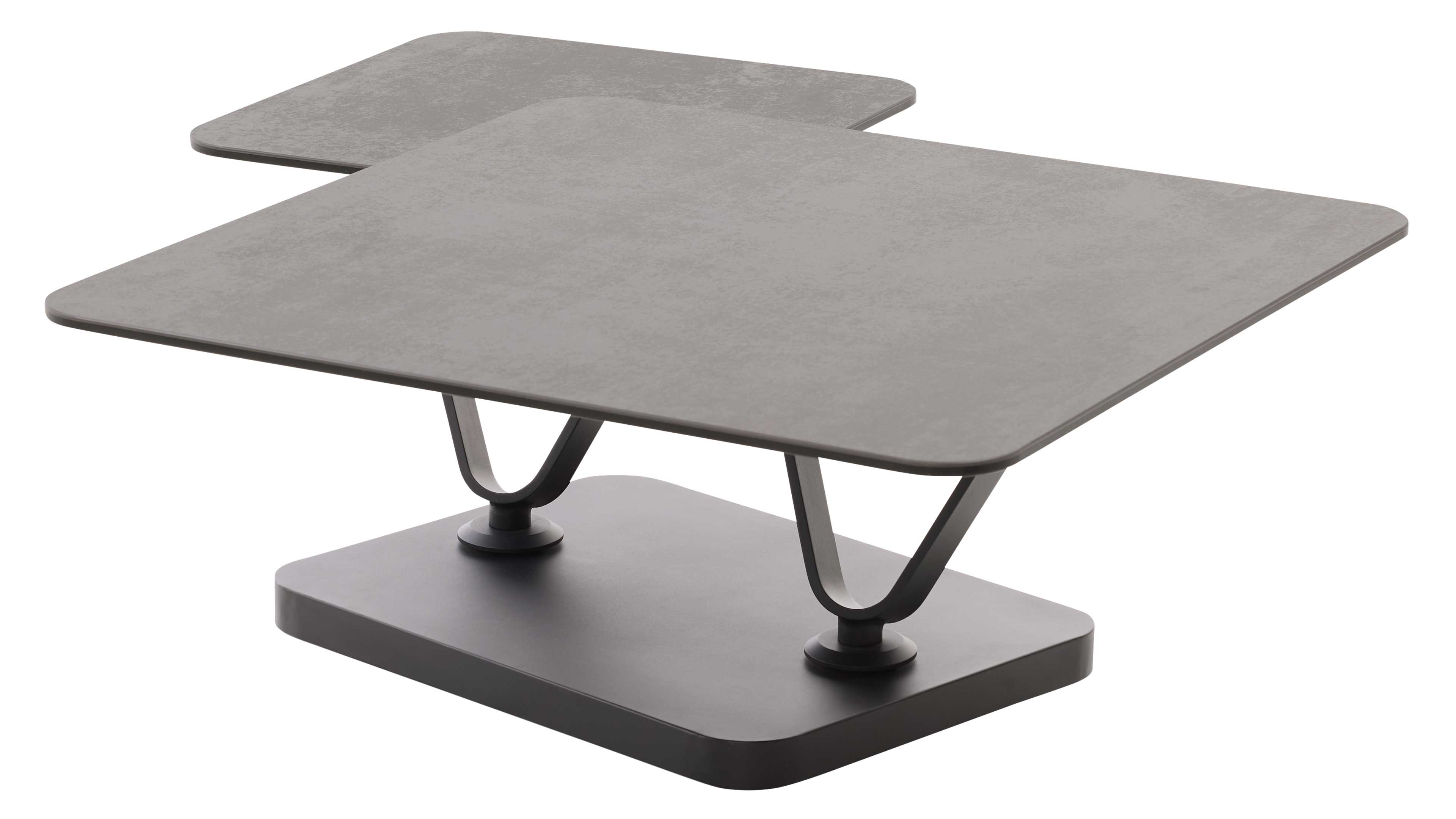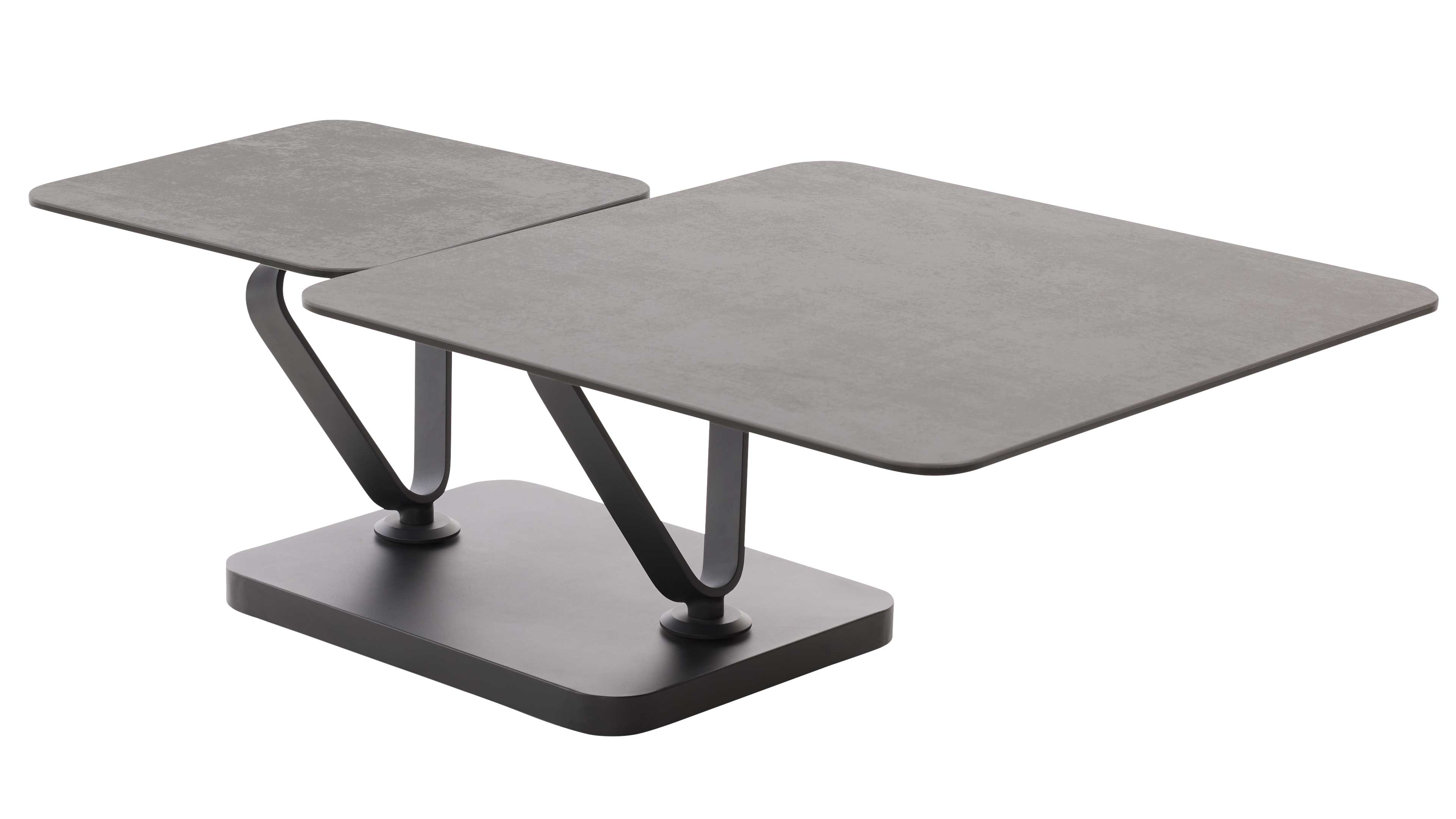 Couchtisch mit schwenkbaren Keramikplatten und schwarzem Sockel