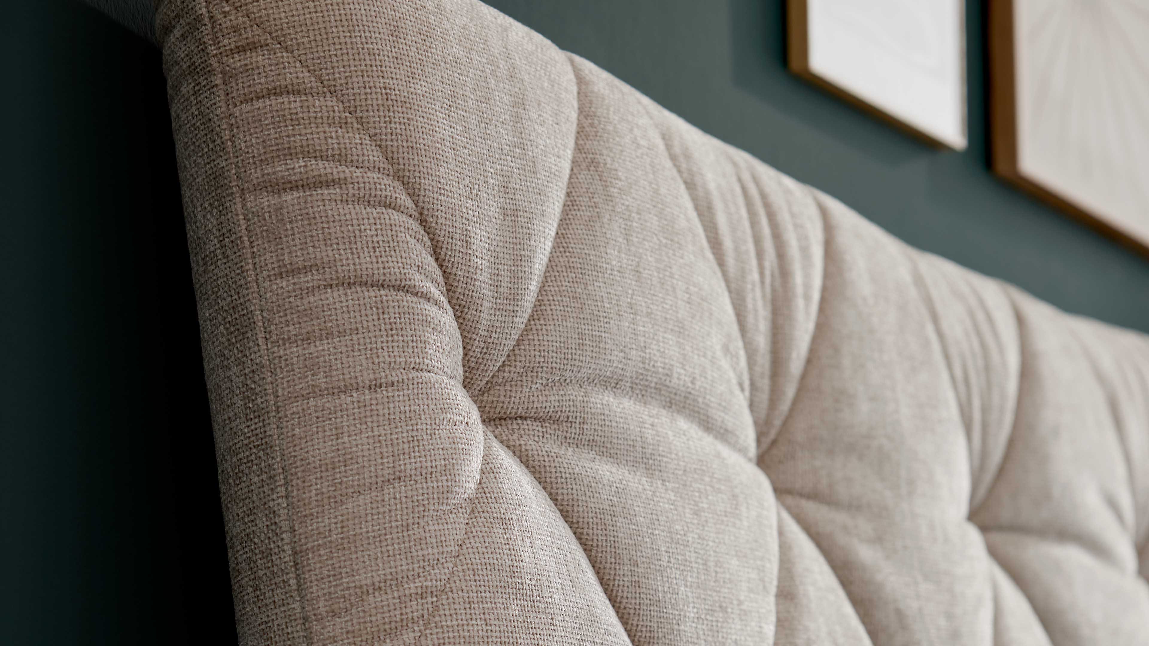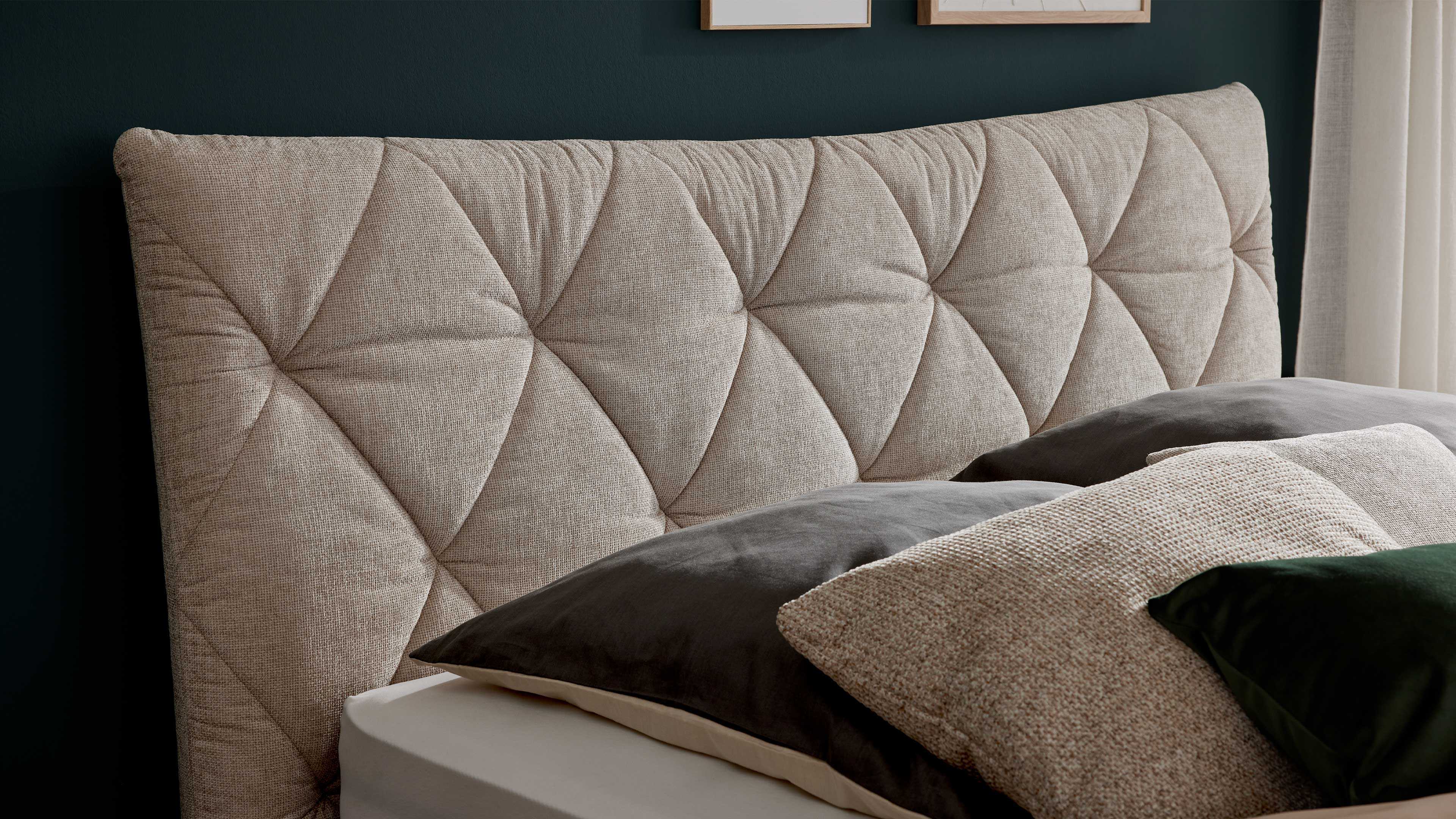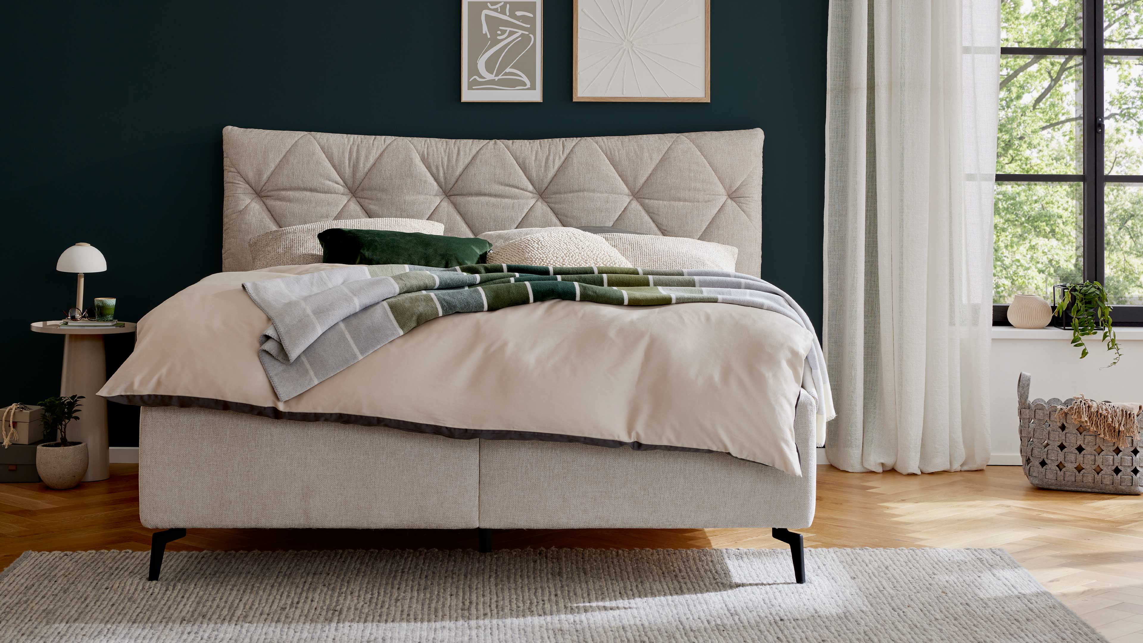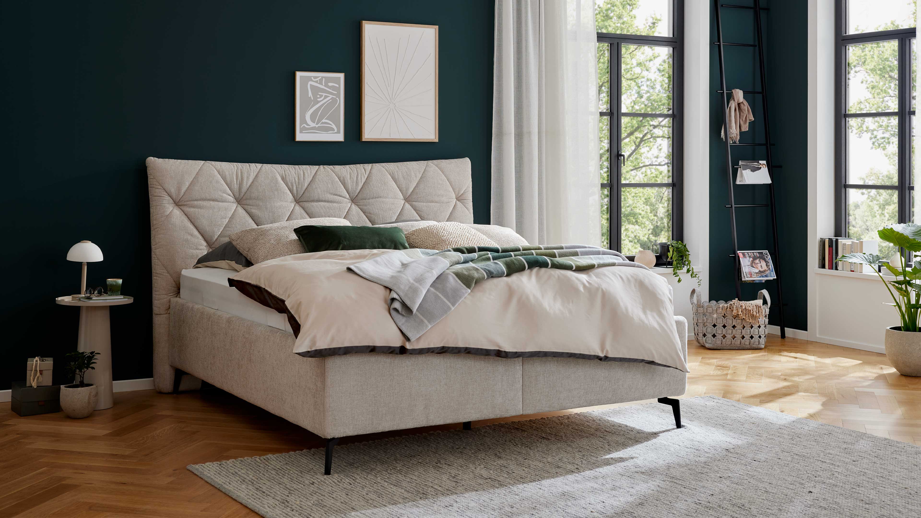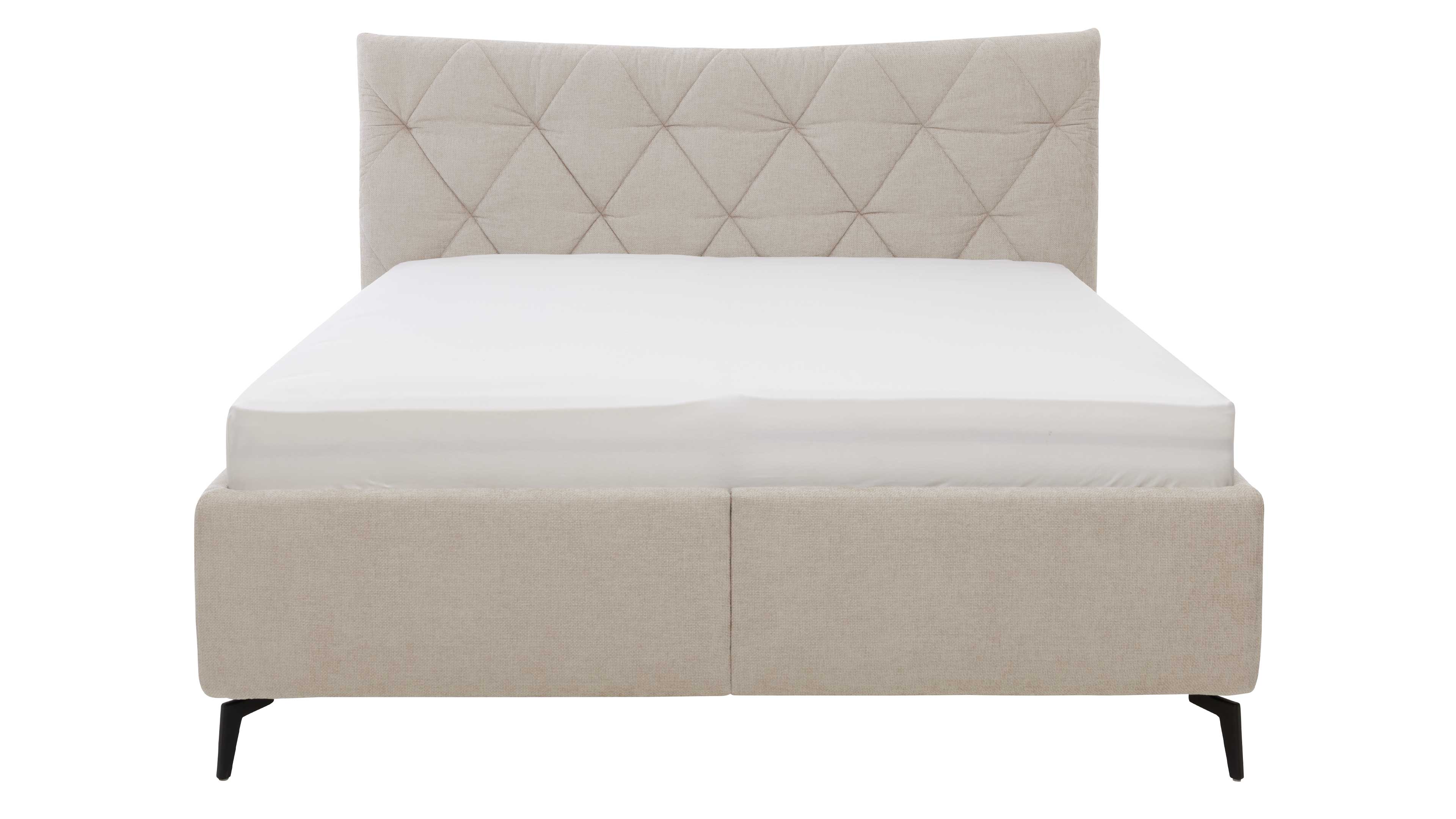 Du suchst ein Polsterbett mit Stauraum, das Komfort und Design stilvoll vereint? Das Polsterbett aus Interliving Bettensystem Serie 1420 begeistert mit einem naturfarbenen Stoffbezug, eleganten mattschwarzen Metallfüßen und einem geschwungenen Polsterkopfteil mit Rautensteppung. Mit ca. 205 x 128 x 223 cm (BxHxL), einer großzügigen Liegefläche von ca. 180 x 200 cm (BxL) und einer komfortablen Liegehöhe von ca. 61 cm bietet dir dieses Doppelbett beste Voraussetzungen für erholsamen Schlaf.