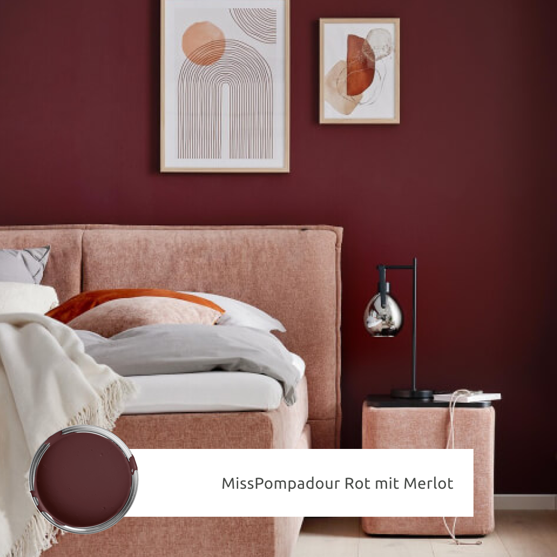 Farben bringen Räume zum Strahlen und verleihen ihnen eine ganz eigene Atmosphäre. Mit Interliving und MissPompadour wird das Gestalten deines Wohnraums zu einem kreativen Erlebnis. Ob sanfte Pastelltöne für eine entspannte Wohlfühlatmosphäre, kräftige Farben für ausdrucksstarke Akzente oder dezente Nuancen für einen eleganten Look – stilvolle Möbel und hochwertige Farben ergänzen sich perfekt und lassen dein Zuhause genau so wirken, wie du es dir wünschst.