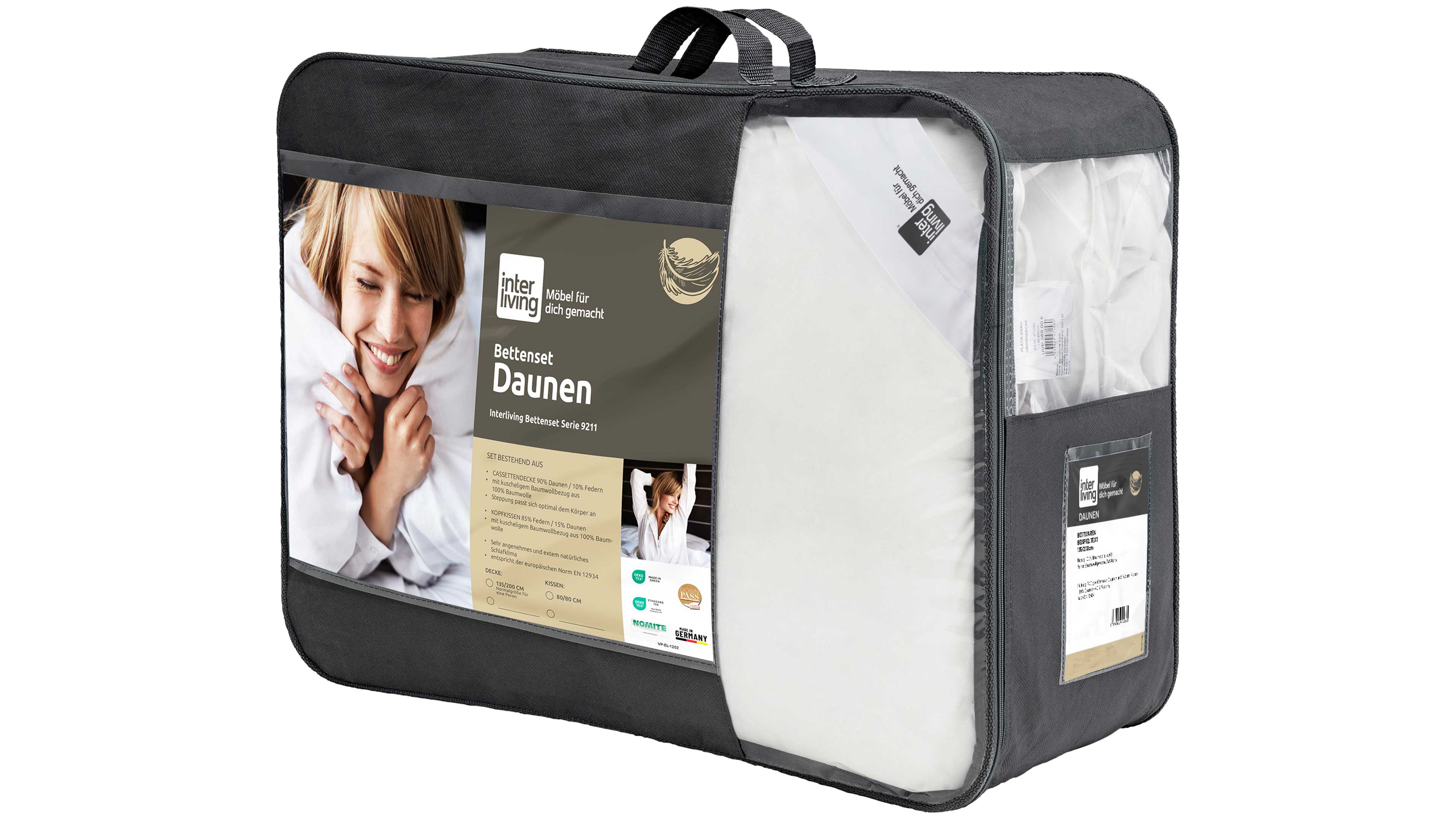 Die Interliving Betten-Set Serie 9211 wird klimaschonend in Deutschland produziert und erfüllt höchste Qualitätsstandards. Das OEKO-TEX® Standard 100 Label garantiert geprüfte Schadstofffreiheit und hervorragende Hautverträglichkeit.