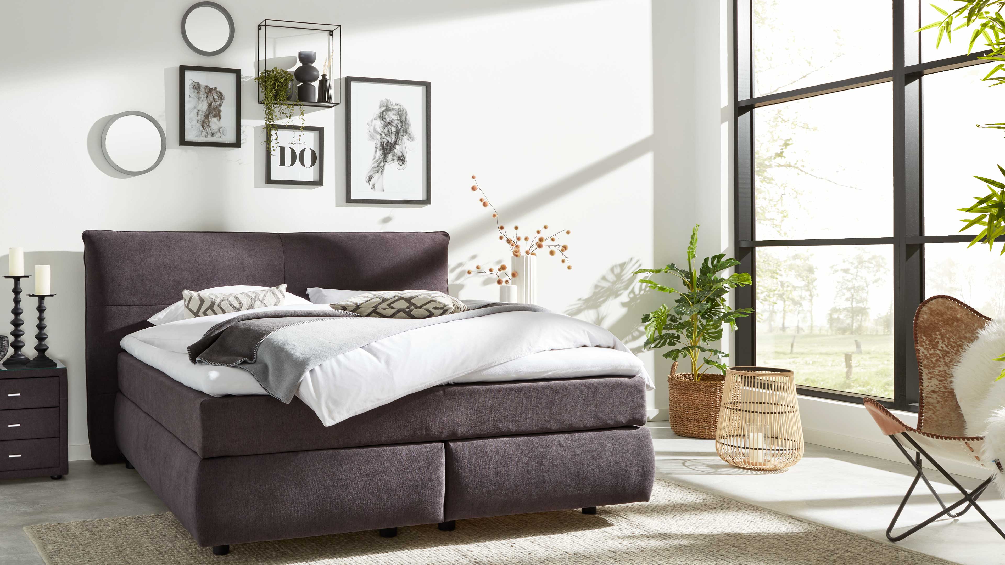 Boxspringbett in Dunkegrau mit sanft gepolstertem Kopfteil