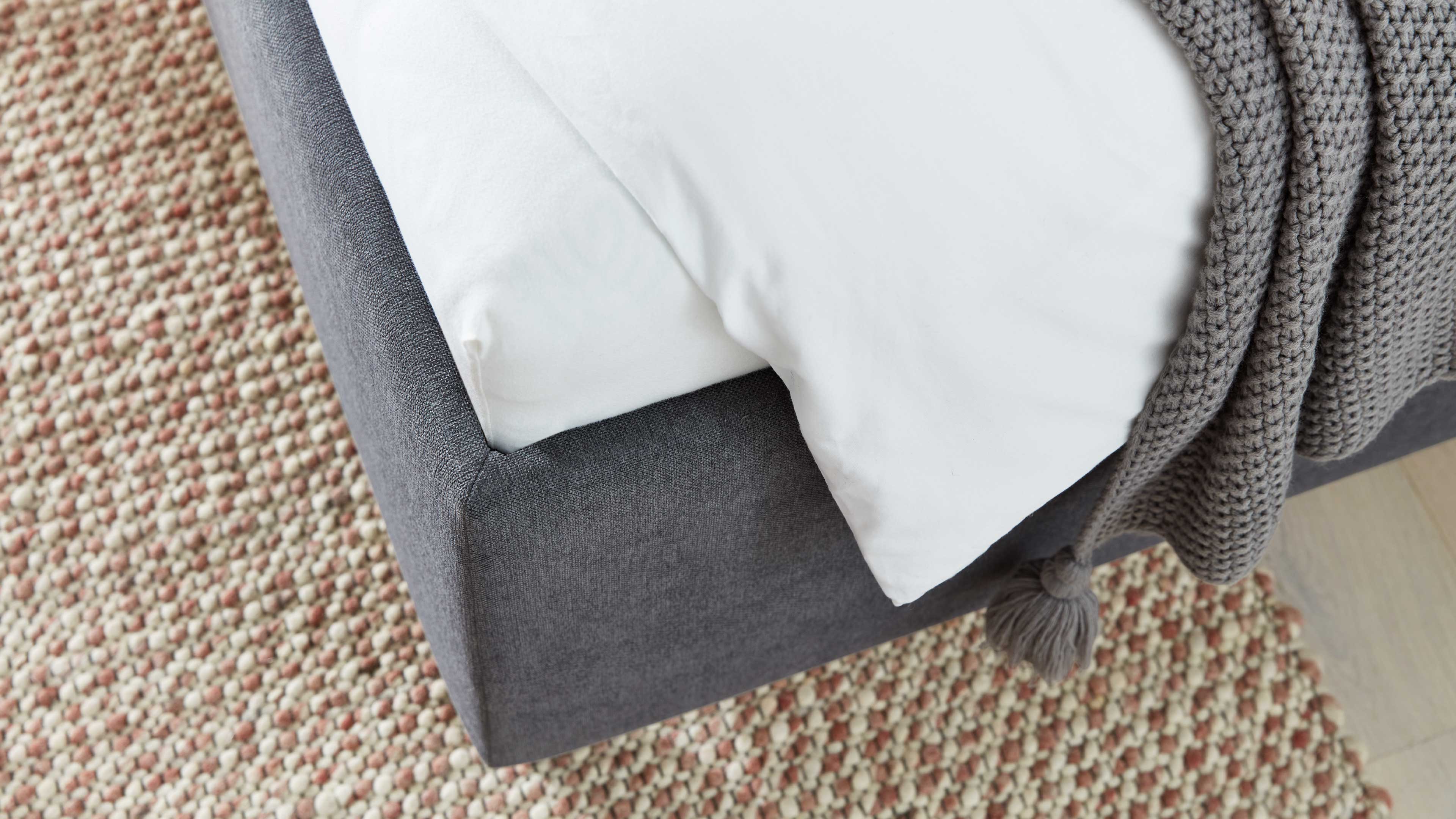 Ein echtes Highlight ist der stoffbezogene Bettkasten mit fester Polsterung und praktischem Stauraum. Hier lassen sich Bettwäsche, Decken oder saisonale Kleidung bequem verstauen – alles ordentlich, griffbereit und dennoch unsichtbar verstaut. Die Unterfederung erfolgt über zwei seitlich zu öffnende Lattenrahmen mit jeweils 28 Federholzleisten in Kautschukkappen. Die stabilen Rahmen sind bis 110 kg belastbar und bieten langlebige Unterstützung sowie ergonomischen Schlafkomfort.