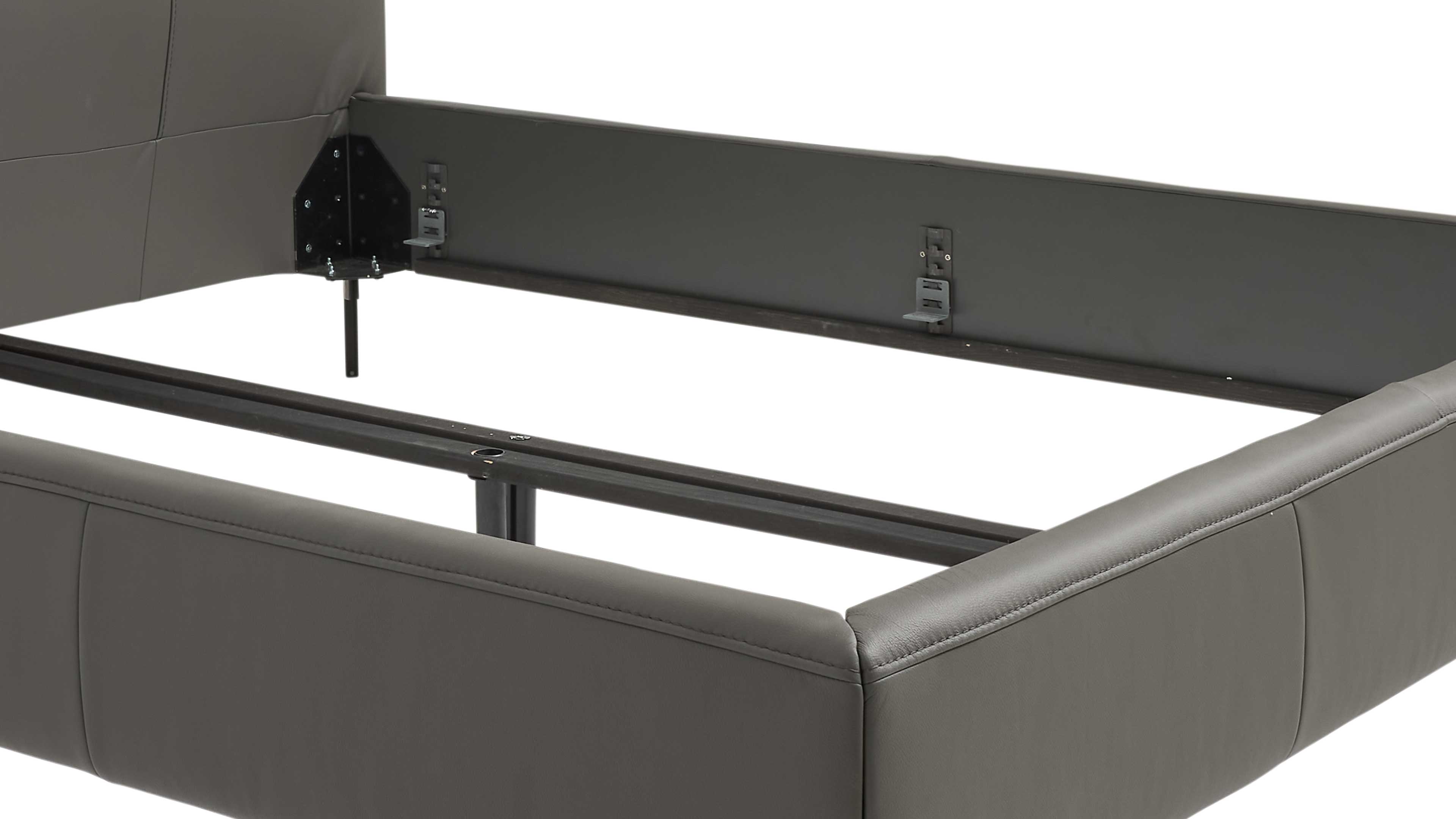 Das Polsterbettgestell aus der Interliving Bettensystem Serie 1416 vereint modernes Design, hochwertige Materialien und durchdachte Funktionalität – perfekt für alle, die im Schlafzimmer Wert auf Komfort und Stil legen. Der grau pigmentierte Lederbezug verleiht dem Bett eine edle, warme Ausstrahlung, während die schwarzen Metallfüße einen modernen Kontrast setzen.