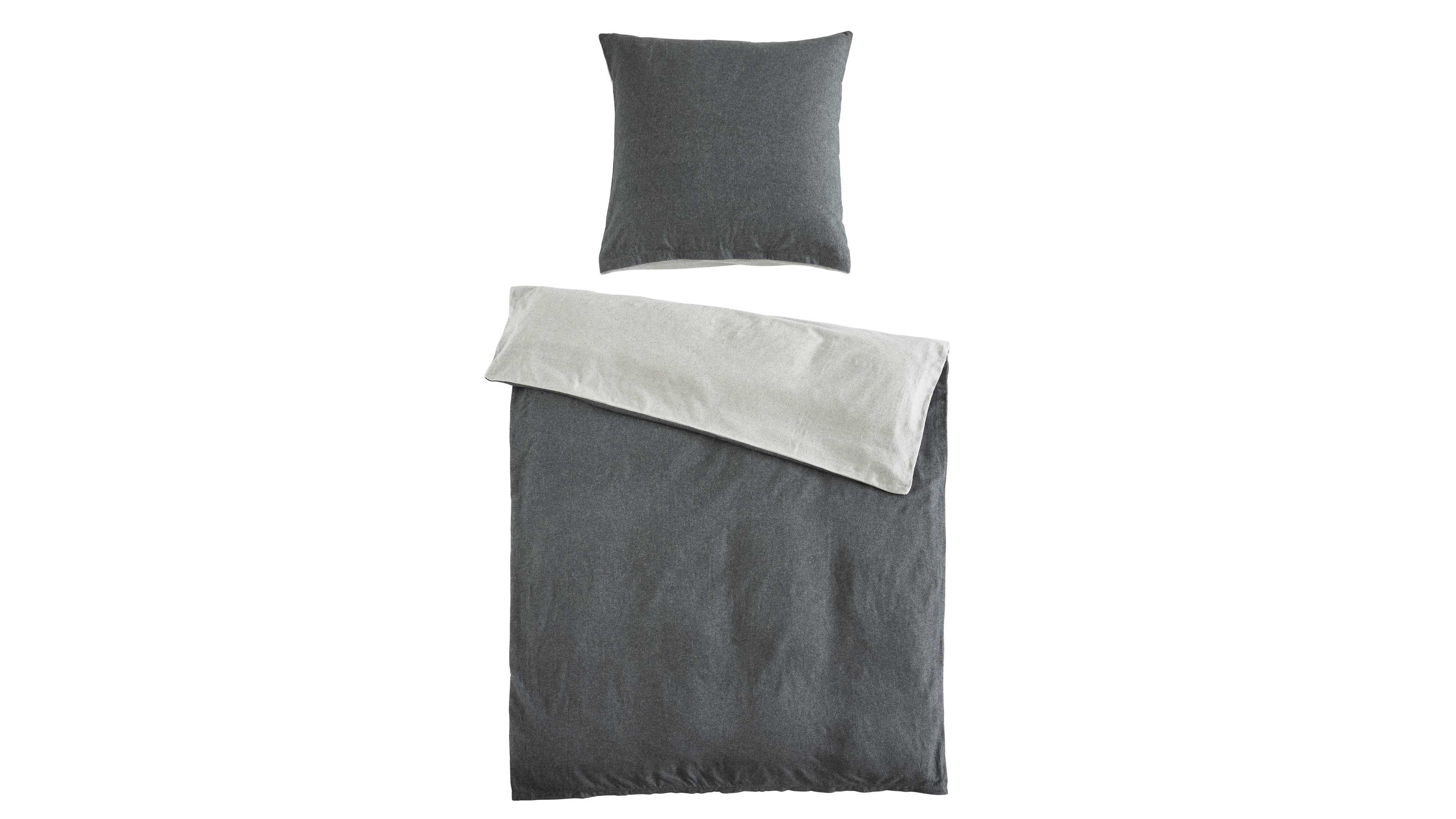 Kuschelige Wende-Biber-Bettwäsche in Hellgrau/Dunkelgrau