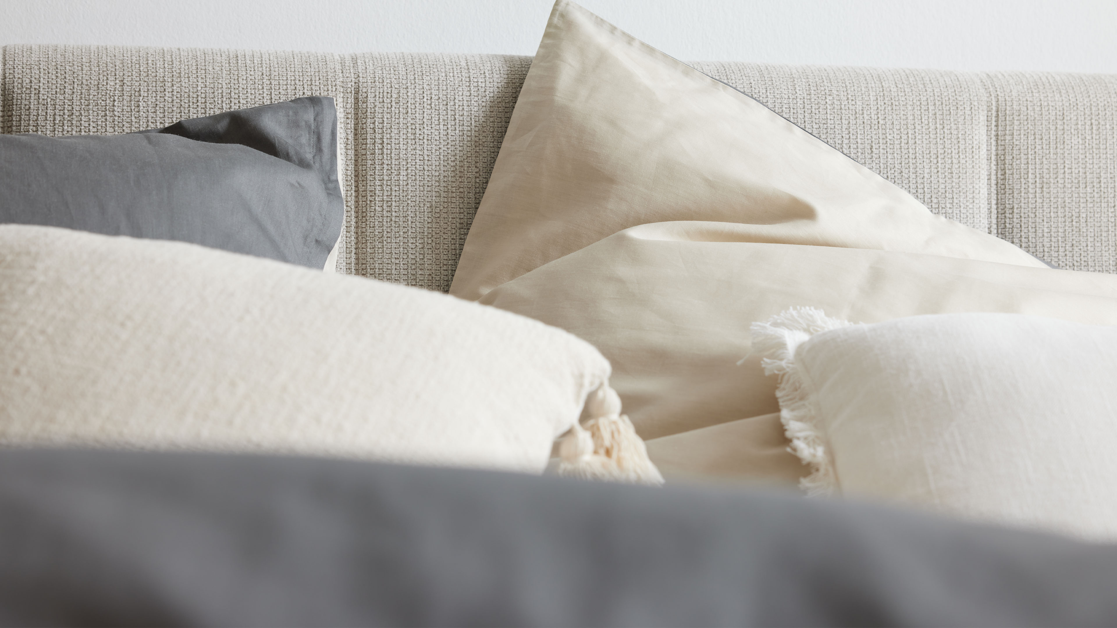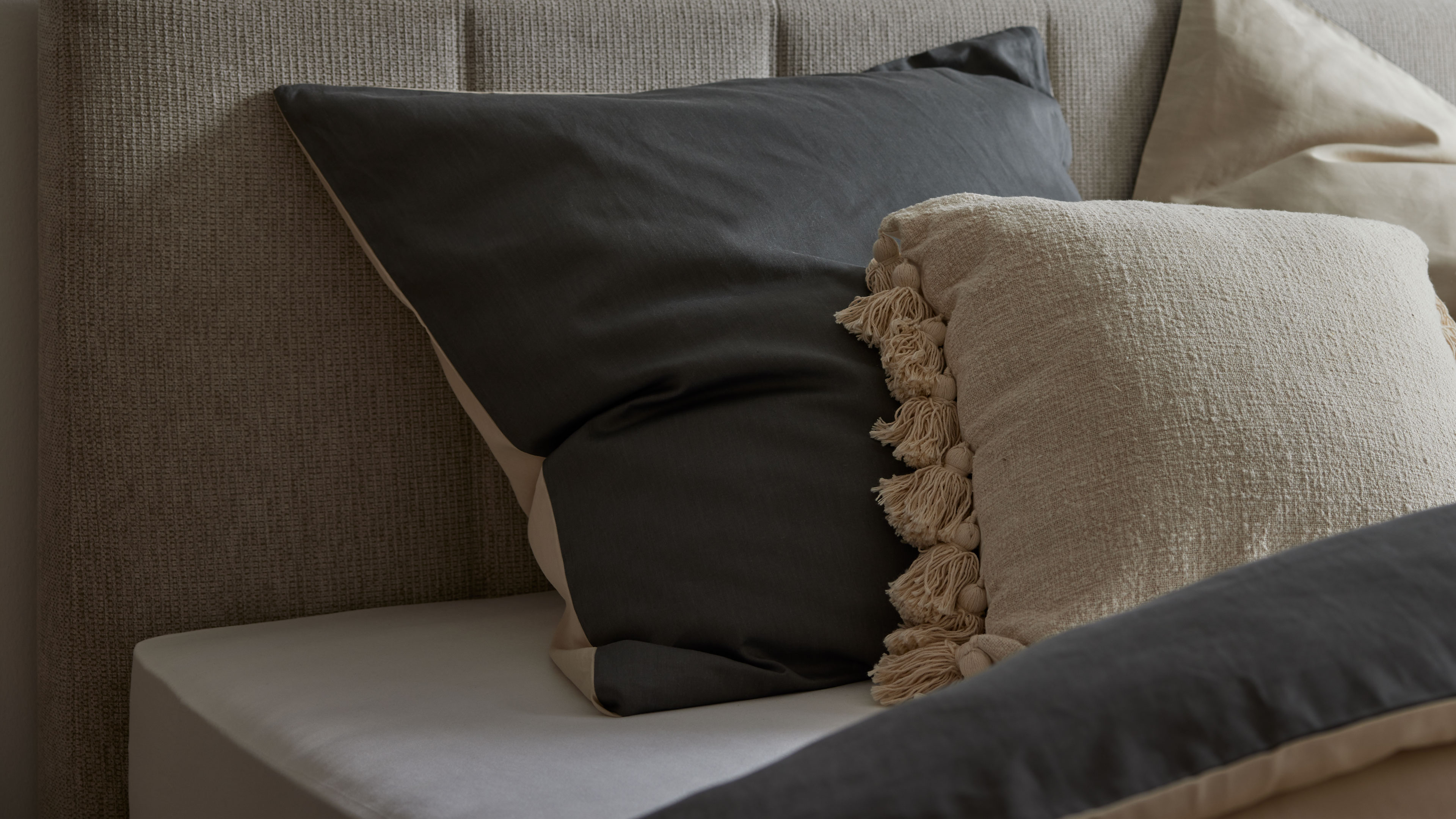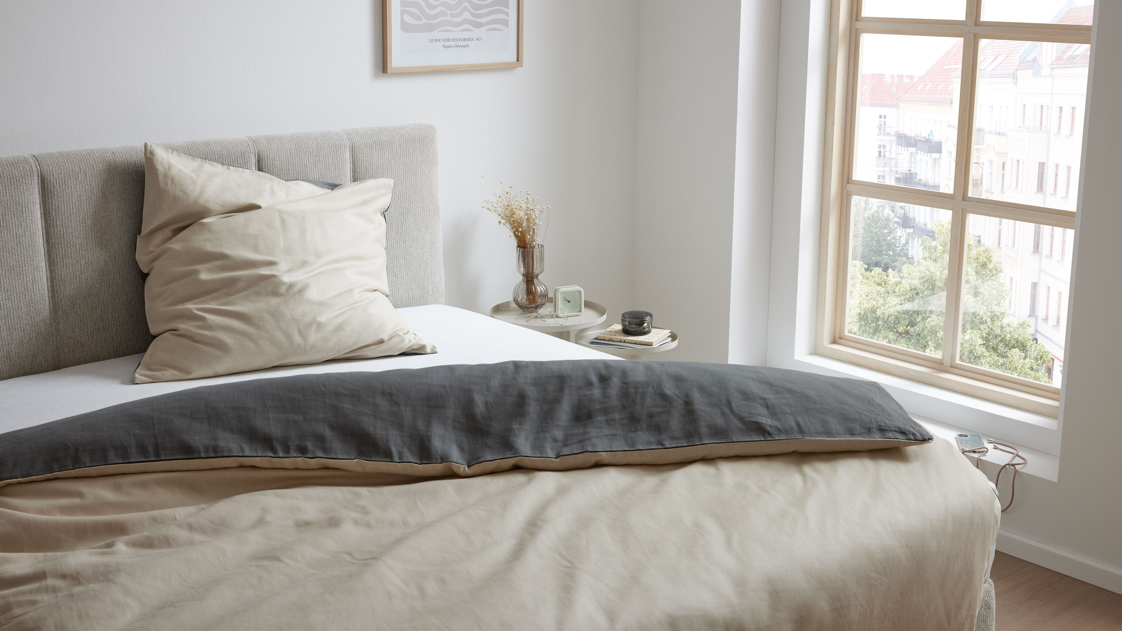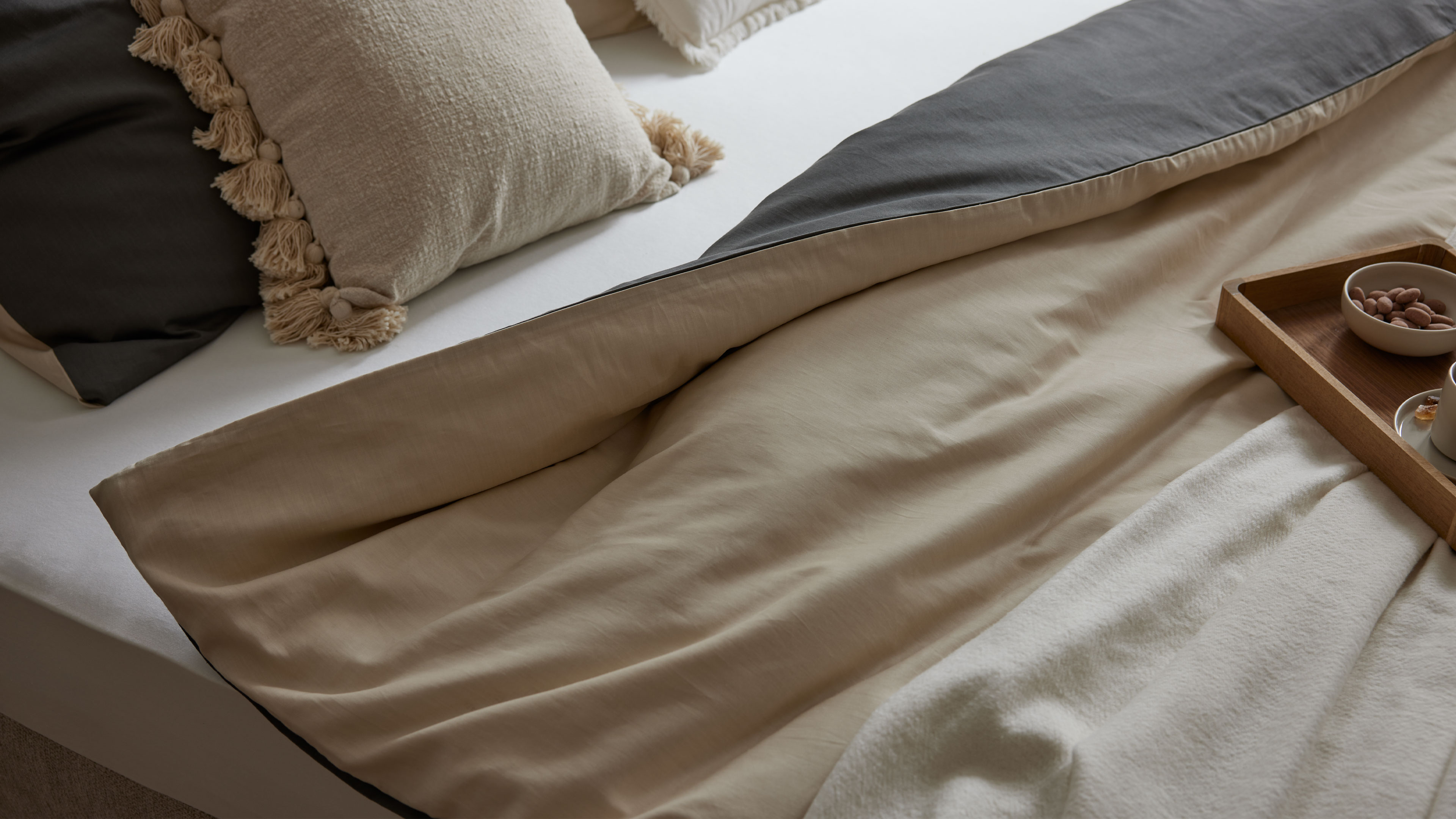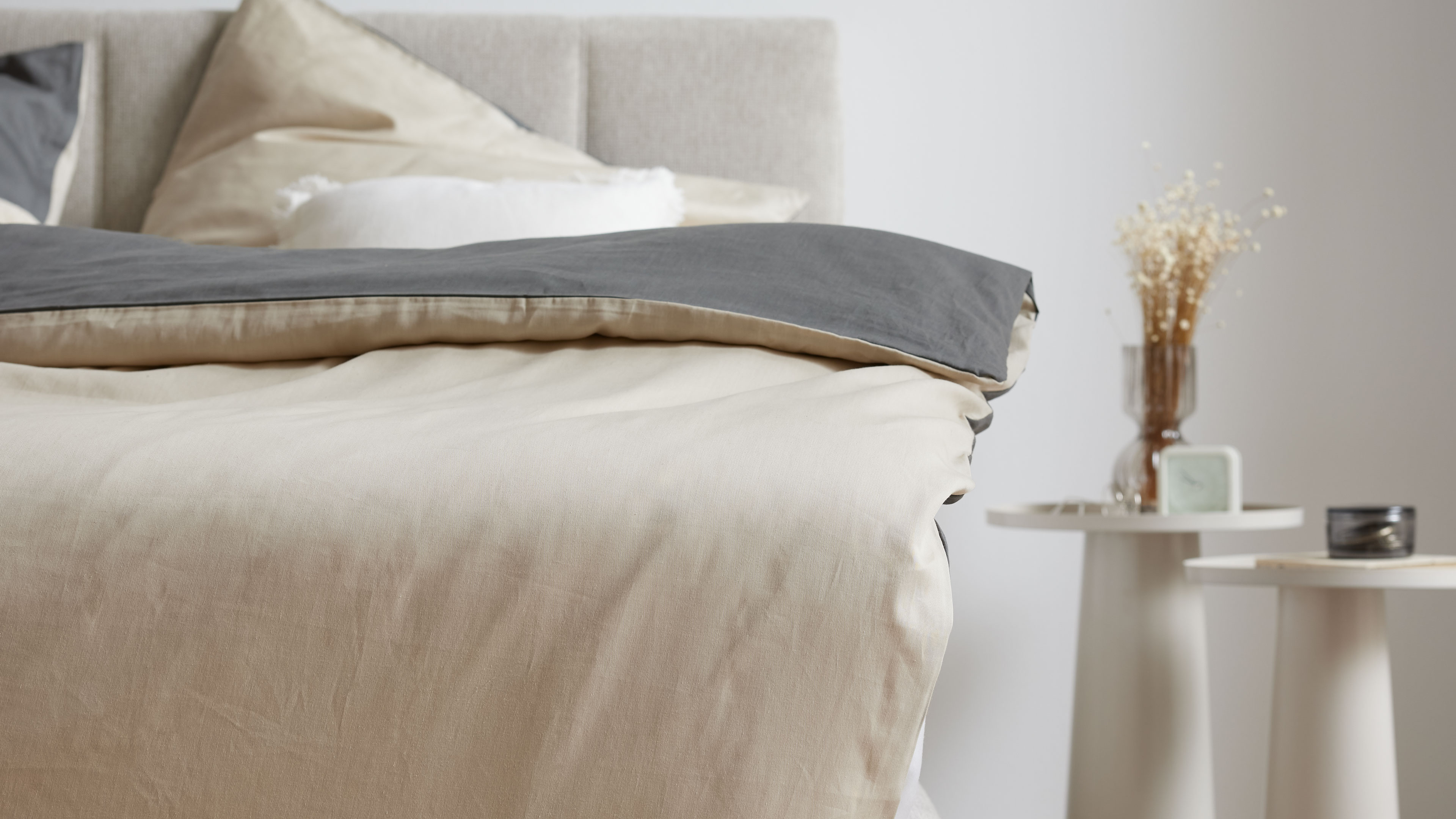 Bettwäsche-Set in warmem Beige und Dunkelgrau aus hochwertiger Baumwolle