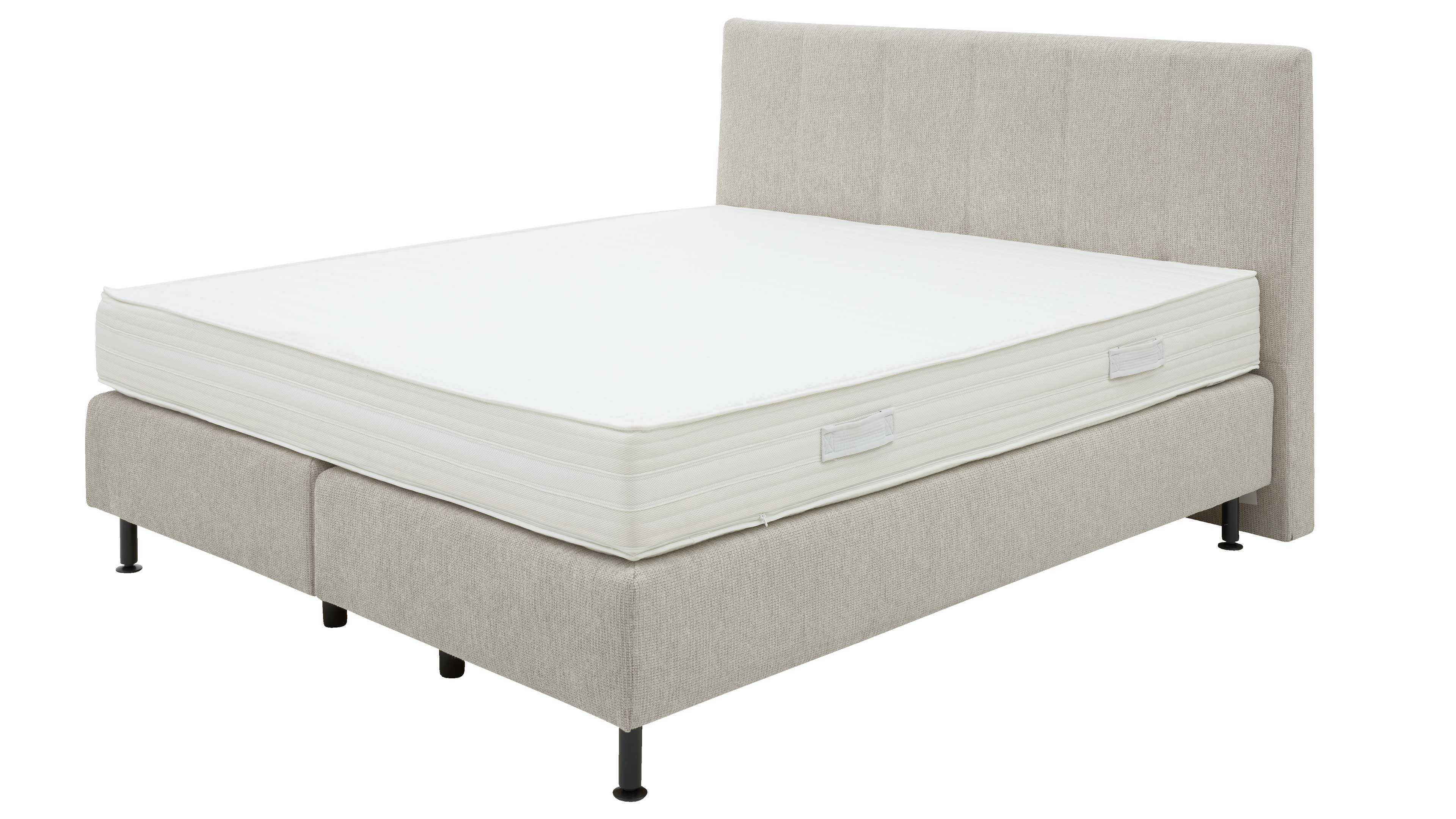 Das Bett ist mit zwei 5-Zonen-Taschenfederkernmatratzen ausgestattet, die durch einen durchgehenden Drellbezug verbunden sind. Jede Matratze misst ca. 90 x 200 cm (BxL), woraus sich eine Liegefläche von ca. 180 x 200 cm (BxL) ergibt. Die Matratzen sind ca. 21 cm hoch, die Liegehöhe inklusive Fuß beträgt ca. 41 cm. Dank der cleveren Konstruktion mit zwei Härtegraden (H2 und H3) kannst du die Matratzen ganz nach deinen persönlichen Vorlieben wenden und deine Schlafhärte individuell anpassen. Der hochwertige 5-Zonen-Taschenfederkern sorgt für punktelastische Unterstützung, während der eingesteppte Adaptionsschaum eine spürbare Druckentlastung gewährleistet. Der abnehmbare und laut Etikett waschbare Bezug sorgt für hohe Hygienestandards – unterstützt durch vier praktische Wendegriffe für einfaches Handling.