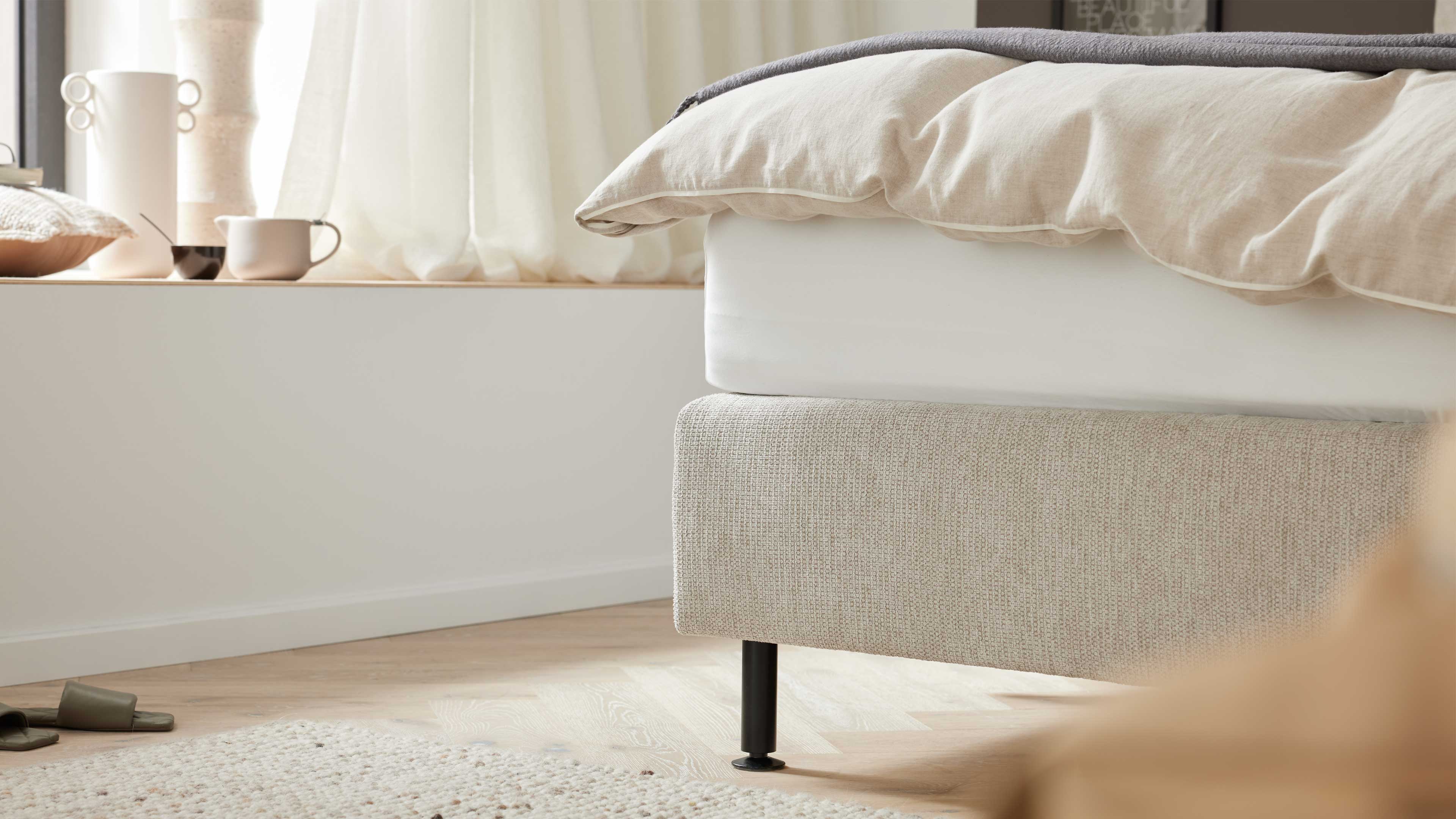 Der Taschenfederkern-Unterbau besteht aus zwei rundum stoffbezogenen Boxen mit einem rutschhemmenden Einsatz – für stabile Matratzenlage und optimale Anpassung. Die flexiblen Taschenfederkerne fördern ein ergonomisches Einsinken und sorgen zugleich für eine ideale Stützkraft. Die integrierte CLIMABOX-Technologie trägt zur Feuchtigkeitsregulierung bei und schafft ein angenehmes Schlafklima. Abgerundet wird die hochwertige Verarbeitung durch einen soliden Massivholzrahmen, der für Langlebigkeit und Stabilität sorgt.
