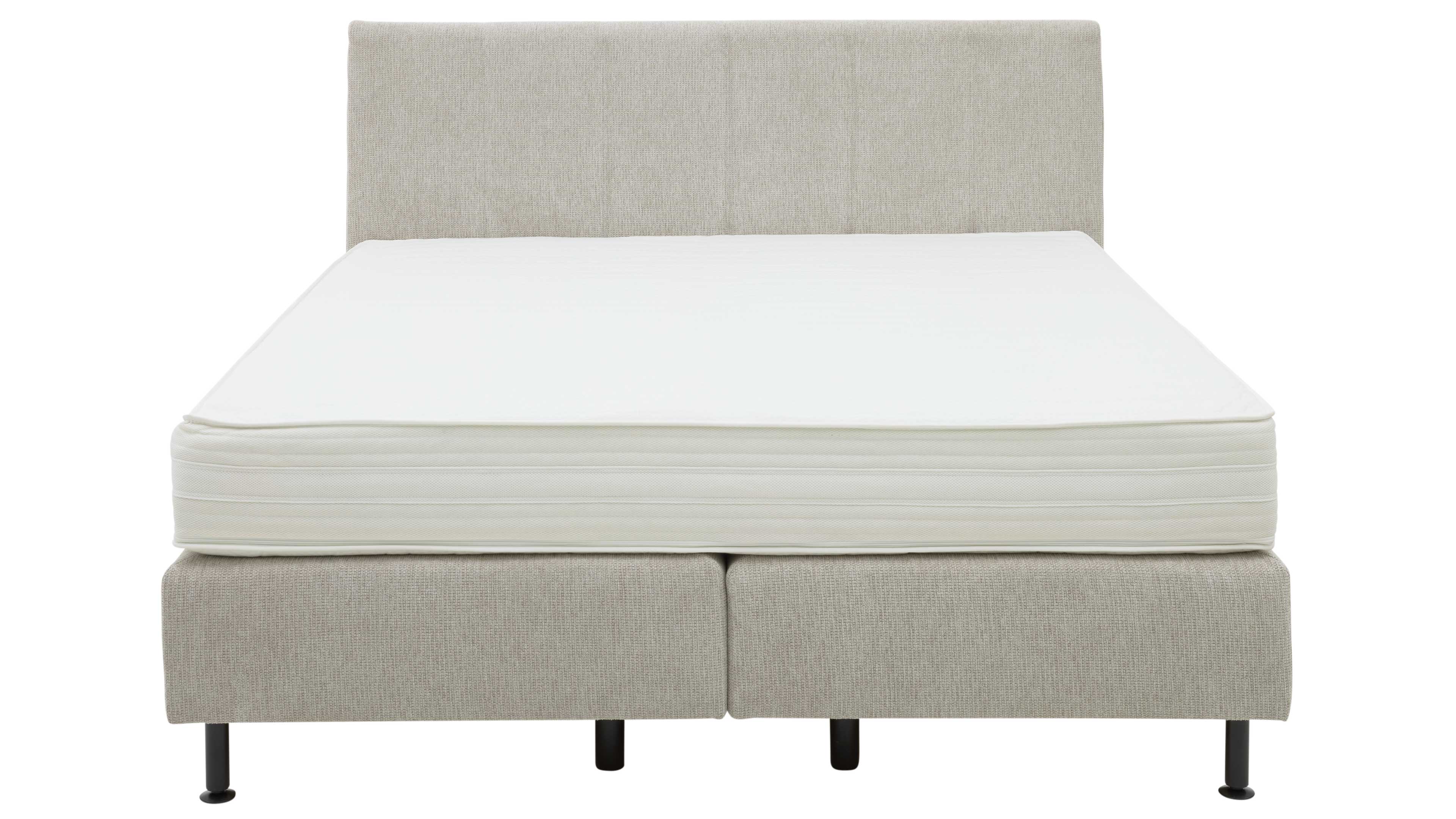 Boxspringbett in hellem Beige mit breiter Rechtecksteppung im Kopfteil