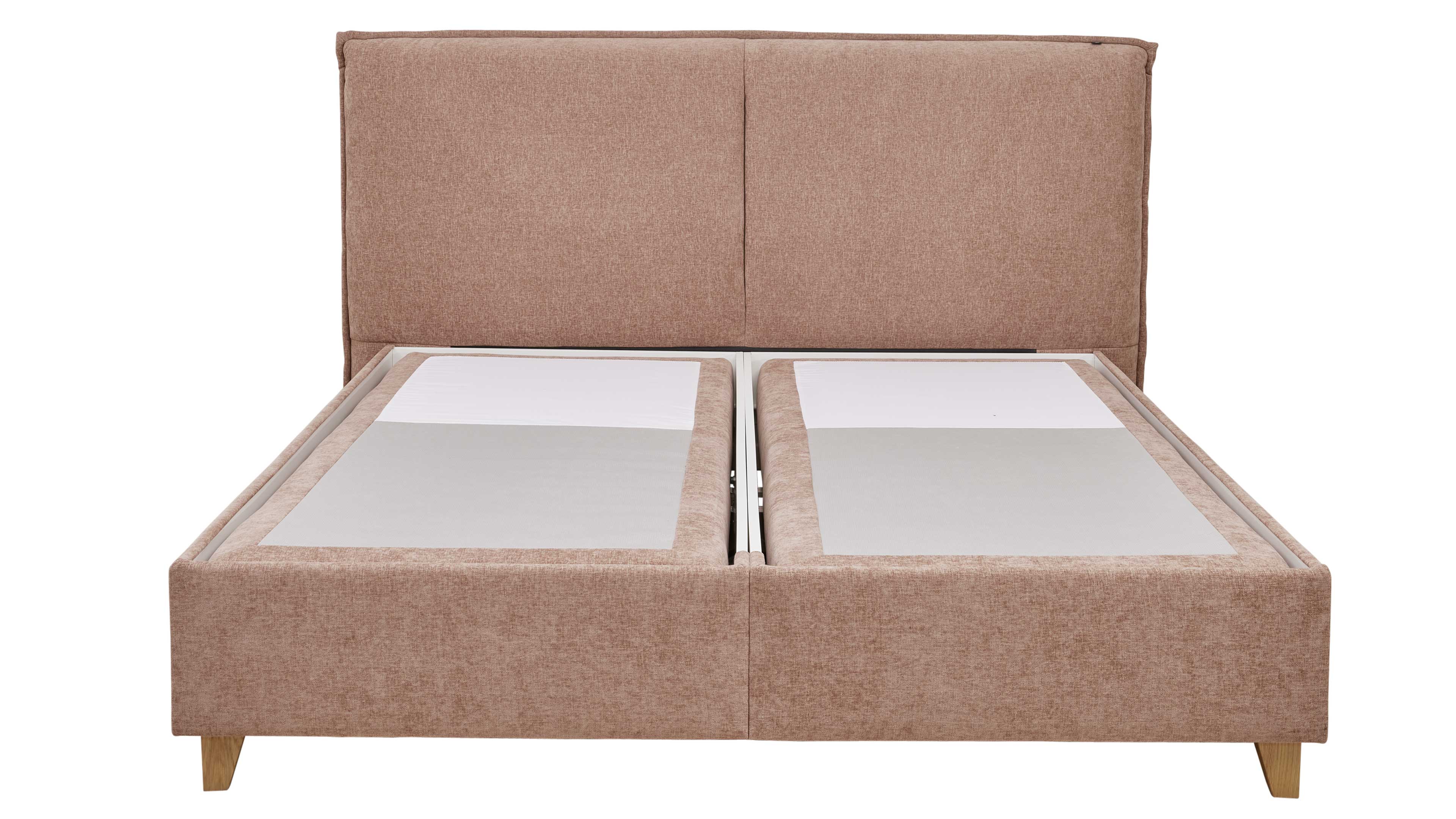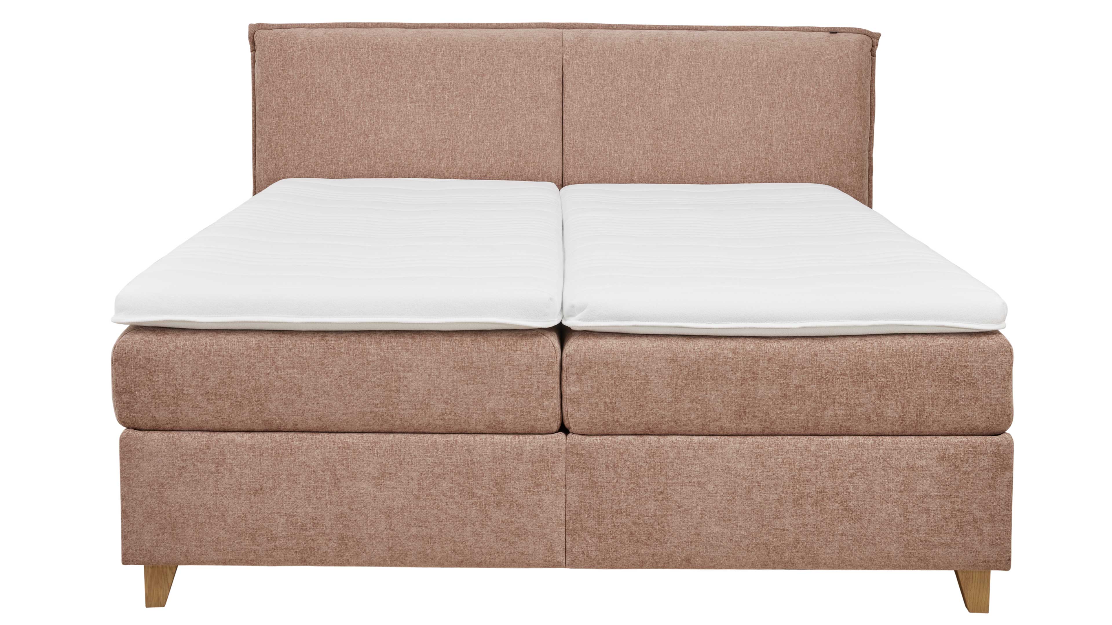 Boxspringbett in Rose mit geradlinigem Kopfteil und Holzfüßen