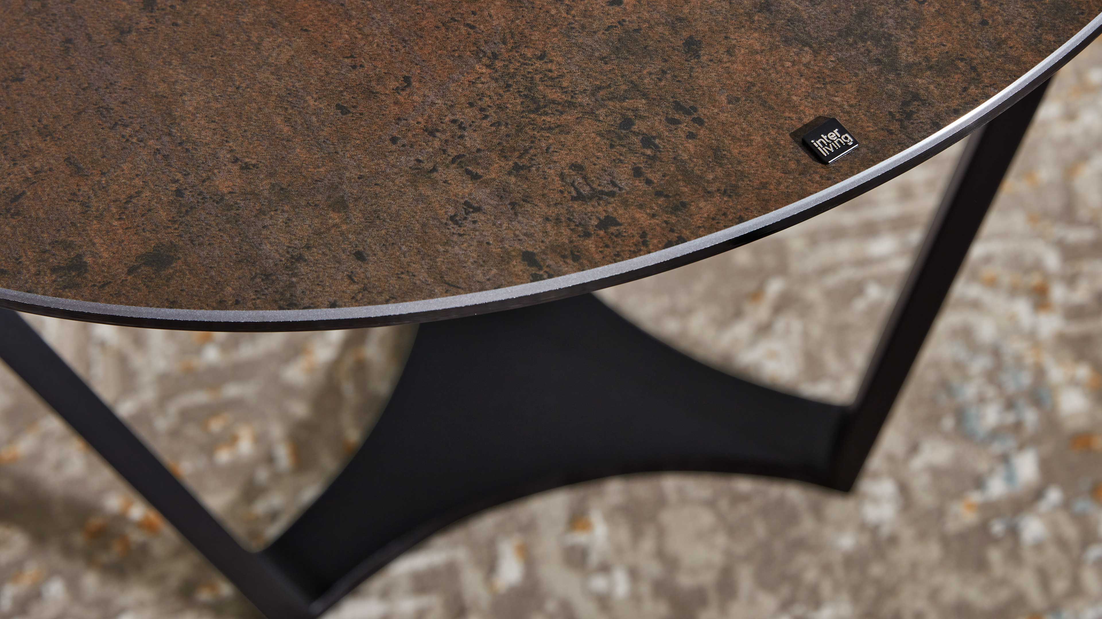 Interliving Couchtisch Serie 6208 – runder Couchtisch mit rostbrauner Keramikplatte