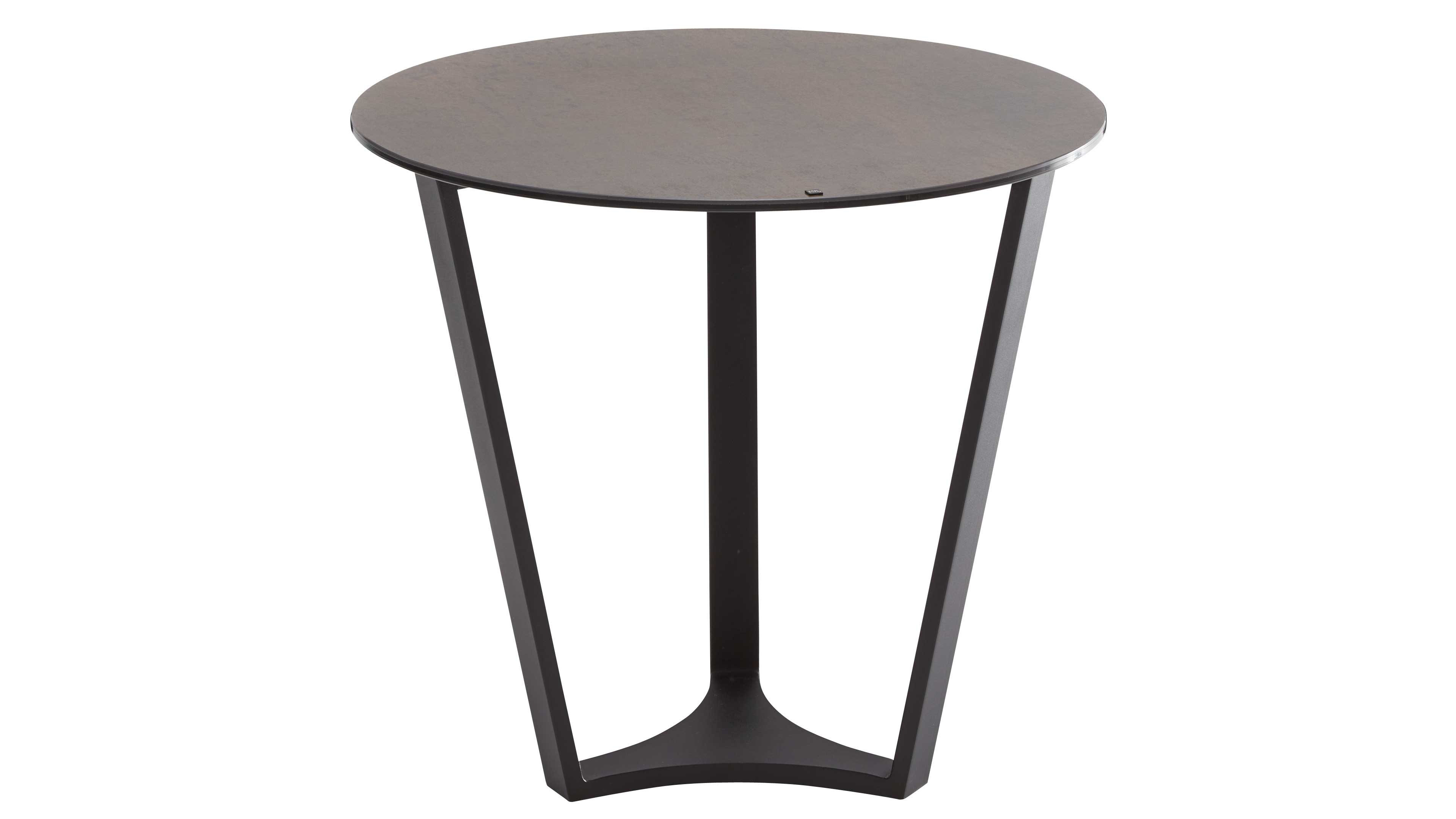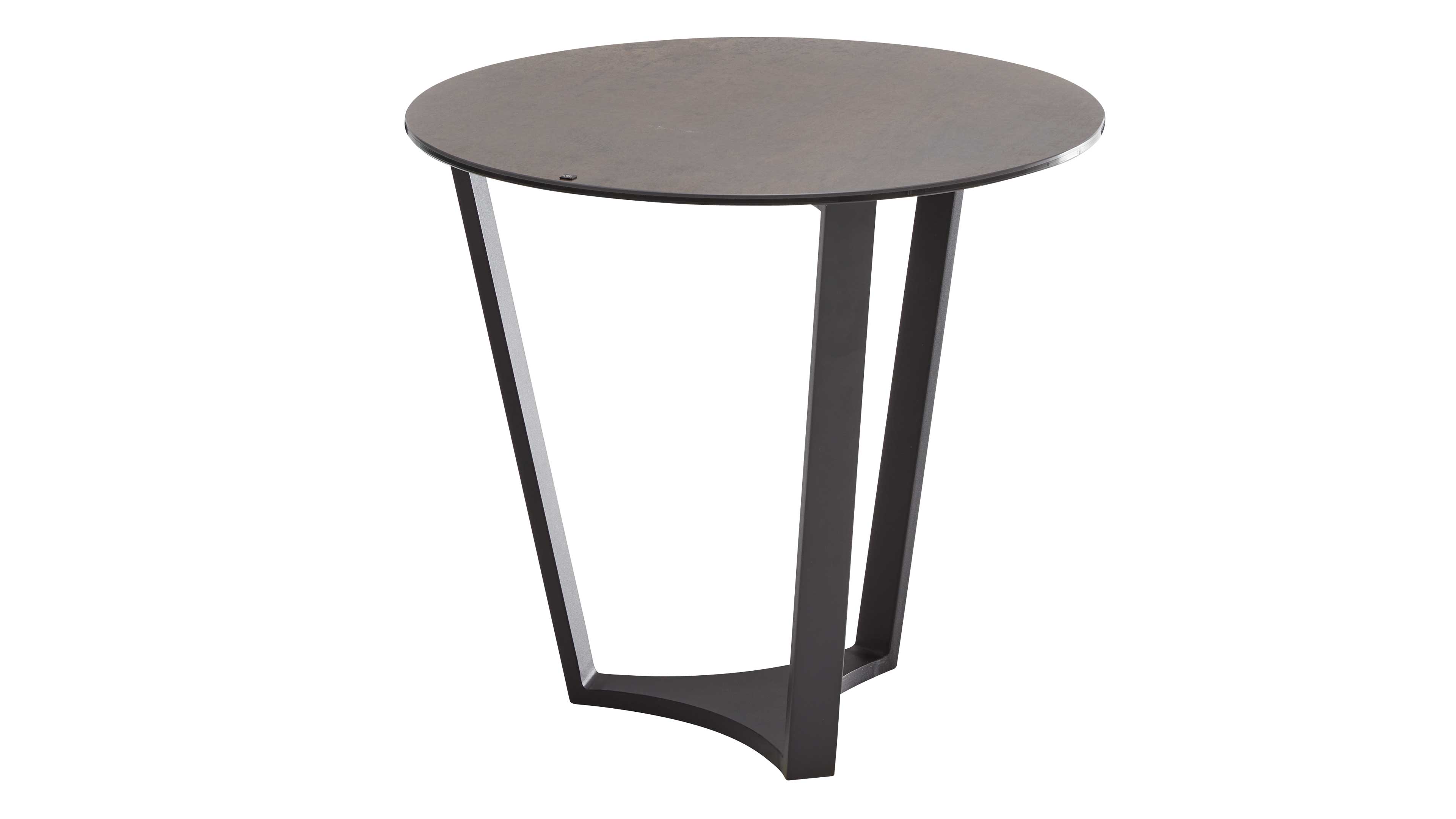 Runder Beistelltisch mit dunkler Keramikplatte und schwarzem Metallgestell