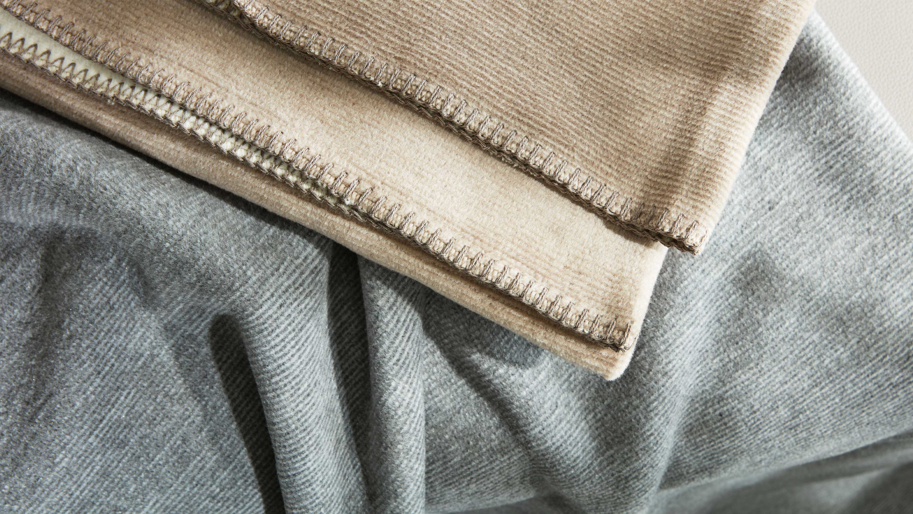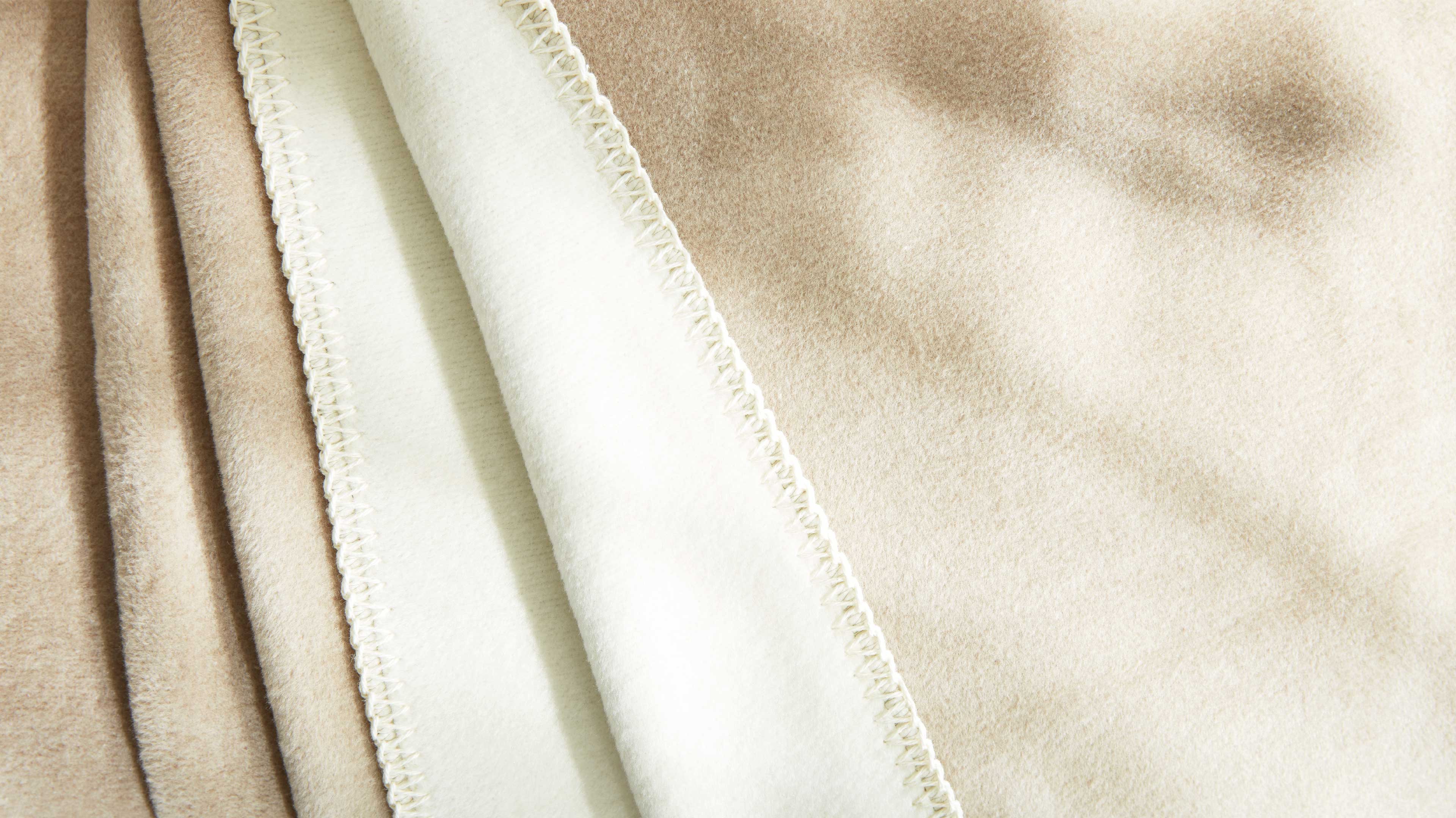 Weiche Wohndecke zum Wenden in Beige meliert mit heller Rückseite