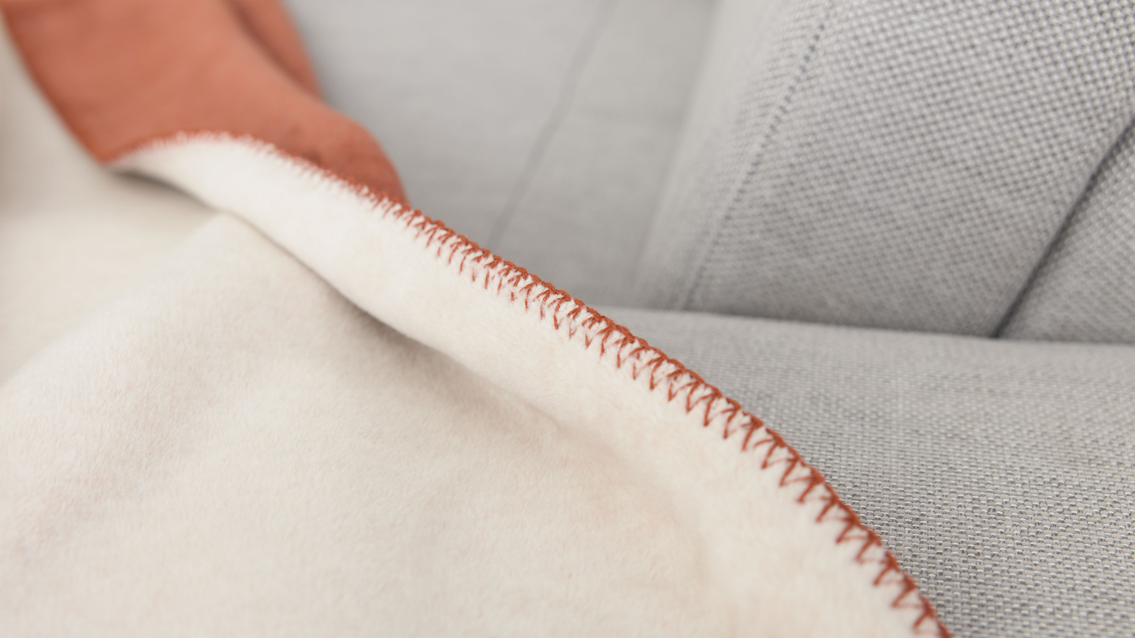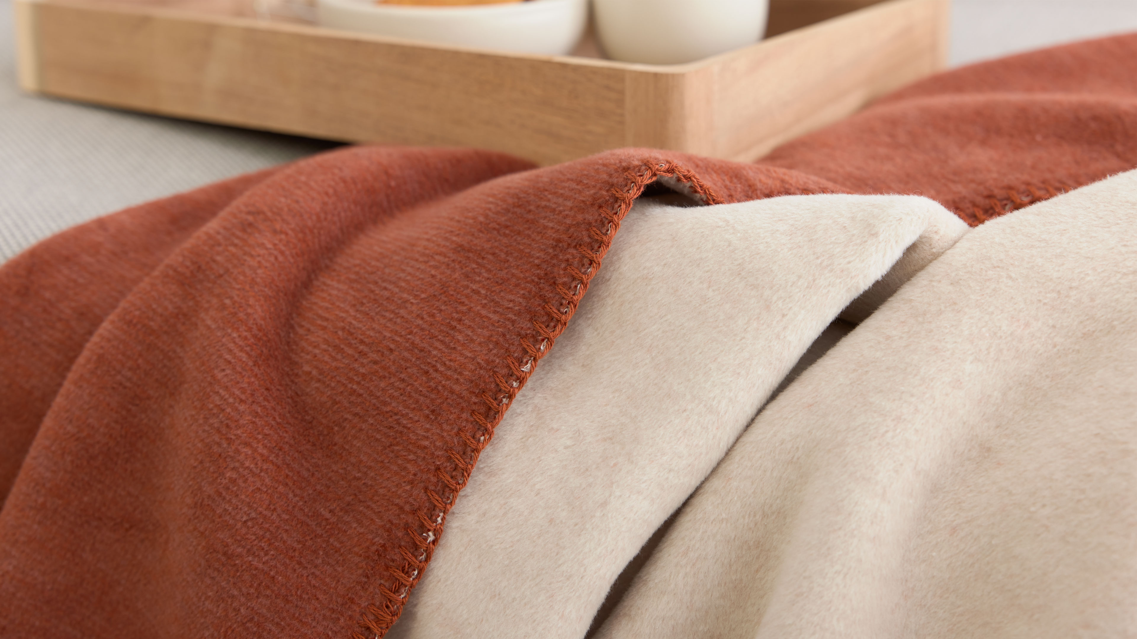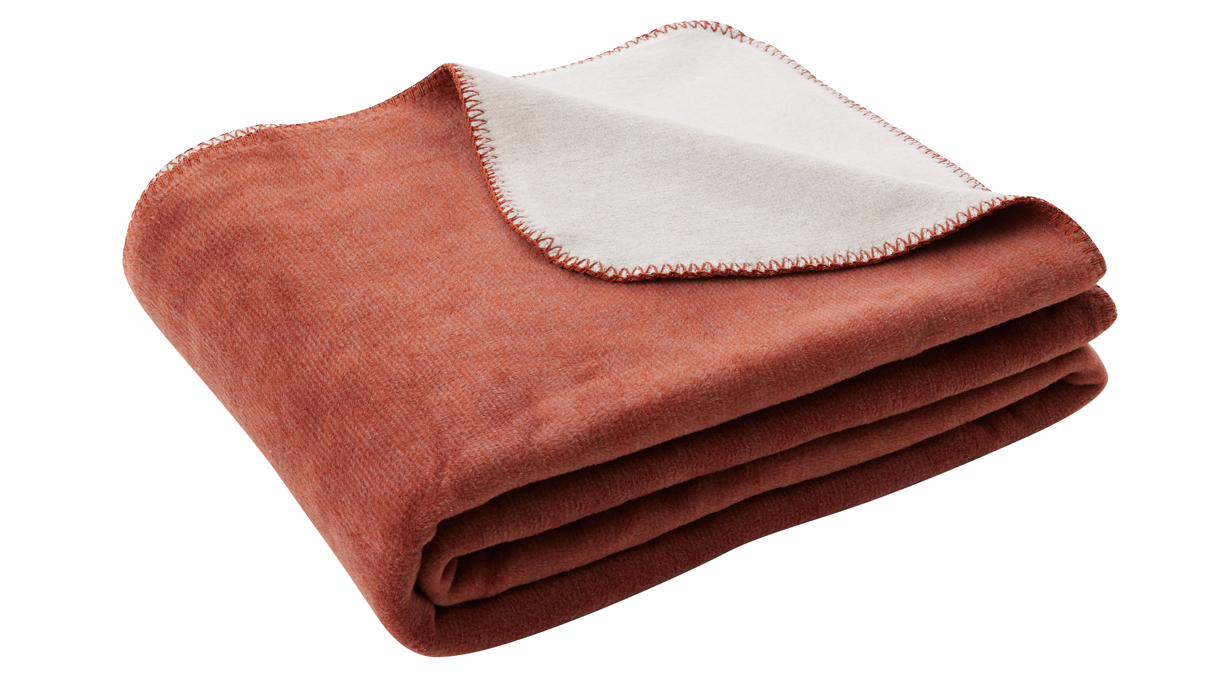 Weiche Wohndecke zum Wenden in Rostorange meliert mit heller Rückseite