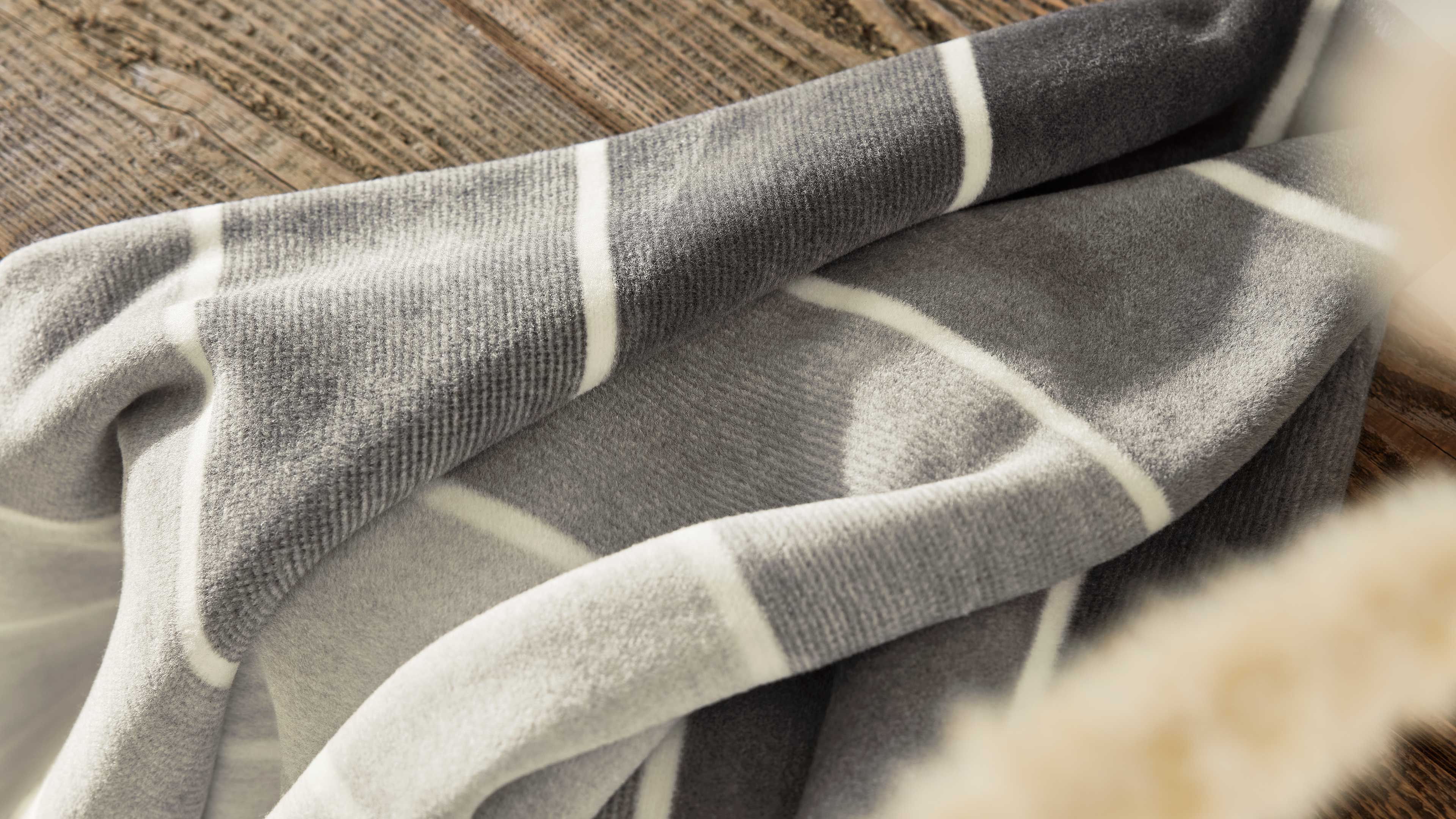 Gestreifte Wohndecke in Grautönen