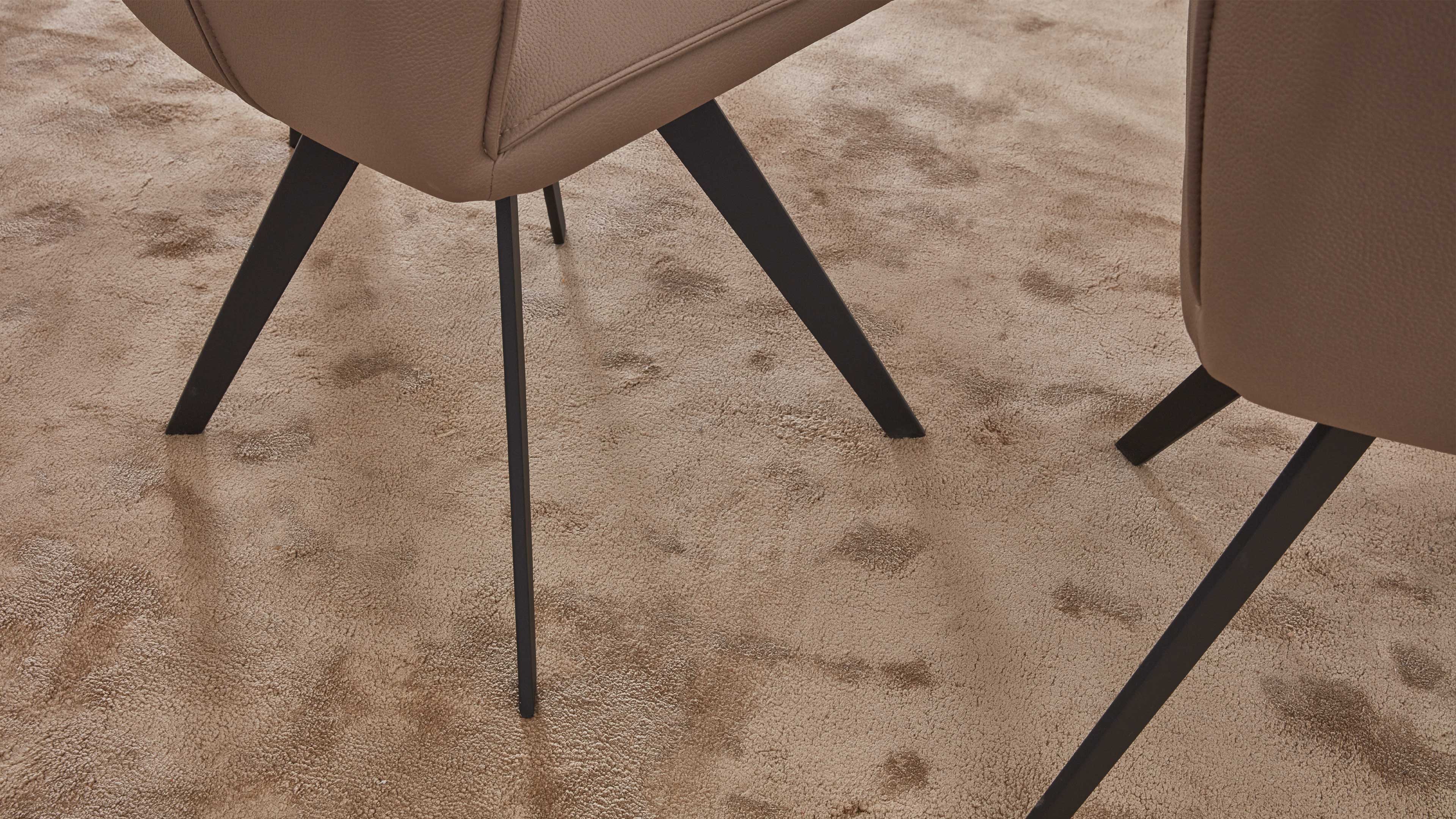 Der Vierfußstuhl mit Drehfunktion aus der Interliving Esszimmer Serie 5102 bringt modernen Komfort und klares Design in deinen Essbereich. Der sandfarbene Mikrofaserbezug in geprägter Lederoptik sorgt für eine ruhige, wohnliche Optik, während das mattschwarze Eisen-Stativgestell dem Stuhl einen modernen, leicht industriellen Charakter verleiht. Die Rückenlehne mit dekorativer Quernaht setzt einen dezenten, stilvollen Akzent.