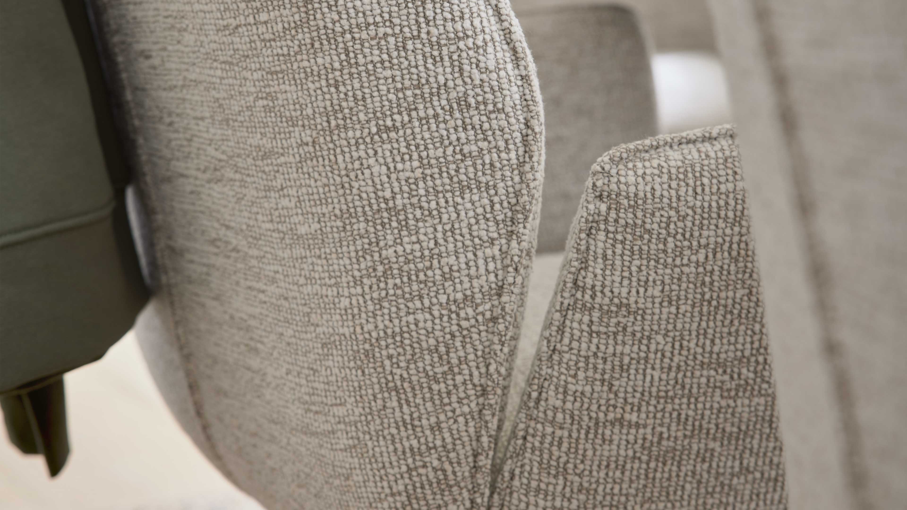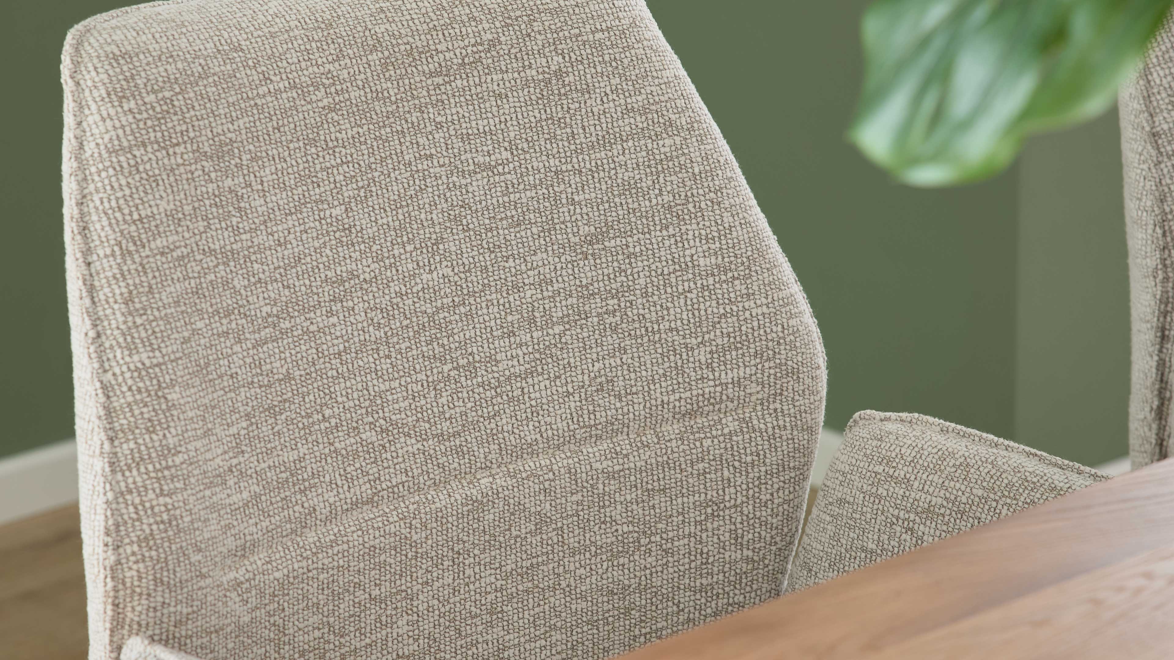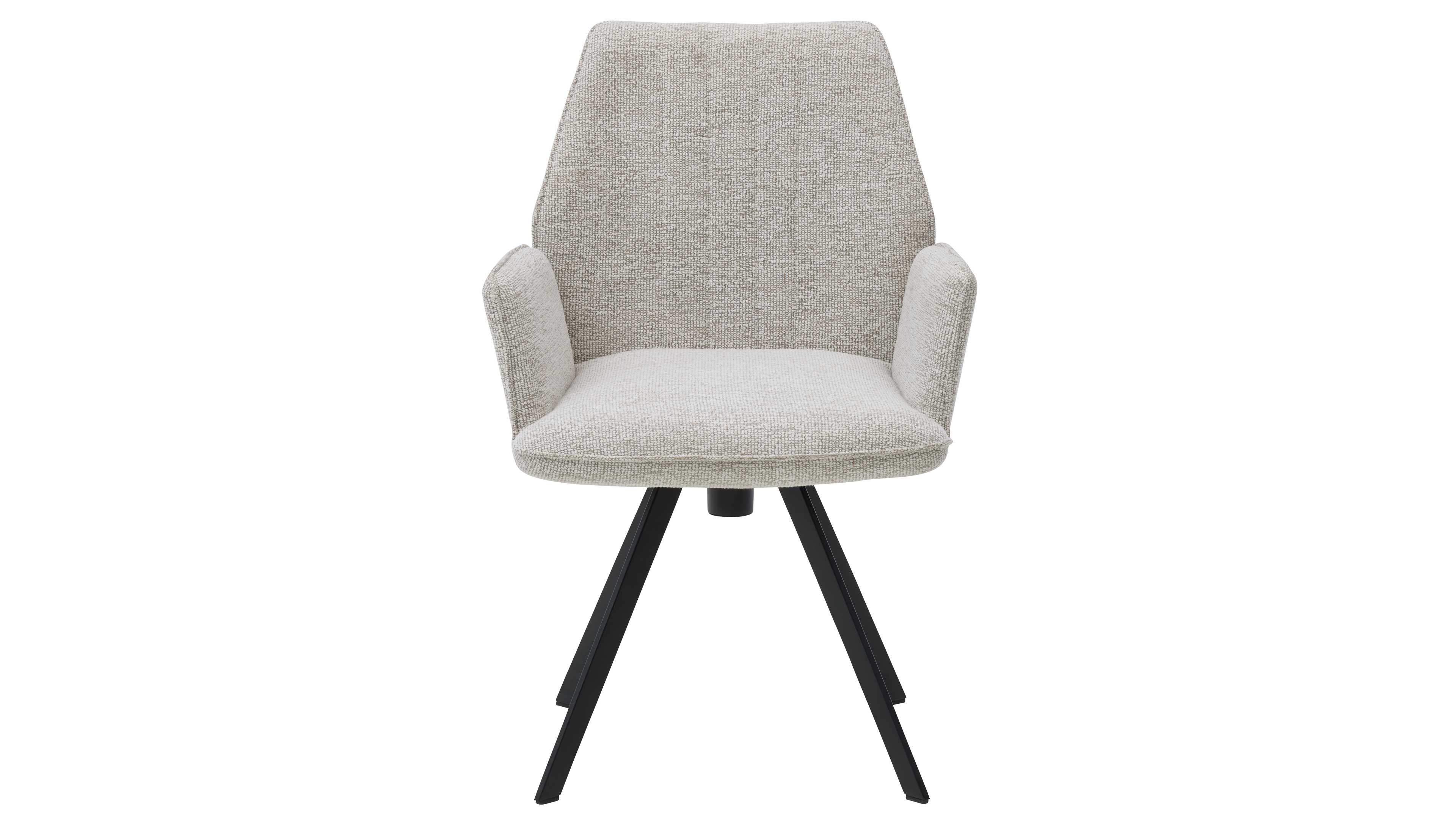 Der Vierfuß-Armlehnstuhl mit Drehfunktion aus der Interliving Esszimmer Serie 5102 bringt modernen Komfort und klares Design in deinen Essbereich. Der leinenfarbene Jacquardbezug sorgt für eine ruhige, wohnliche Optik, während das mattschwarze Eisen-Stativgestell dem Stuhl einen modernen, leicht industriellen Charakter verleiht. Die Rückenlehne mit dekorativer Quernaht setzt einen dezenten, stilvollen Akzent.
