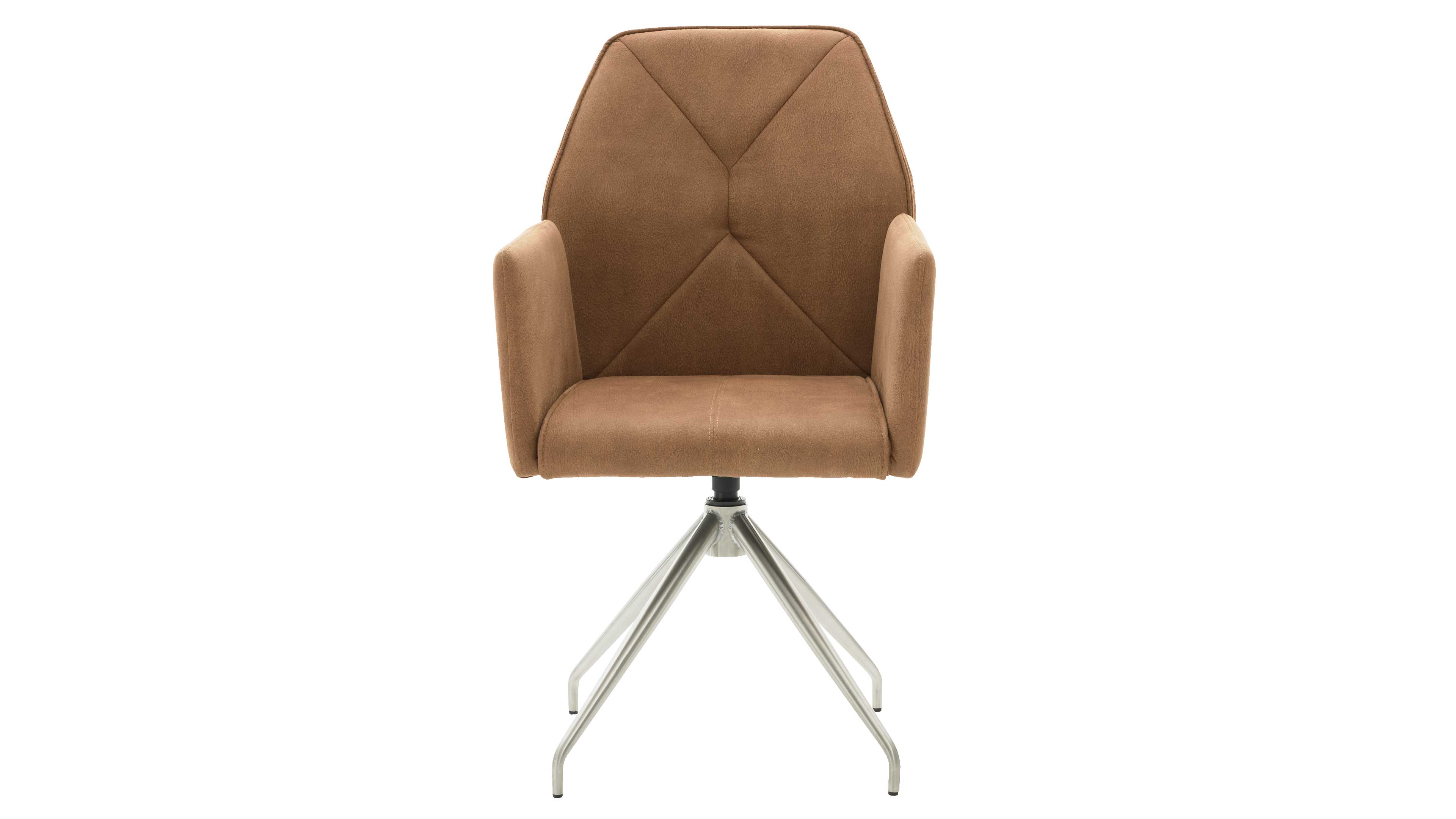 Drehbarer Armlehnstuhl in Braun mit gebürstetem Metallgestell