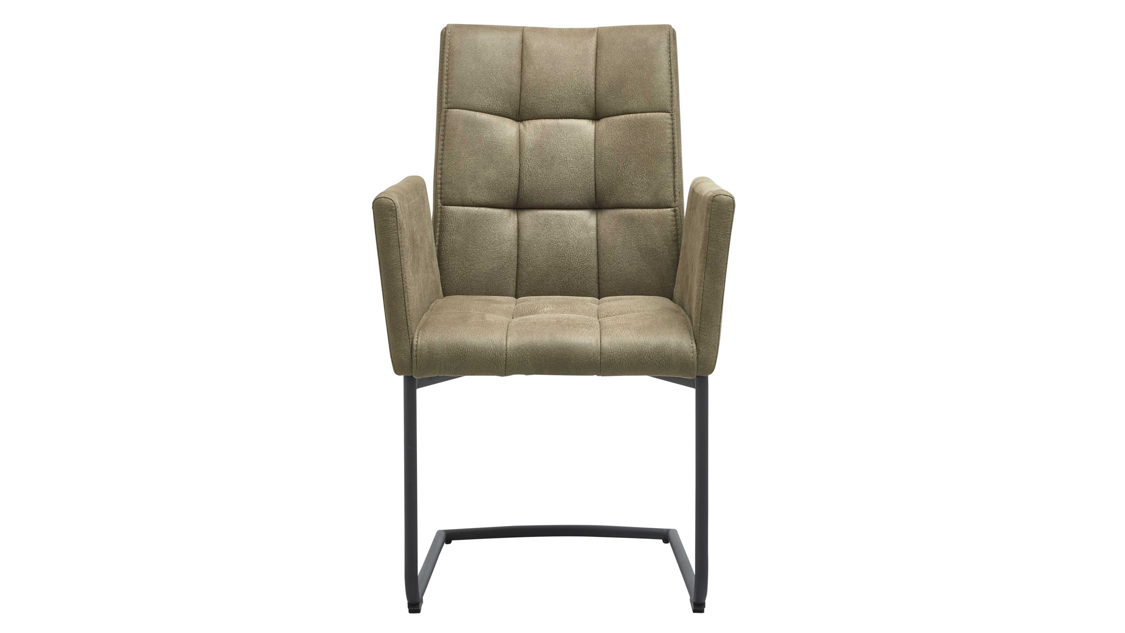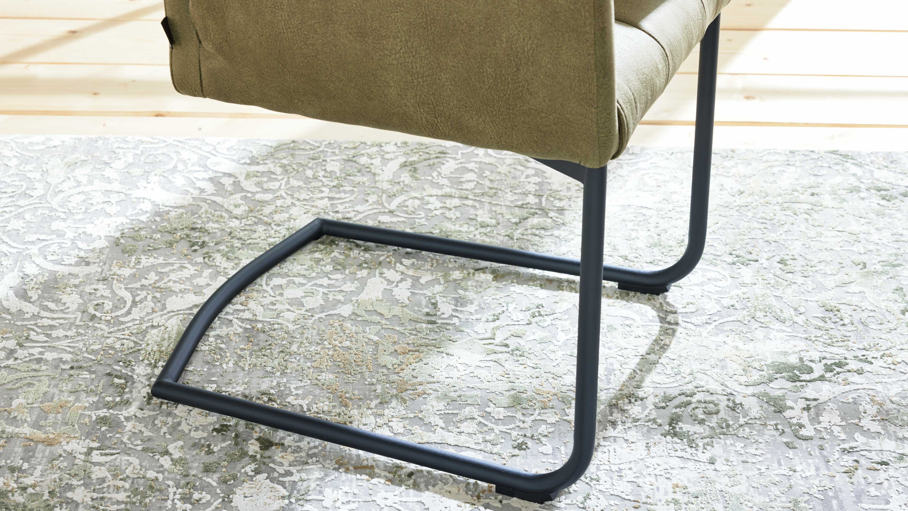 Schwingstuhl mit Armlehne in Oliv und mattschwarzem Metallgestell