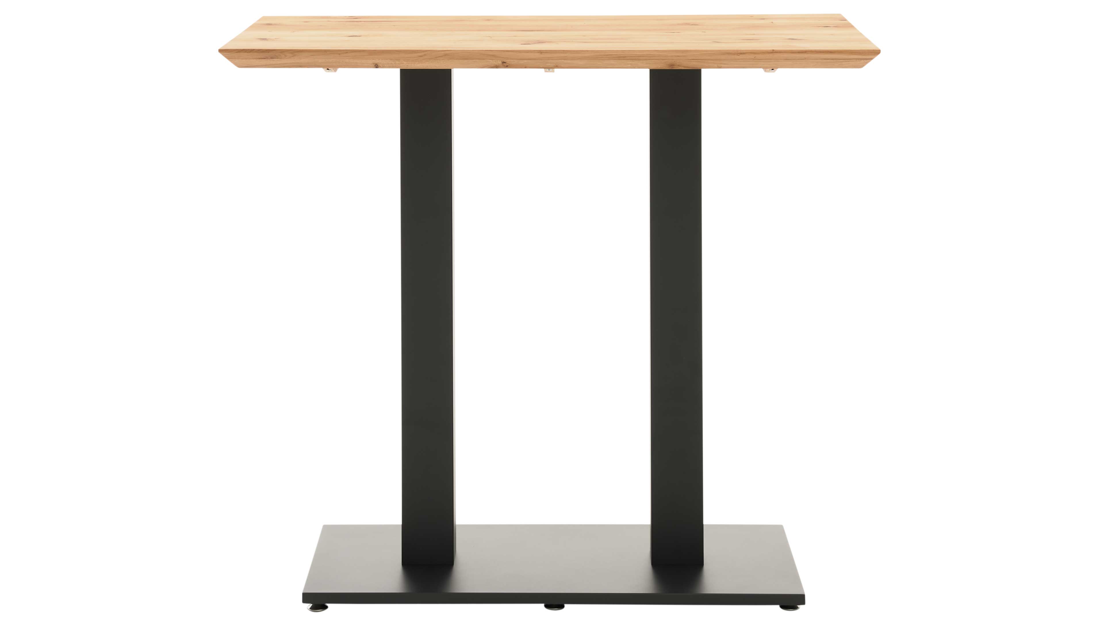 Bartisch mit massiver Holzplatte und schwarzem Doppelsäulengestell