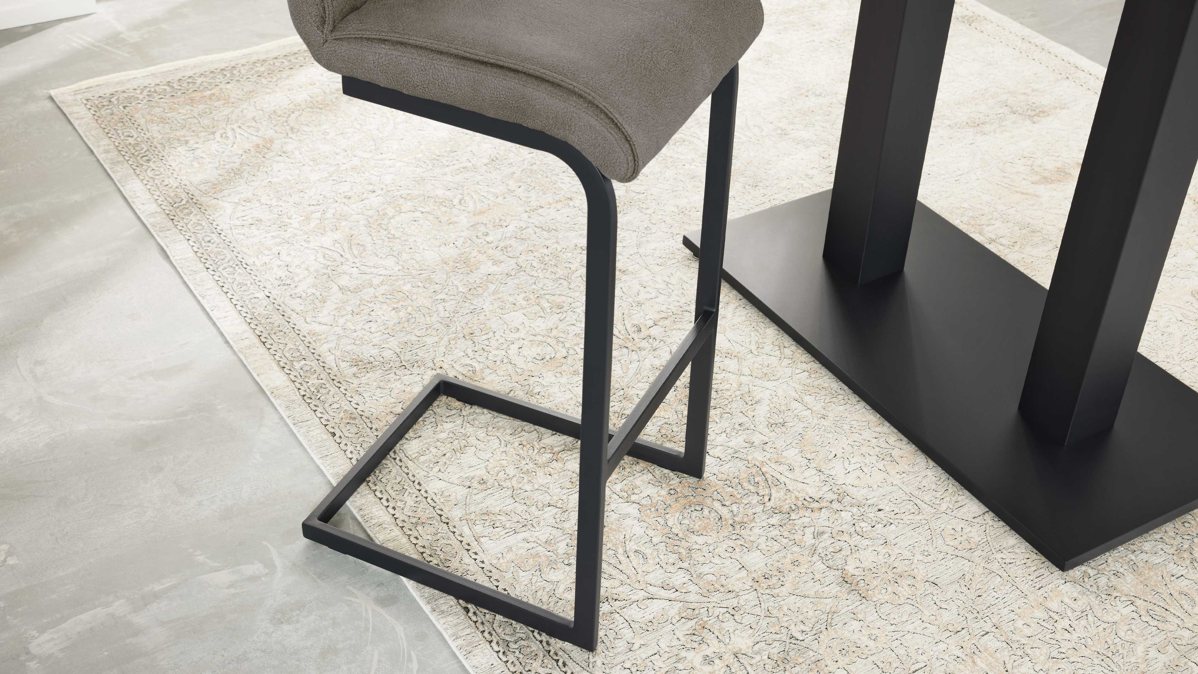 Ein praktischer Griff in Gestellfarbe, integriert in die Rückenlehne, erleichtert das Verschieben – eine smarte Lösung mit Designfaktor, die sich nahtlos in das Gesamtbild einfügt. Für langanhaltenden Sitzkomfort sorgt die viskoelastische Komfortpolsterung in Kombination mit zusätzlicher Wattierung in Sitz und Rücken – perfekt für entspannte Abende am Tresen oder gemütliche Stunden an der Bar.