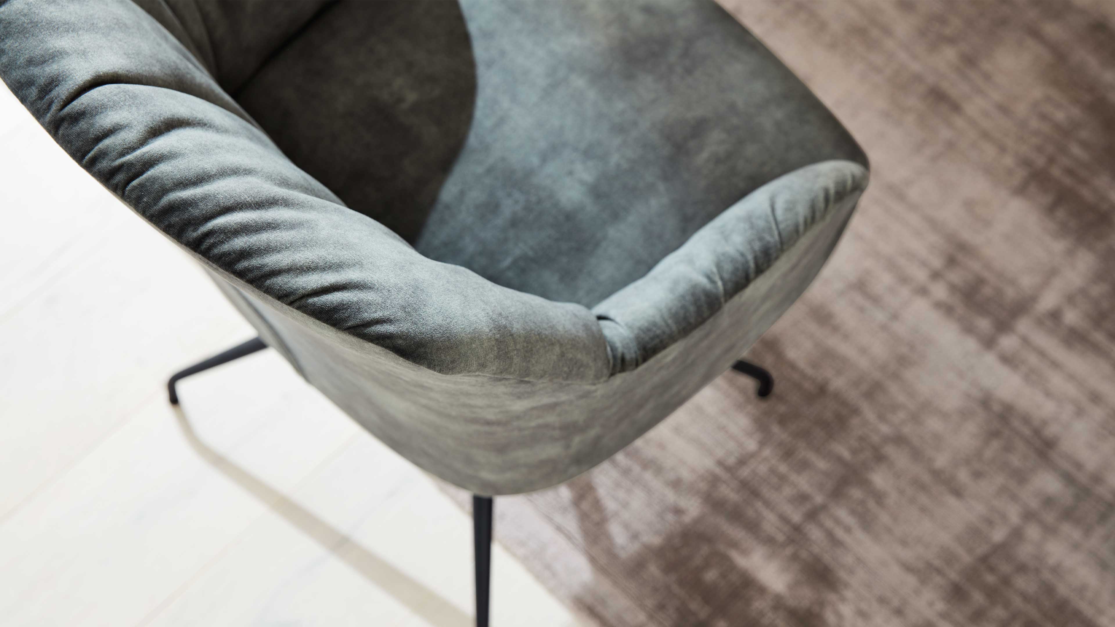 Der Armlehnstuhl aus der Interliving Esszimmer Serie 5110 verbindet stilvolle Optik mit hervorragendem Sitzkomfort. Mit seinem grünen Stoffbezug Genova und dem mattschwarz pulverbeschichteten Metall-Spinnenfuß präsentiert er sich modern, trendbewusst und vielseitig kombinierbar.