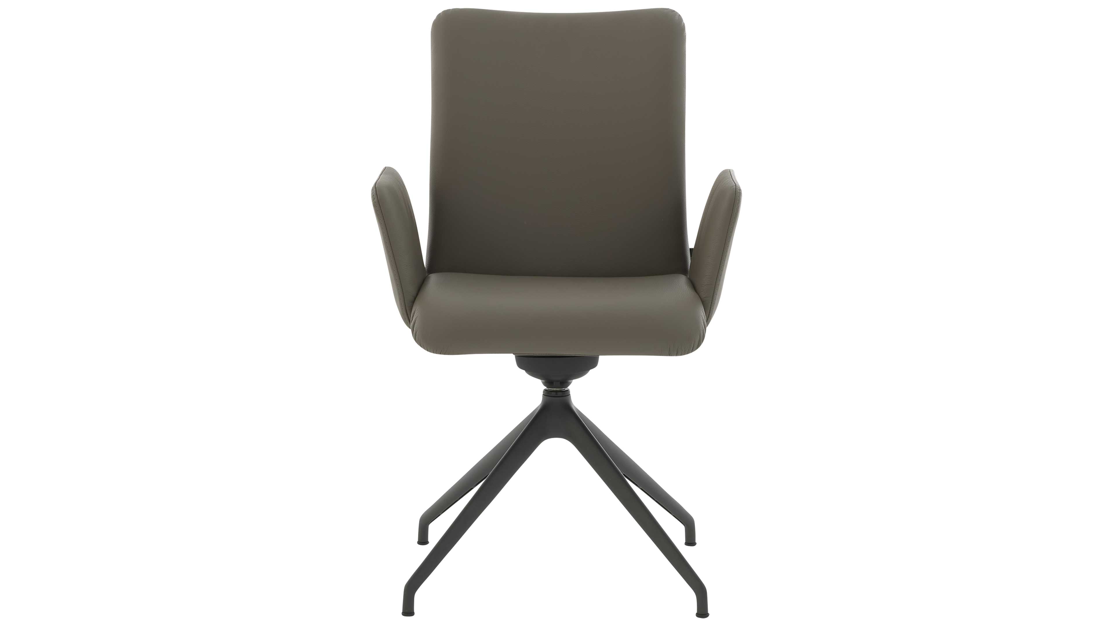 Das anthrazitfarben pulverbeschichtete Metallgestell sorgt für Stabilität und passt optisch ideal zum Leder. Dank 180-Grad-Drehfunktion mit Rückholmechanismus bleibst du flexibel und kannst dich mühelos drehen, ohne den Stuhl zu verrücken. Nach dem Aufstehen schwenkt der Stuhl sanft in seine Ausgangsposition zurück.