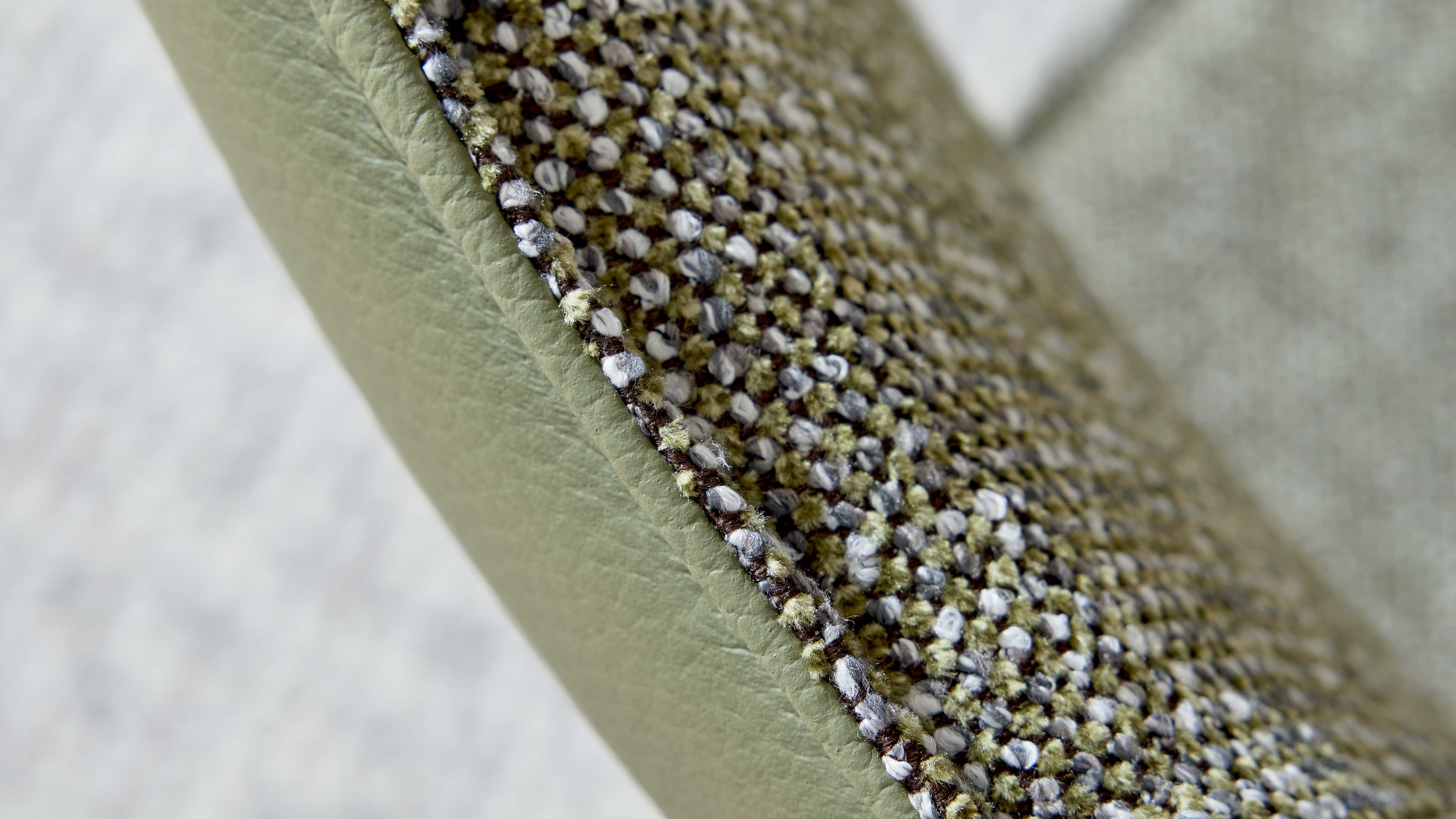 Der Vierfußstuhl aus der Interliving Esszimmer Serie 5115 verbindet modernen Komfort mit einem entspannten, wohnlichen Look. Die Kombination aus außen jadefarbenem Leder und innen moosfarben meliertem Stoff wirkt warm und einladend, während das umbragrau pulverbeschichtete Metall-Vierfußgestell für Stabilität und einen klaren, modernen Akzent sorgt. Die dezente Steppnaht in der Rückenlehne setzt dabei einen feinen, eleganten Akzent.