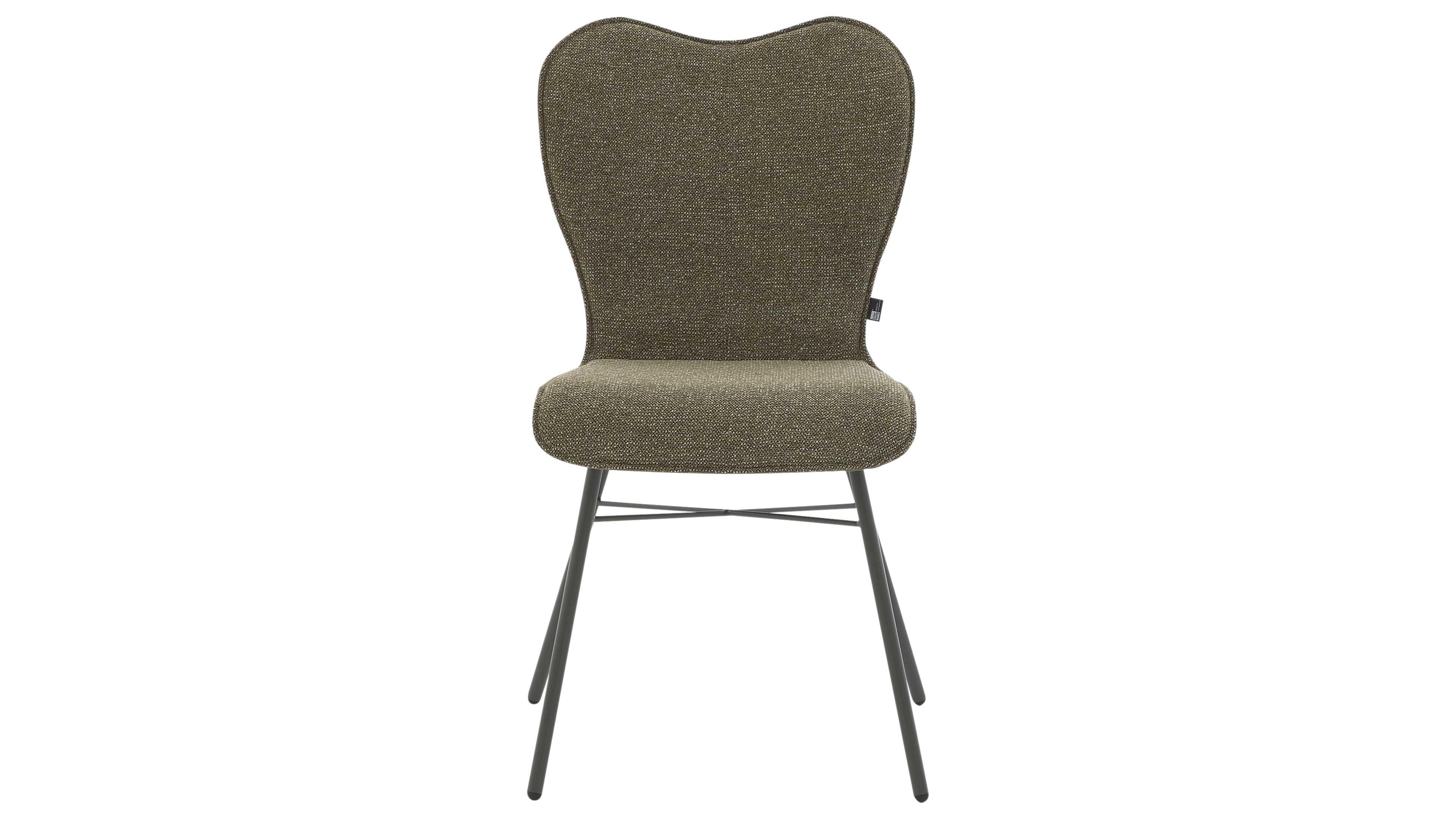 Stilvoller Esszimmerstuhl mit grüner Stoffpolsterung und Metallbeinen