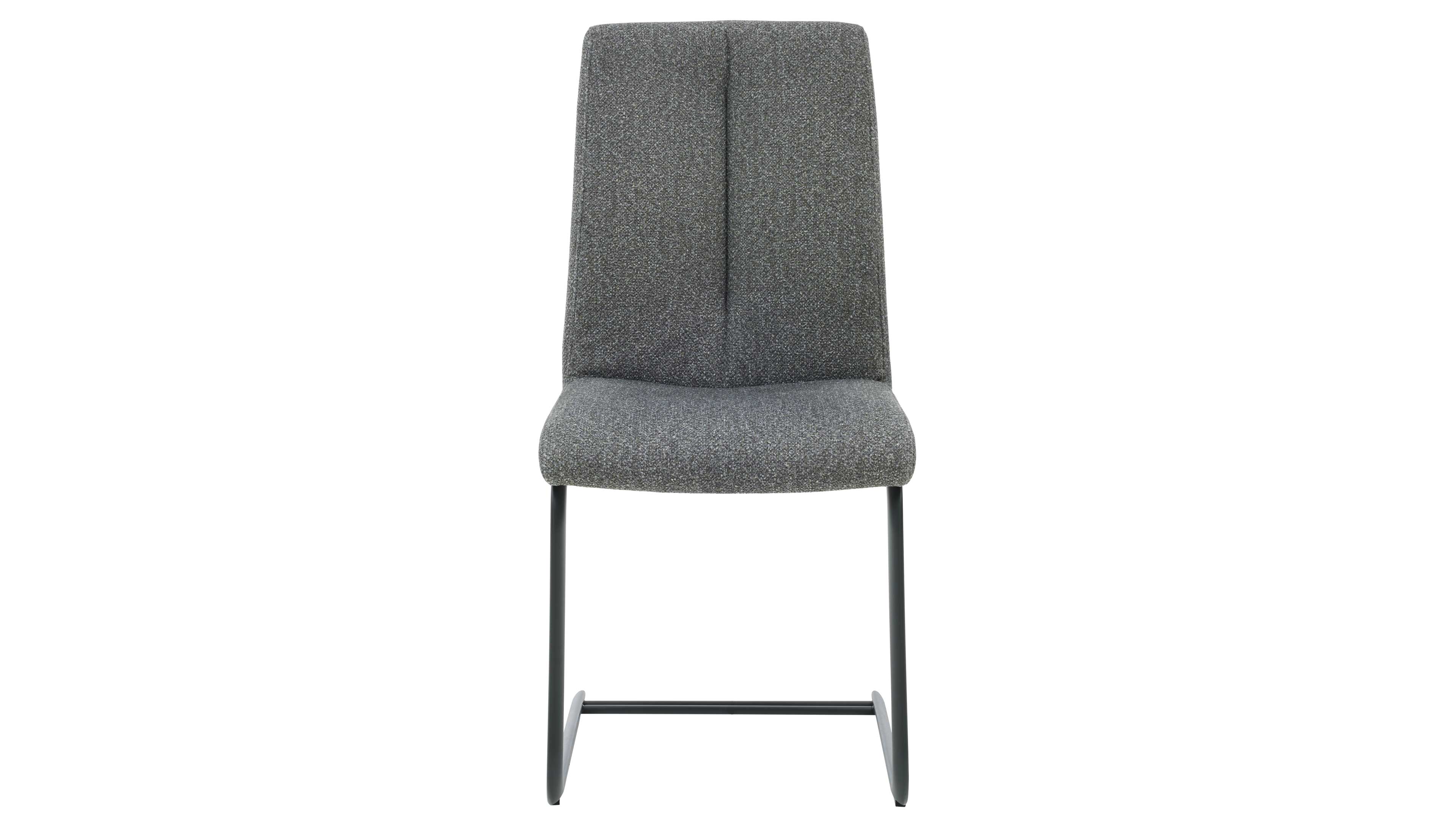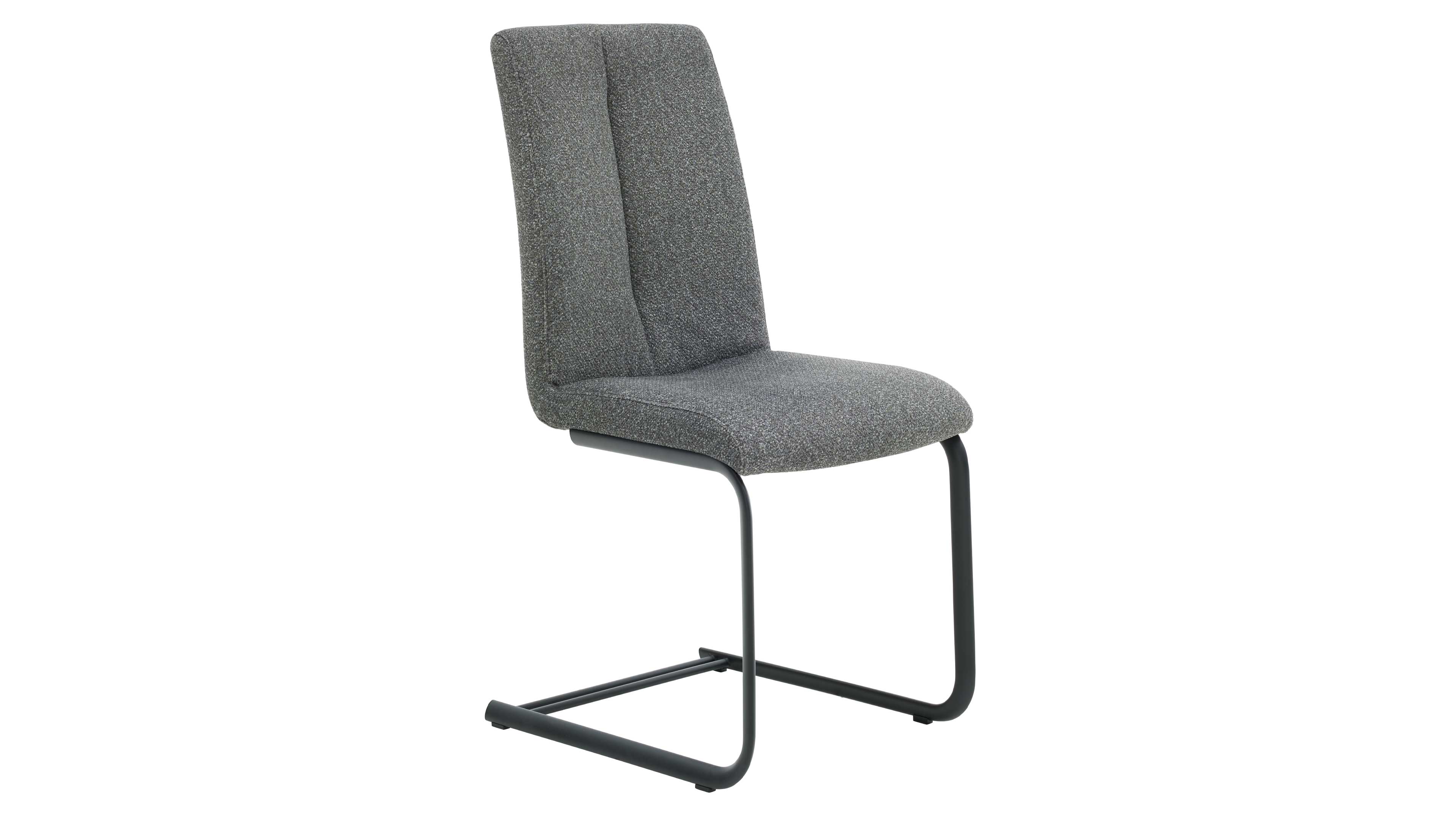 Freischwinger-Stuhl mit grauer Stoffpolsterung und pulverbeschichtetem Metallgestell