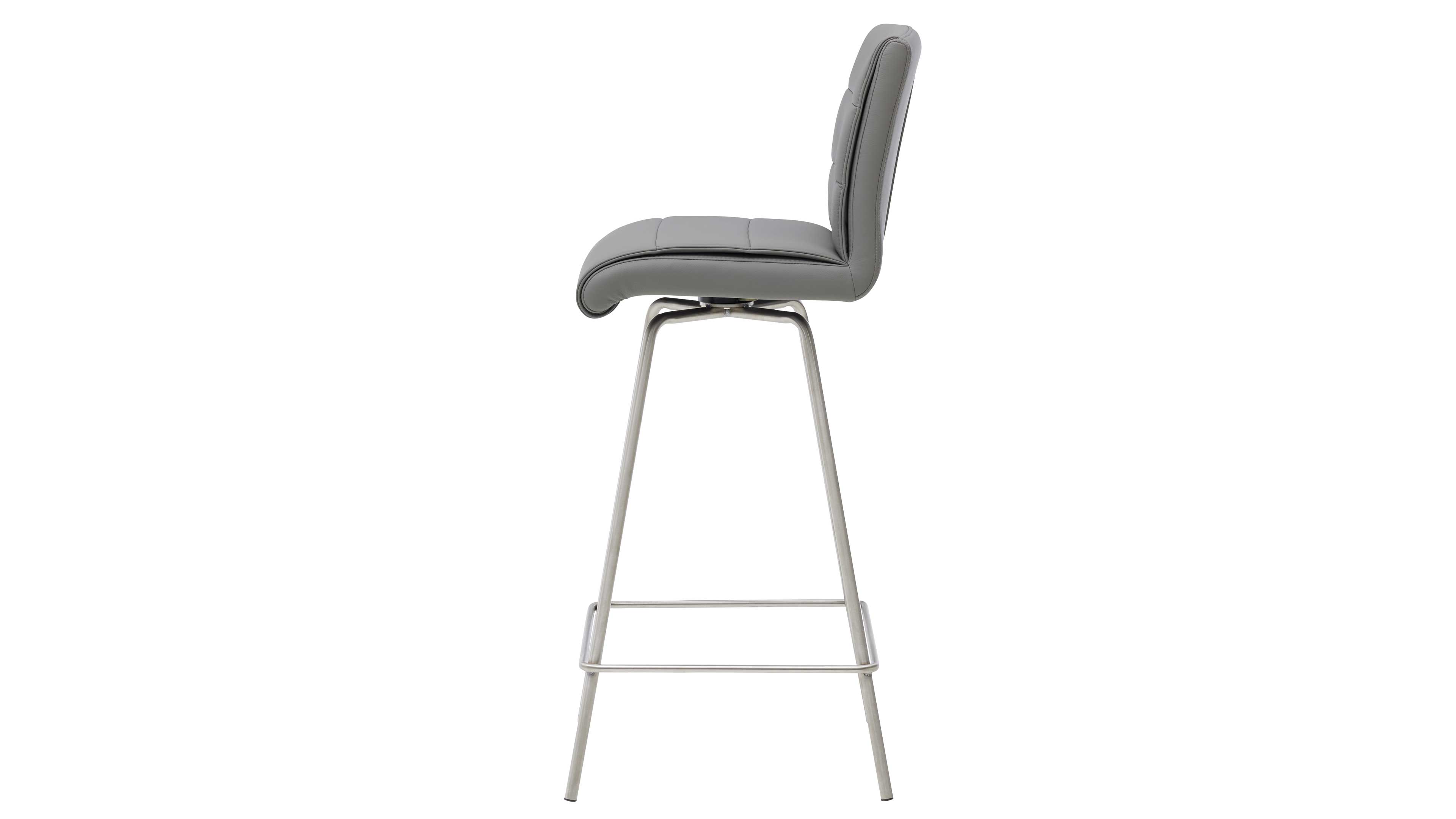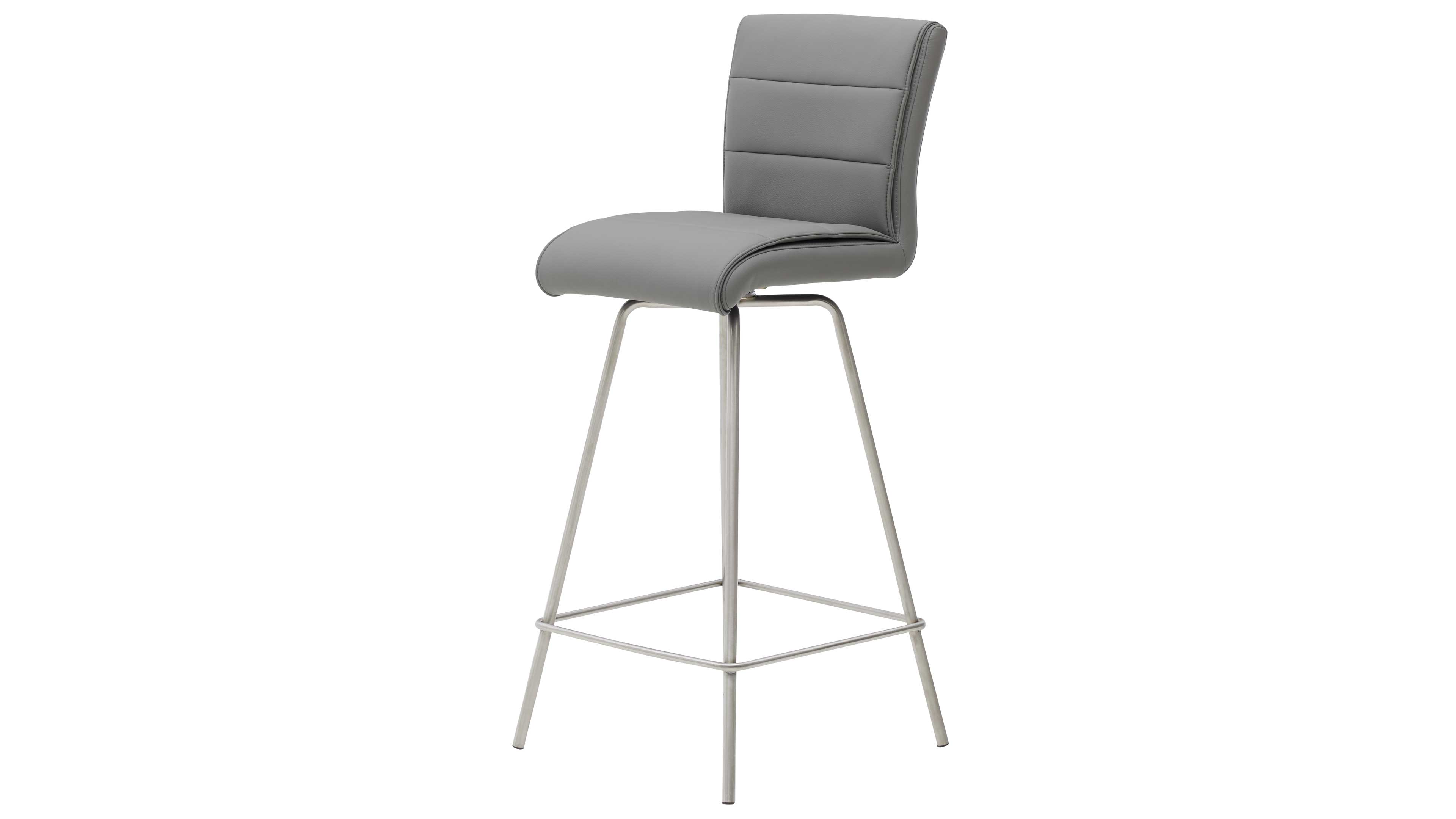 Barhocker mit grauem Bezug und Edelstahlgestell