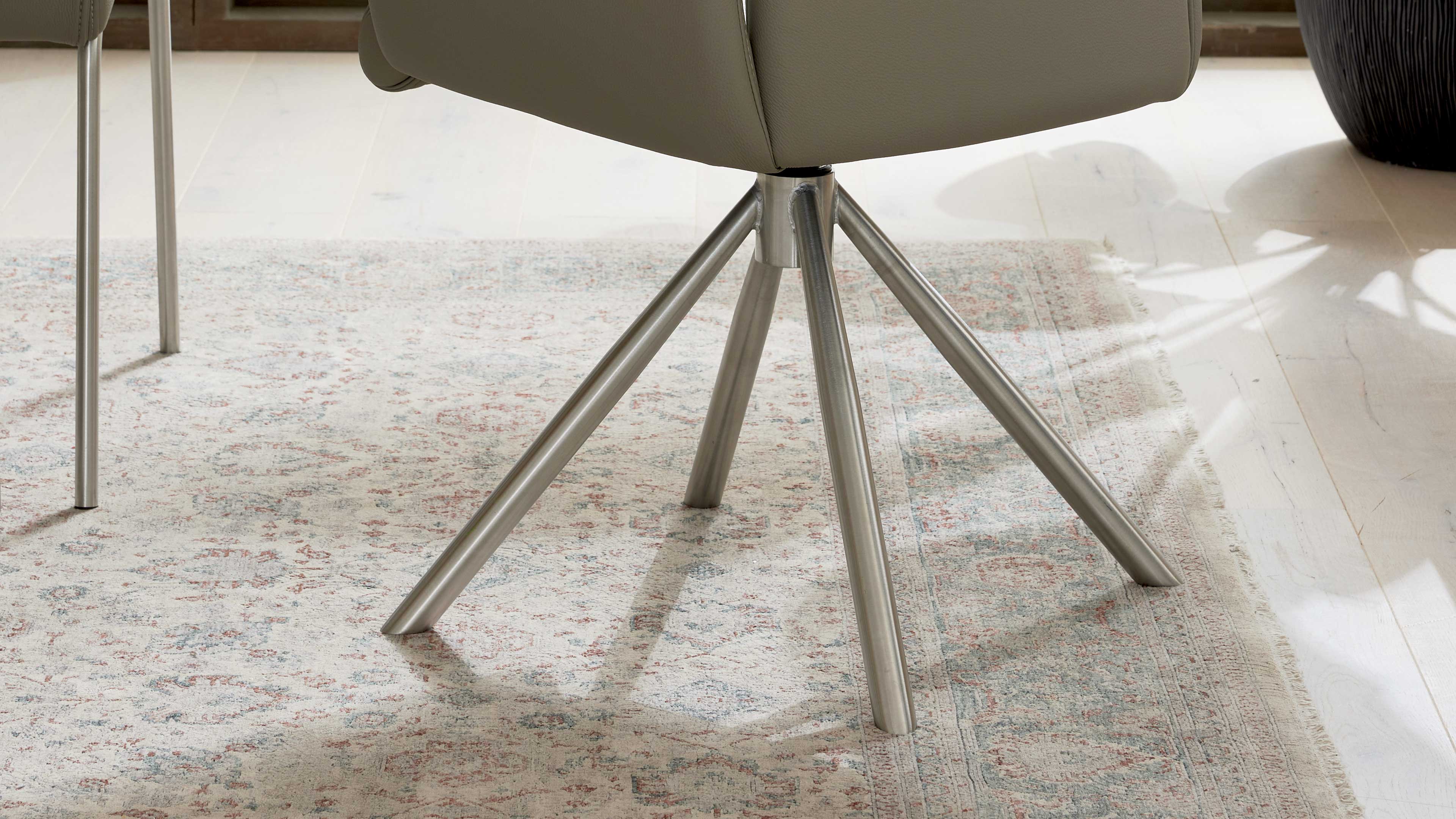 Insgesamt stehen dir 576 Stuhl-Varianten zur Verfügung – perfekt, wenn du Wert auf individuellen Stil und flexible Planbarkeit legst. Du wählst aus sechs verschiedenen Gestellformen, die je nach Modell klassisch, modern oder besonders filigran wirken. Bei den Gestellfarben entscheidest du dich entweder für gebürsteten Edelstahl oder mattschwarzes Metall – zwei starke Looks, die sich wunderbar in unterschiedliche Raumkonzepte einfügen.