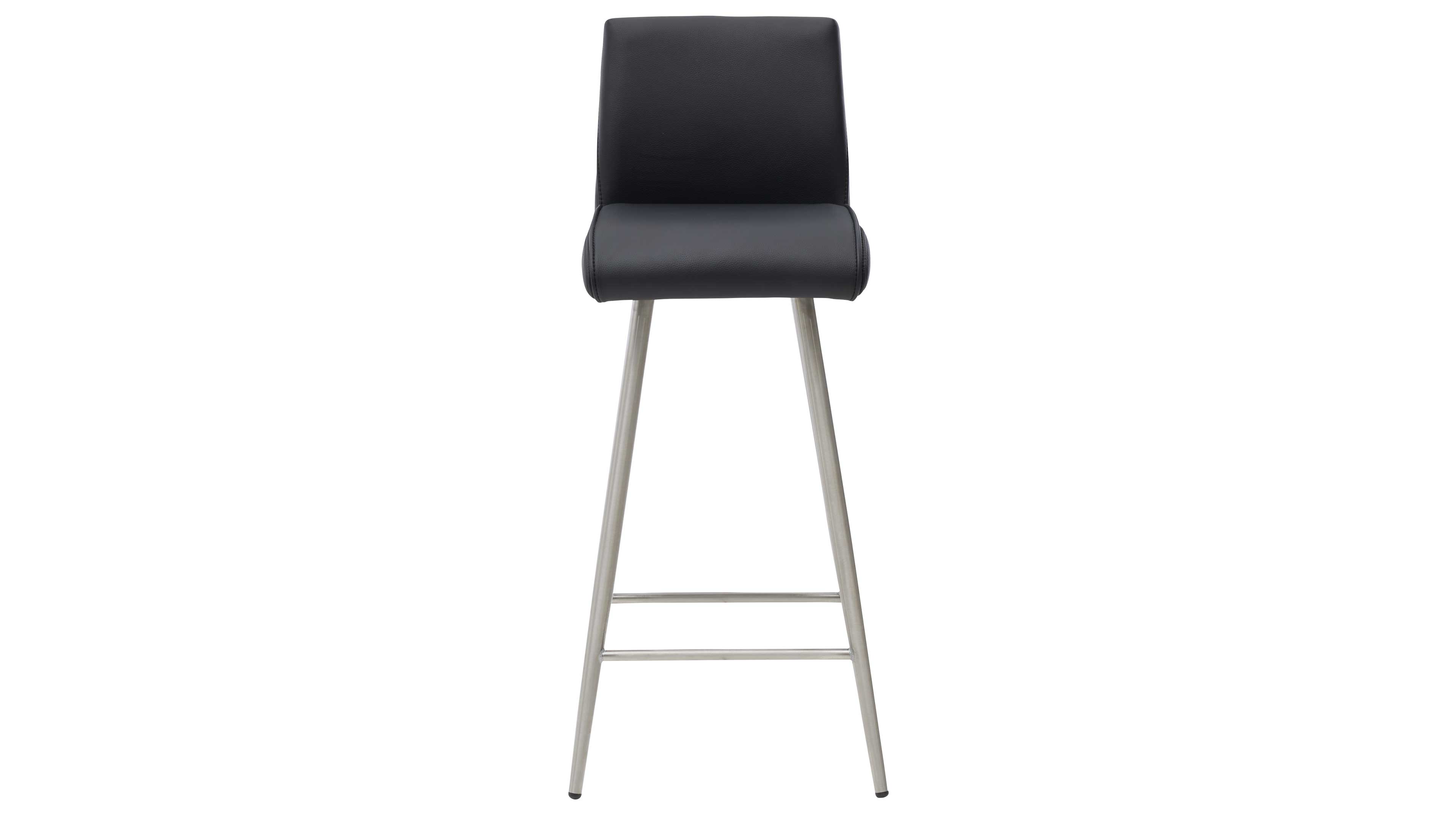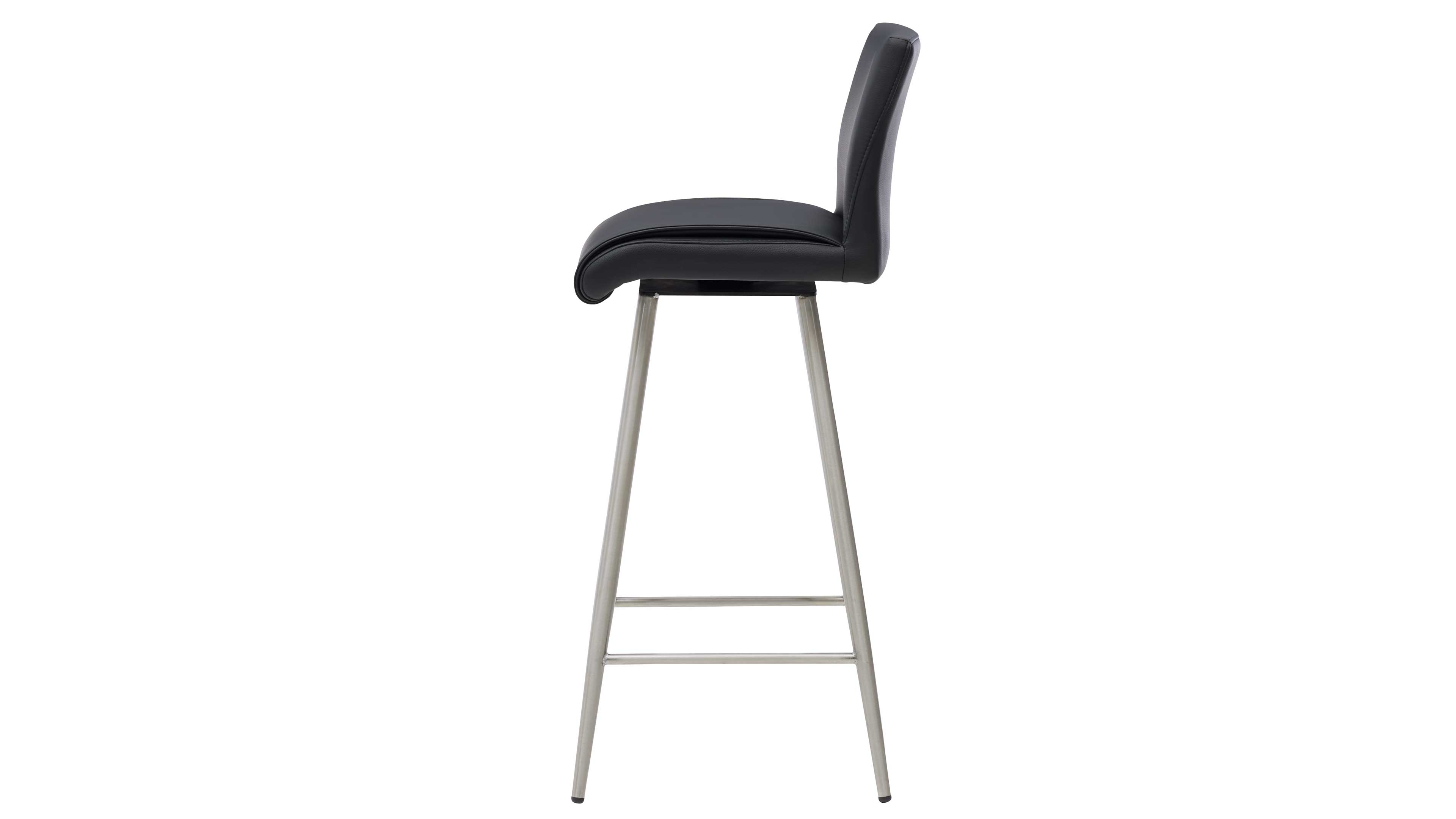 Barhocker mit schwarzem Bezug und gebürstetem Edelstahlgestell