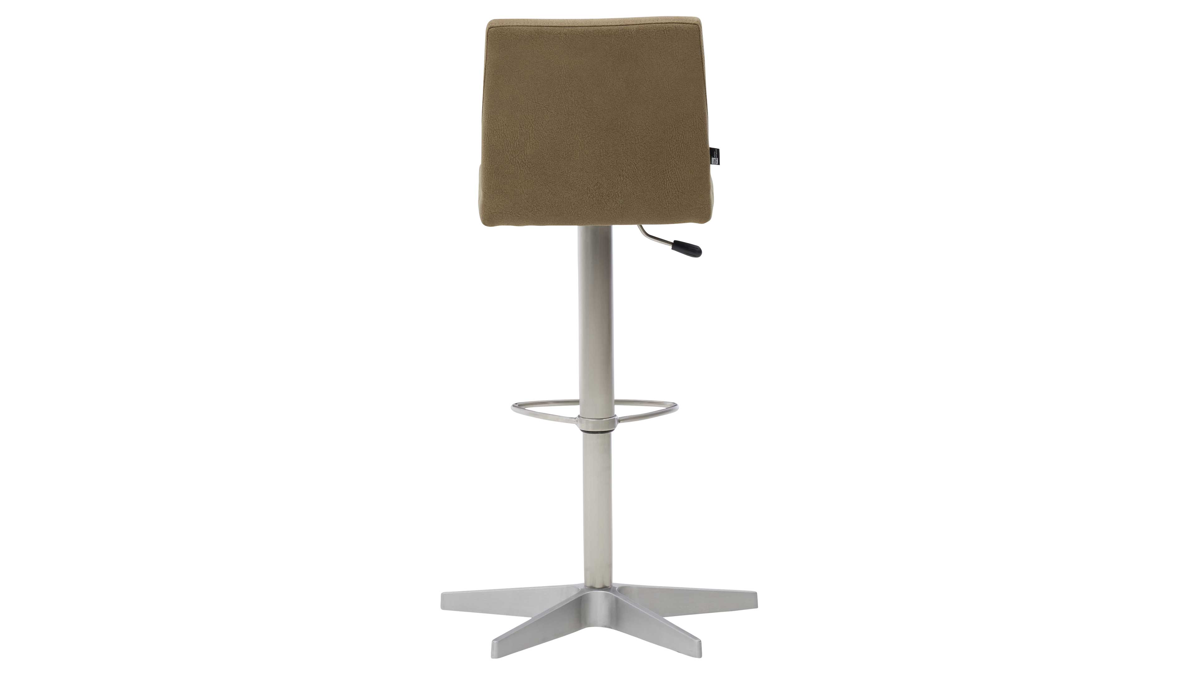 Der farngrüne Mikrofaserbezug fühlt sich angenehm weich an und ist gleichzeitig pflegeleicht. Gemeinsam mit dem gebürsteten Edelstahlgestell und dem polierten Aluminium-Sternfuß entsteht ein moderner Look mit eleganter Leichtigkeit. Die praktische Fußstütze auf ca. 35 cm Höhe macht das Sitzen noch entspannter – auch über längere Zeit.