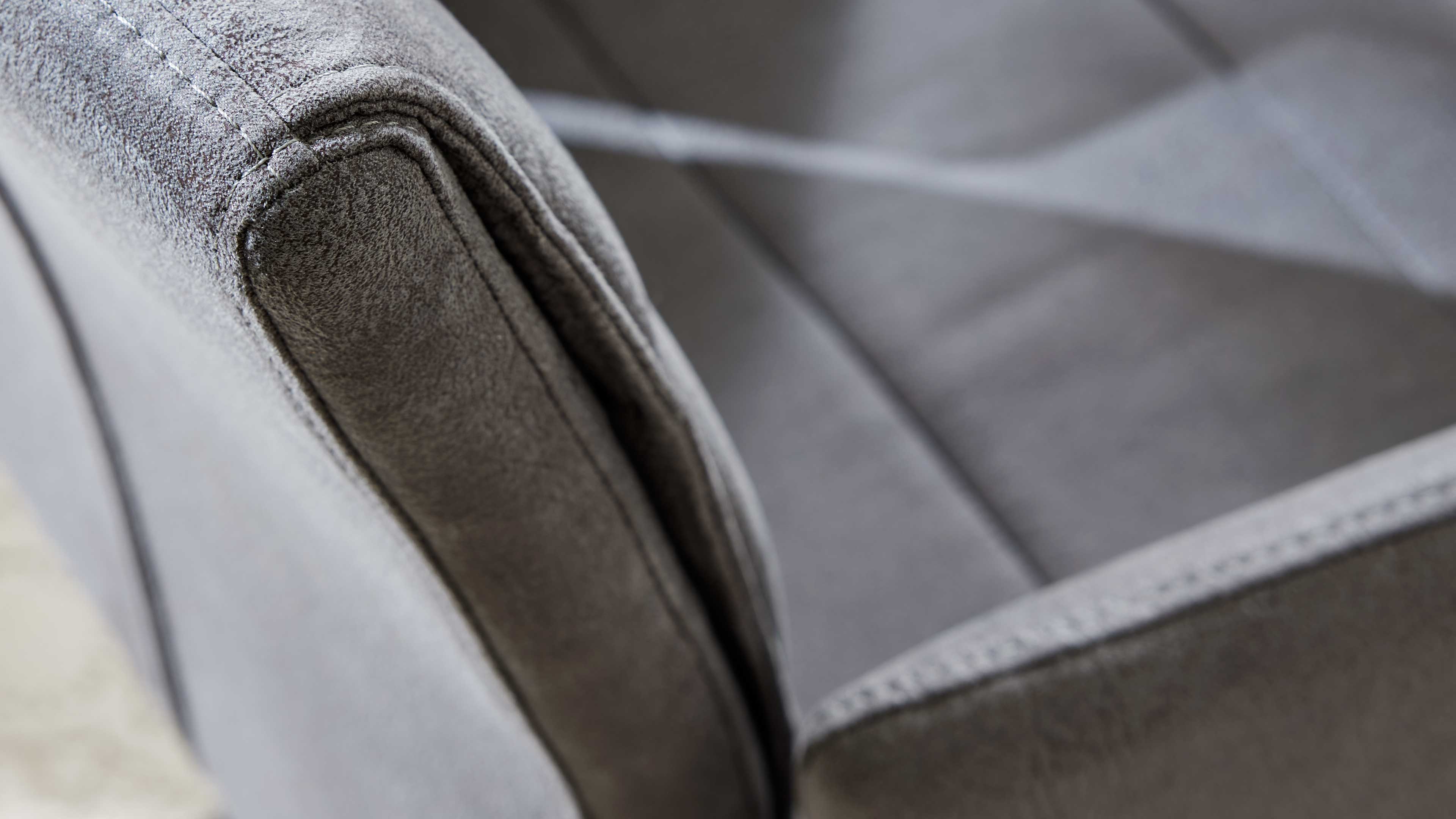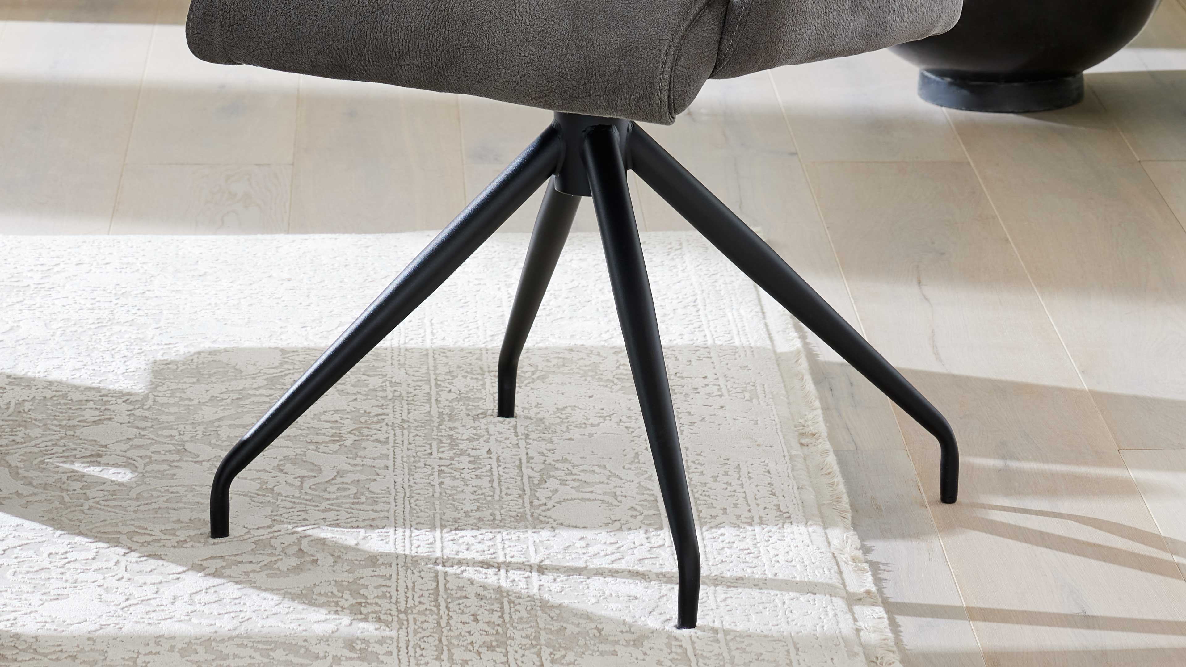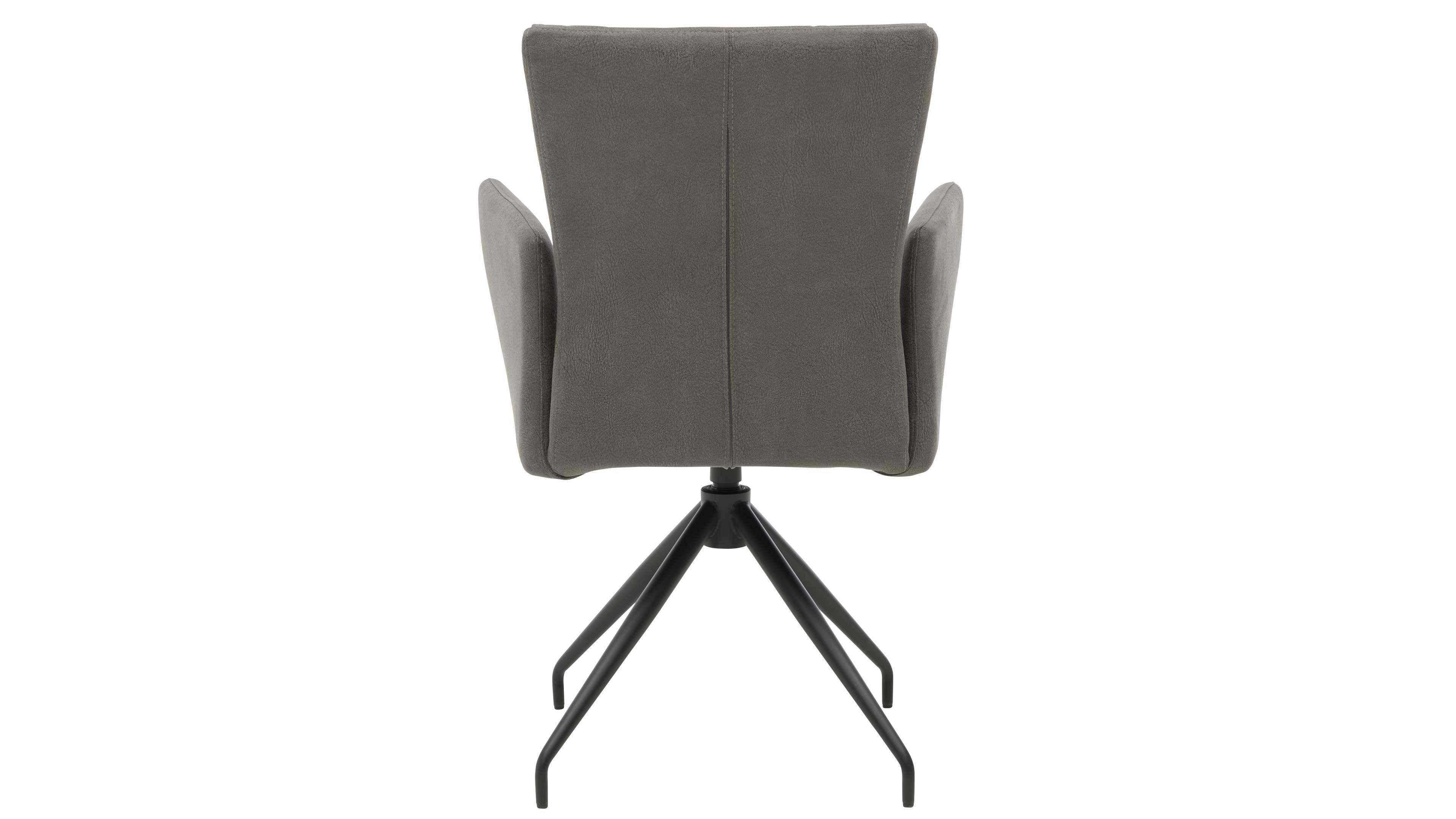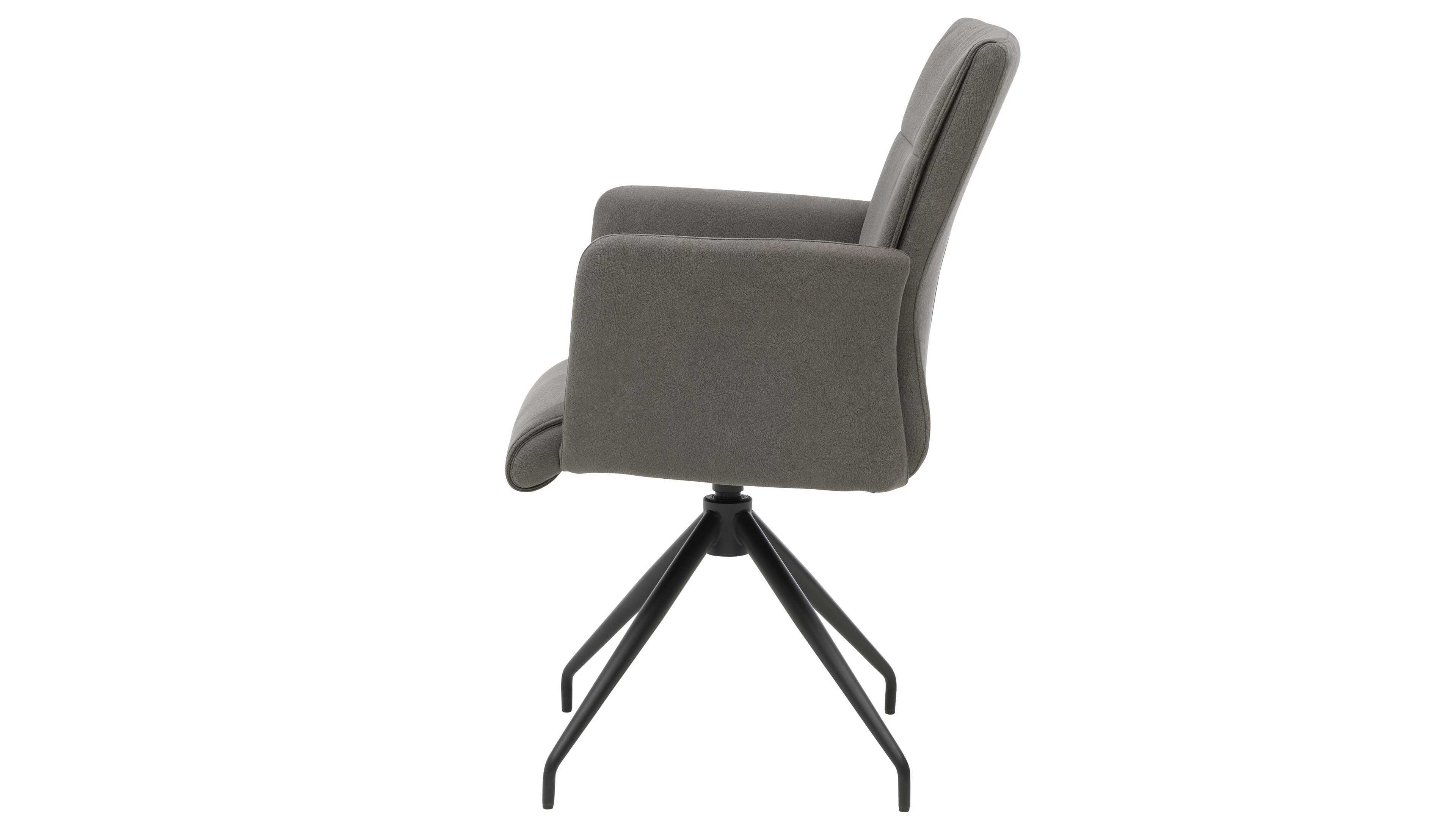 Armlehnsessel in elegantem Anthrazit mit weichem Bezug und filigranem, schwarzem Drehgestell