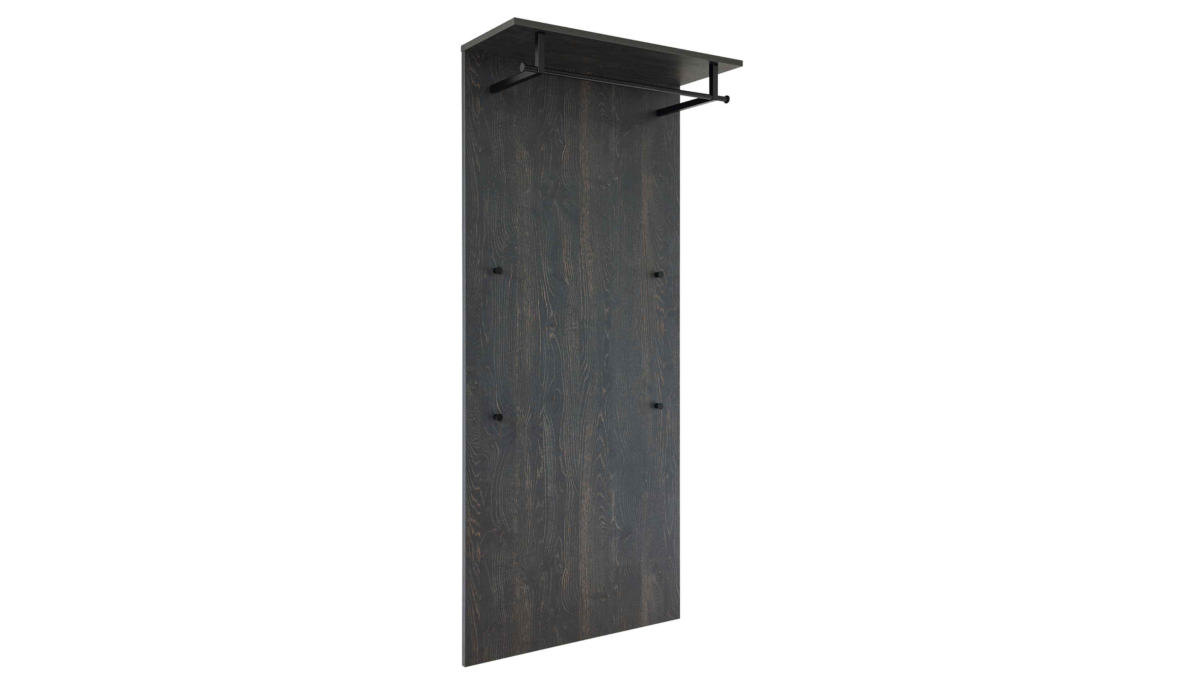 Mit Ablageboden, Kleiderstange und mehreren stabilen Haken bietet das Garderobenpaneel flexible Aufhängemöglichkeiten für Jacken, Taschen, Hüte oder Schals – kompakt, griffbereit und elegant gelöst.