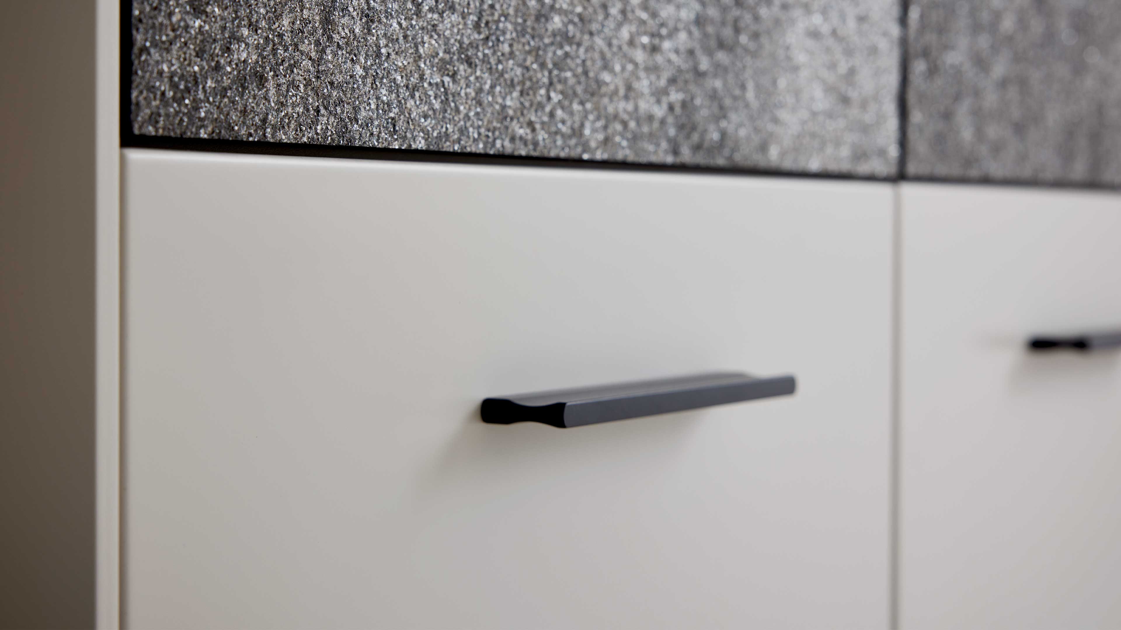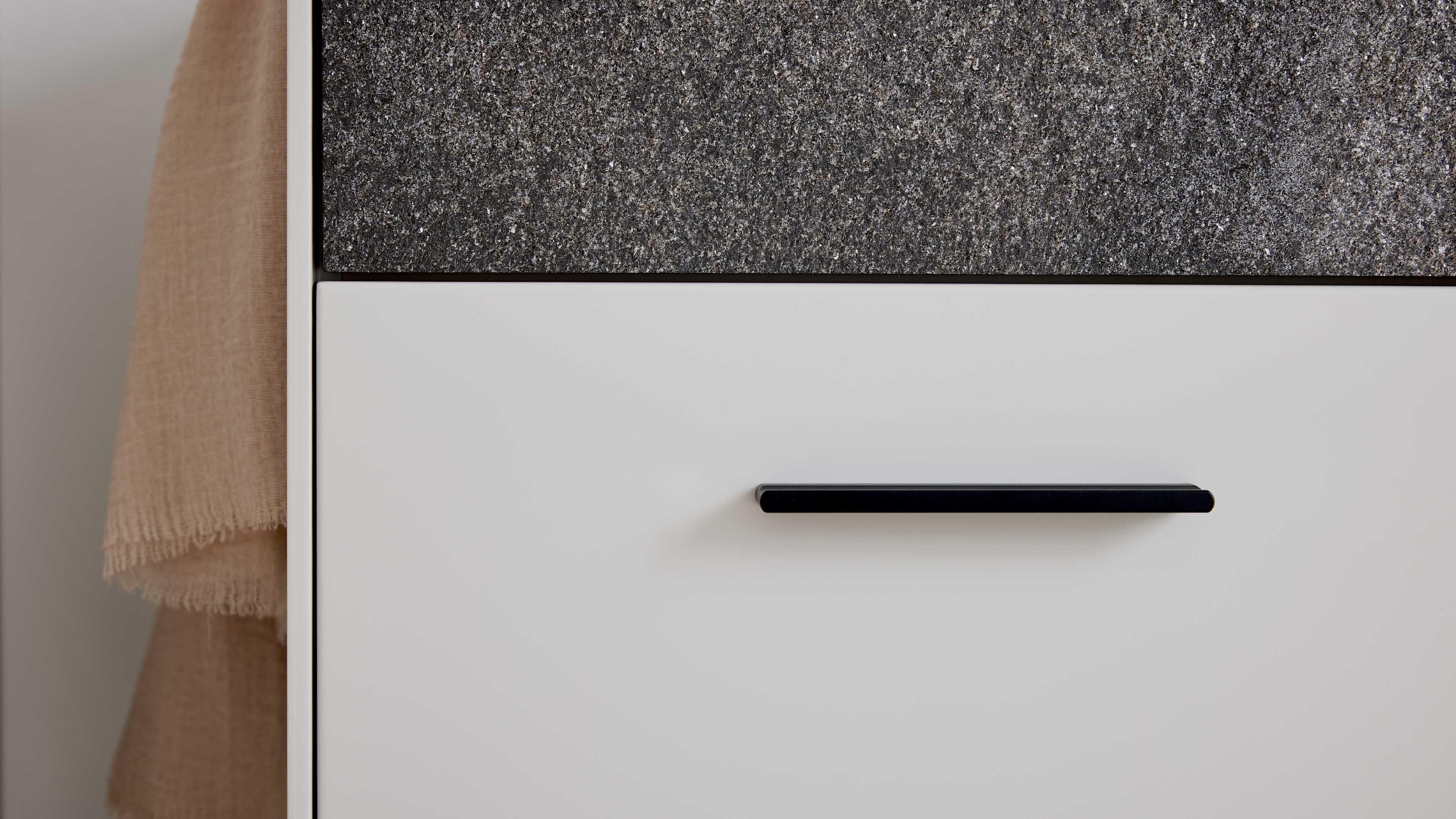 Dieses exklusive Garderoben-Set aus der Interliving Garderoben Serie 6013 vereint hochwertige Materialien mit funktionalem Design – perfekt für alle, die ihren Flur oder die Diele stilvoll und durchdacht einrichten möchten. Die matt lackierten Oberflächen in Sahara Creme harmonieren ideal mit edlem Granit-Steinfurnier. Mattschwarze Aluminiumgriffe und Kleiderhaken setzen moderne Akzente und unterstreichen das zeitgemäße Design dieses Dielenmöbel-Sets.