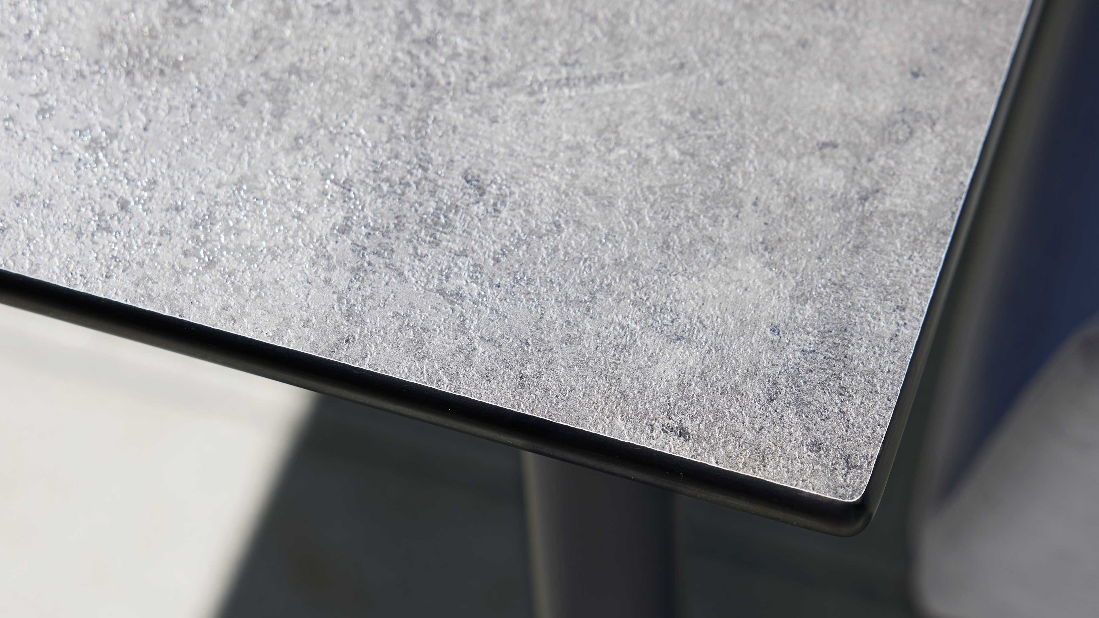 Der Tisch aus der Interliving Gartenmöbel Serie 7003 verbindet moderne Optik mit langlebigen, wetterfesten Materialien – ideal für deinen Essbereich im Freien. Die hochwertige Tischplatte besteht aus betonfarbenem HPL (High Pressure Laminate), einem Hochdrucklaminat mit Melaminharz-Oberfläche. Das Material ist kratz- und stoßfest, lichtecht, säurebeständig sowie wetterfest und langlebig. Mit einer Plattenstärke von ca. 13 mm wirkt die Betonoptik-Surface angenehm schlank und wird durch die elegante Facettenkante stilvoll betont.