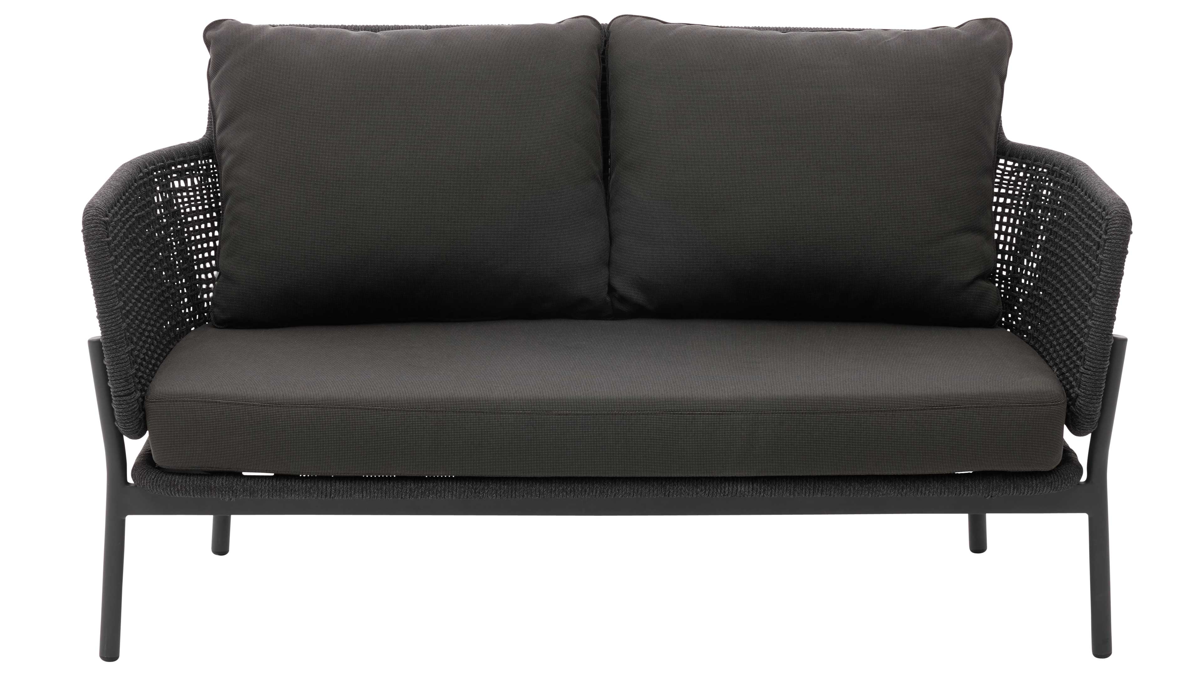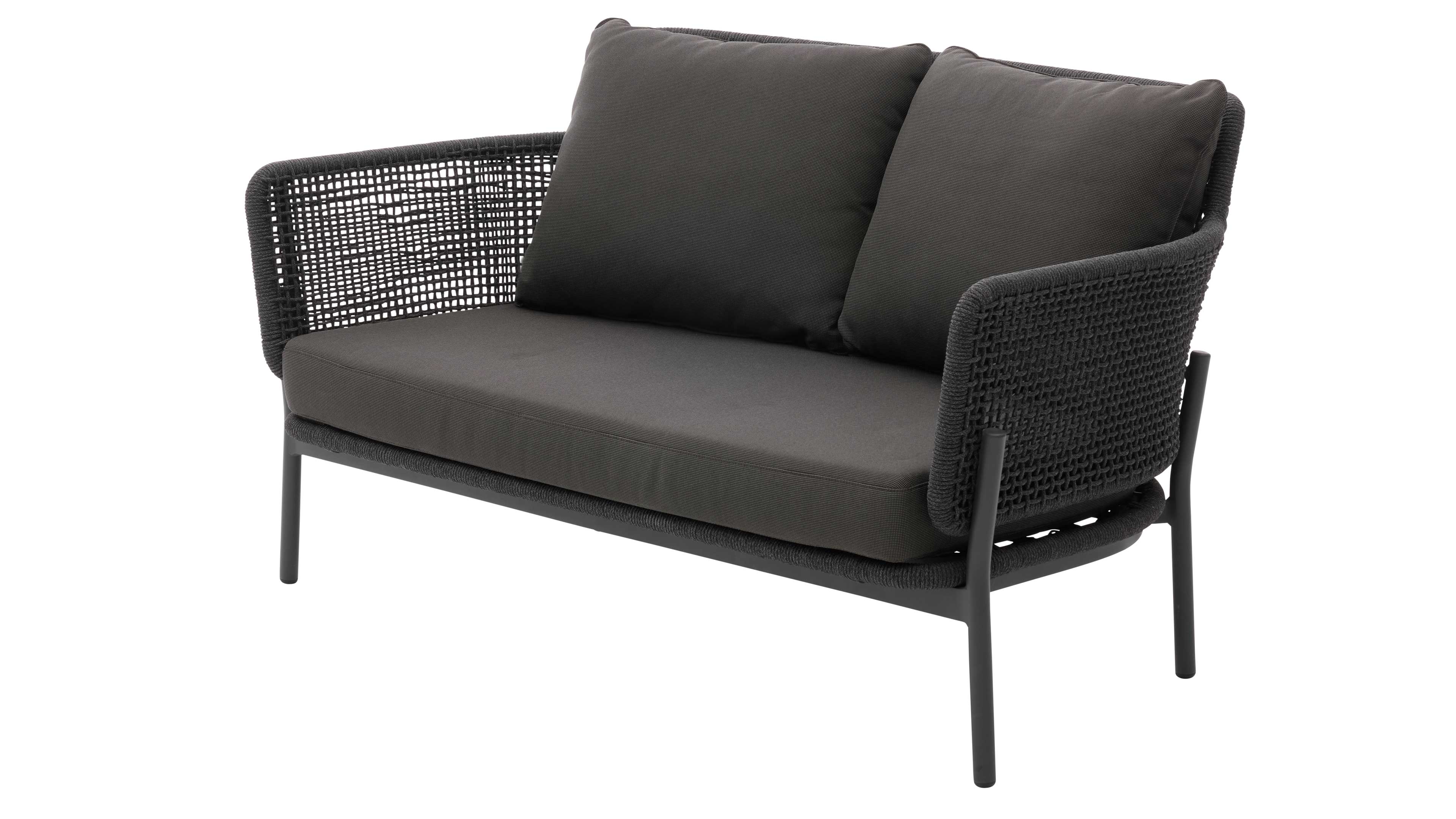 Durch das Kordelgeflecht, die dunklen Bezüge und das anthrazitfarbene Gestell passt das Sofa hervorragend in moderne, naturnahe oder minimalistische Outdoor-Bereiche. Kombiniere es mit hellen Kissen, natürlichen Materialien und Pflanzen, um eine gemütliche Outdoor-Atmosphäre zu schaffen.