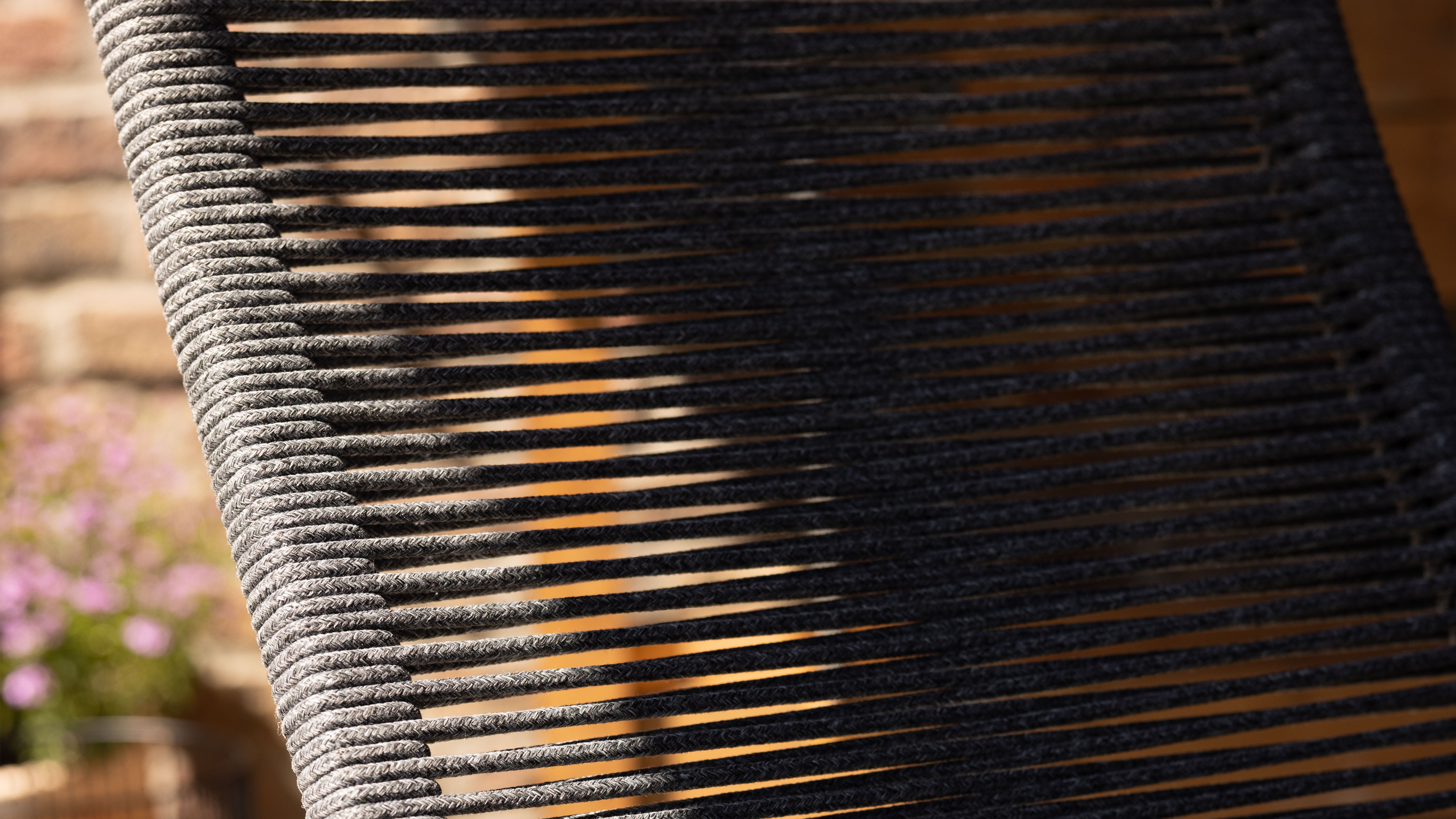 Dank der stufenlos verstellbaren Rückenlehne lässt sich der Positionssessel ganz nach deinen Wünschen anpassen – von aufrechter Sitzhaltung bis zur entspannten Liegeposition. Die ergonomisch geformte Rope-Bespannung bietet angenehmen Halt, während die luftdurchlässige Sitzfläche aus TEXTILENE® besonders reißfest, UV- und witterungsbeständig sowie schnelltrocknend ist. Perfekt für den ganzjährigen Einsatz im Freien – ob als Terrassenstuhl, Balkonstuhl oder Garten-Polsterstuhl.