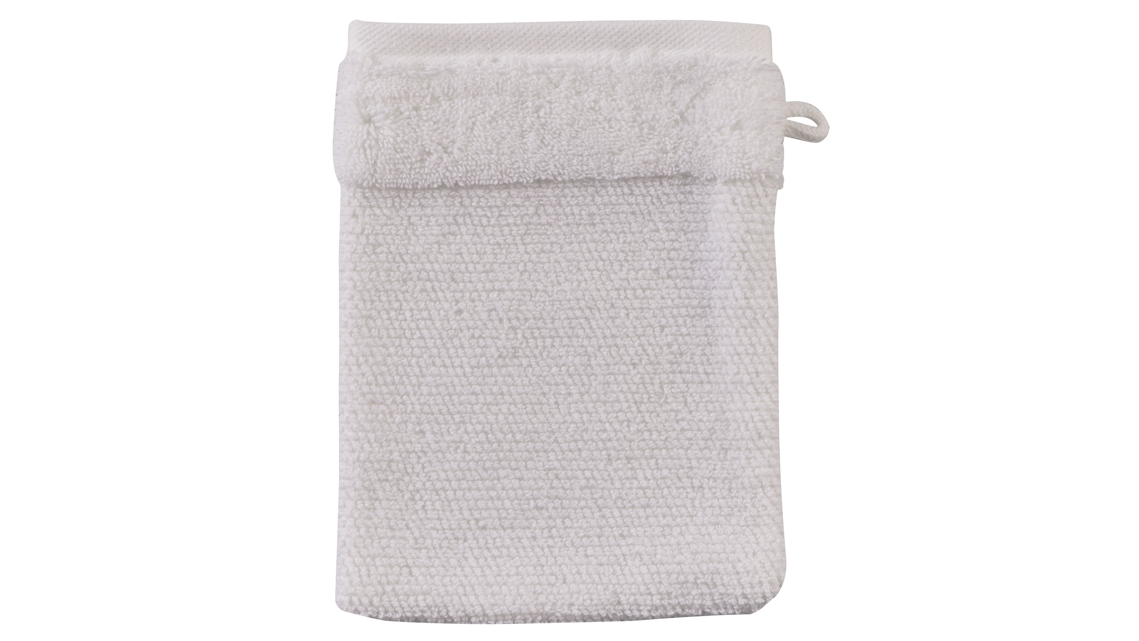 Waschhandschuh in weiß aus weicher, saugfähiger Baumwolle