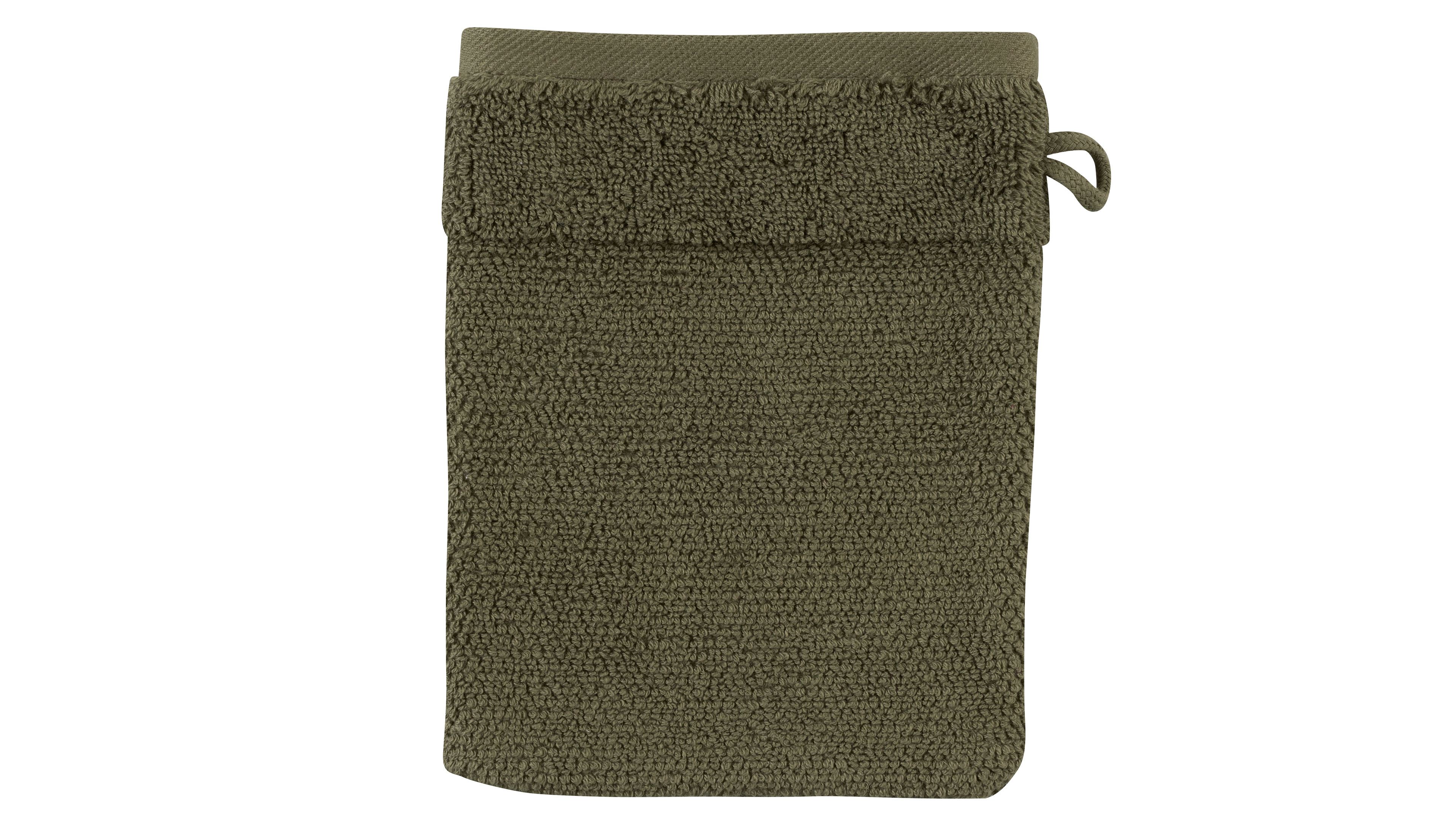 Der olivgrüne Waschhandschuh aus der Interliving Handtuch Serie 9108 überzeugt durch erstklassige Qualität, angenehme Haptik und hohe Strapazierfähigkeit – perfekt für die tägliche Pflege und ein stilvolles Badezimmerambiente.