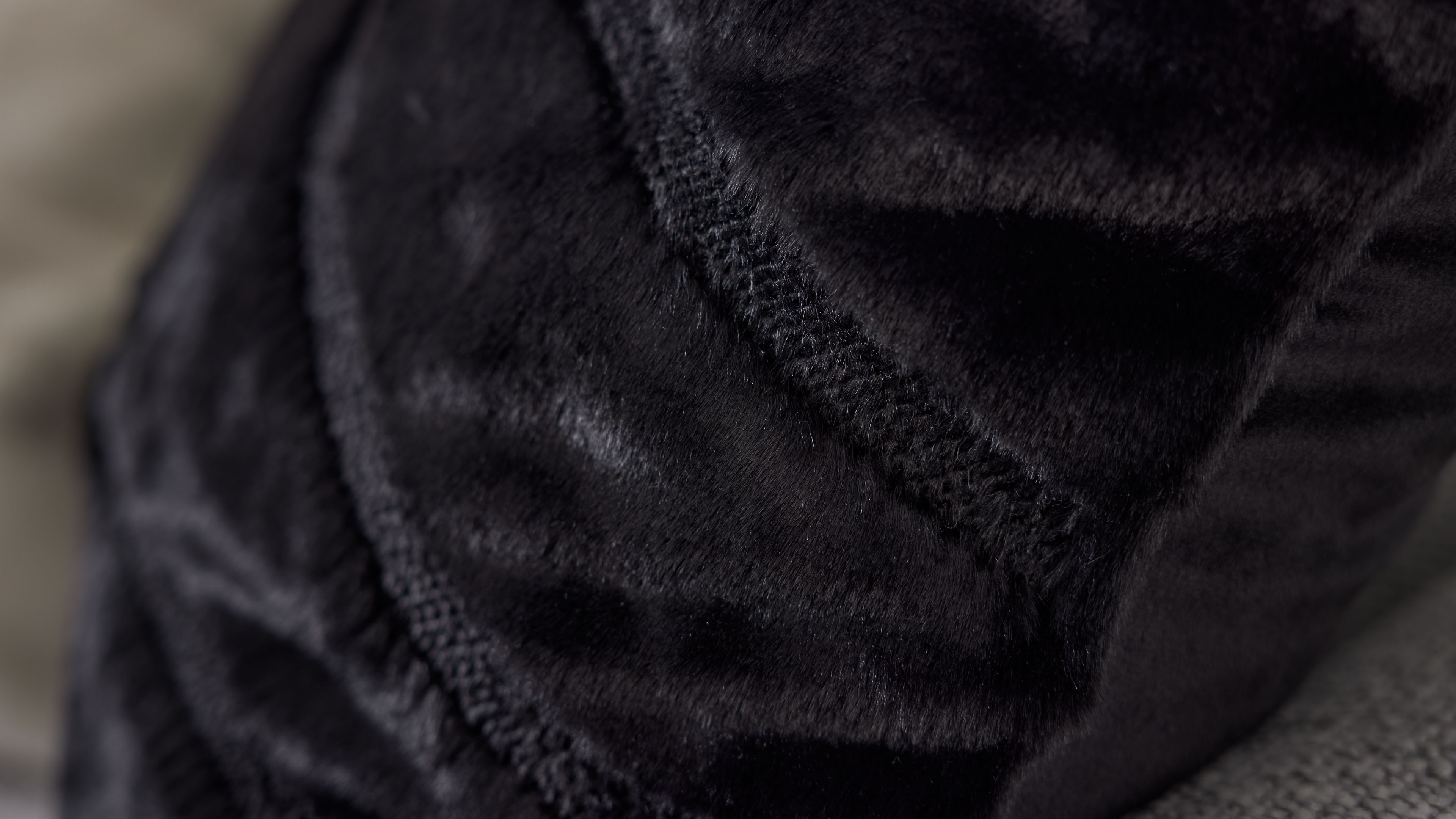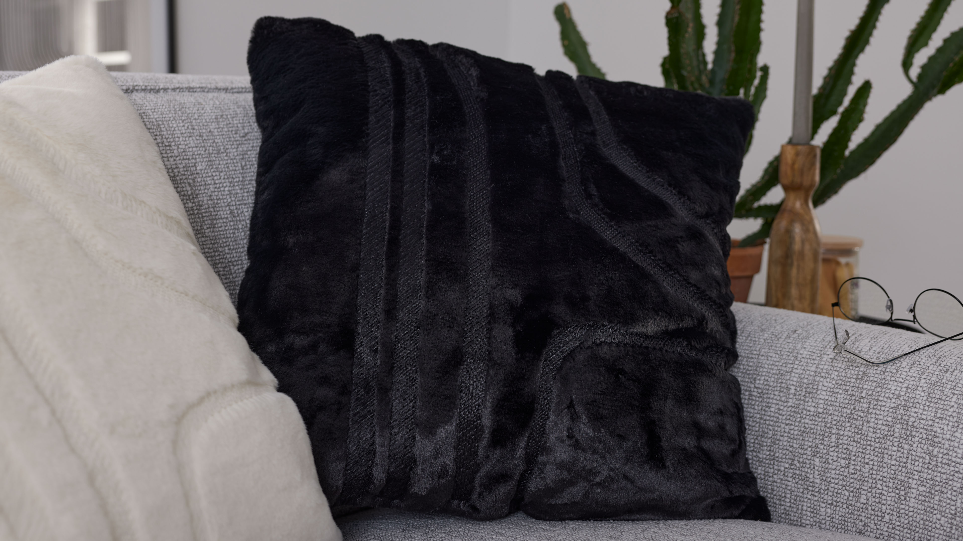 Dekokissenhülle aus schwarzem Kunstfell mit strukturierter Oberfläche