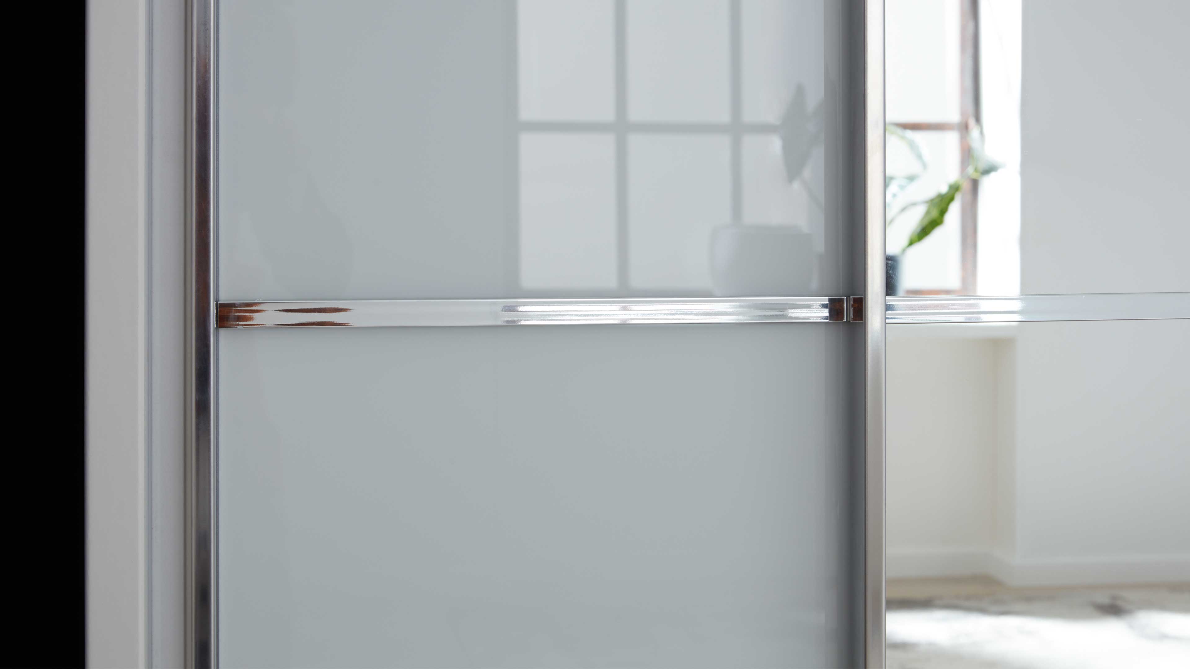 Schwebetürenschrank mit Glasfront in Weiß und Spiegelelement