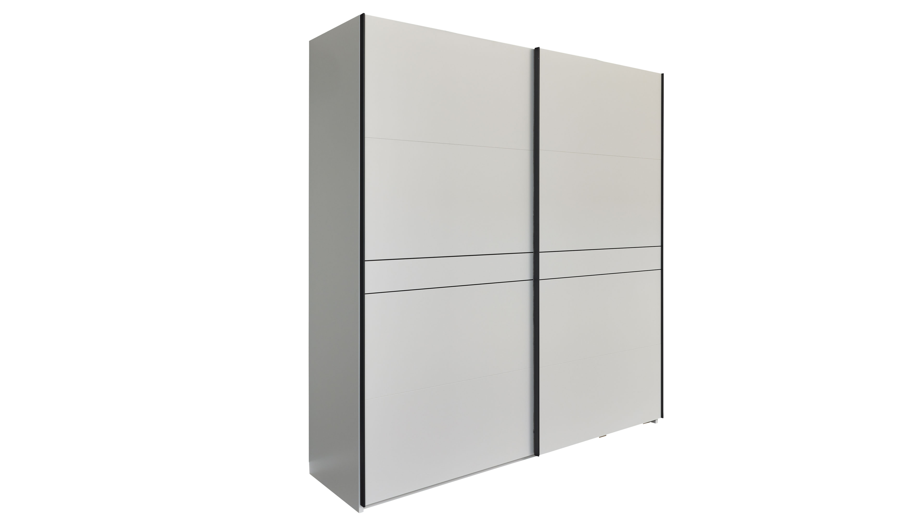Schwebetürenschrank in Weiß mit anthrazitfarbenem Rahmen