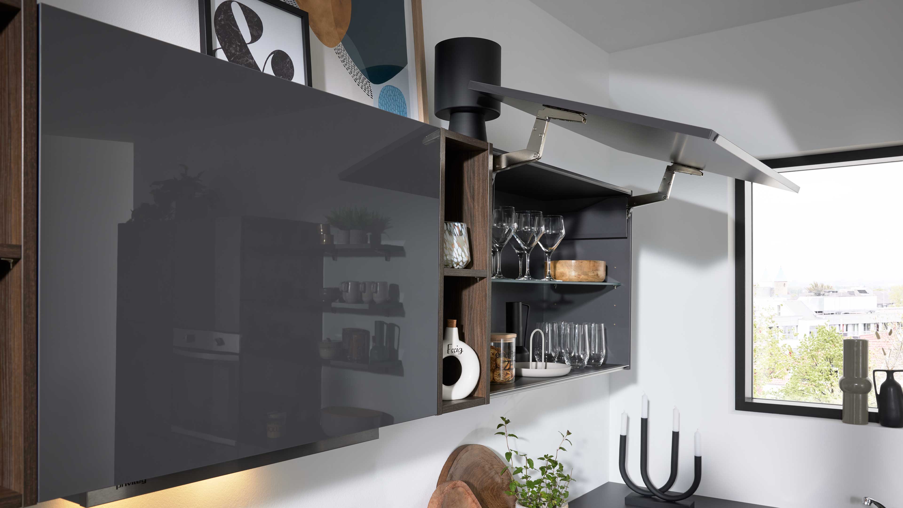 Interliving Küche Serie 3068 – elegante Hochglanzküche in Graphit