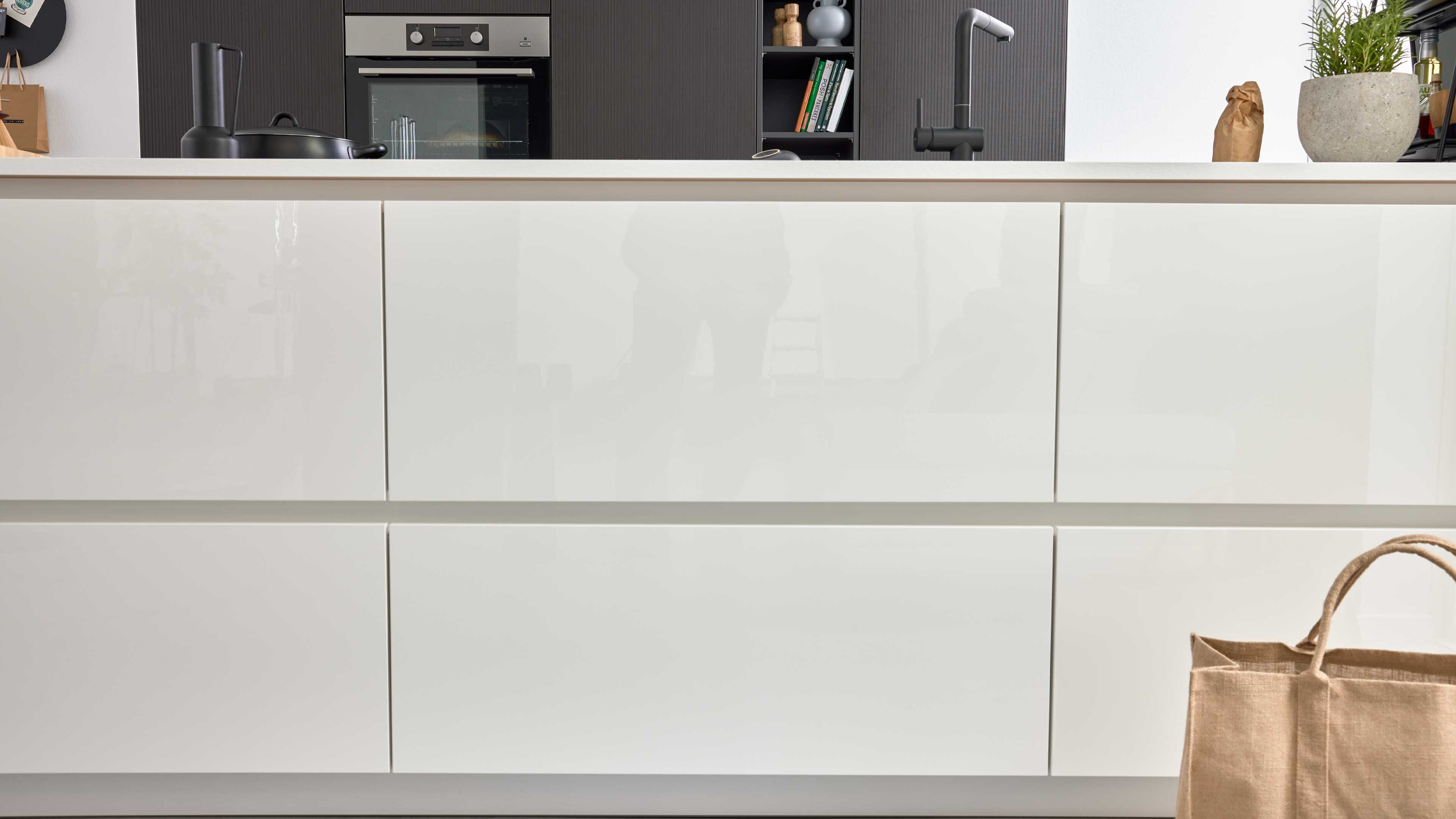 Interliving Küche Serie 3069 – moderne Systemküche mit kontraststarkem Design