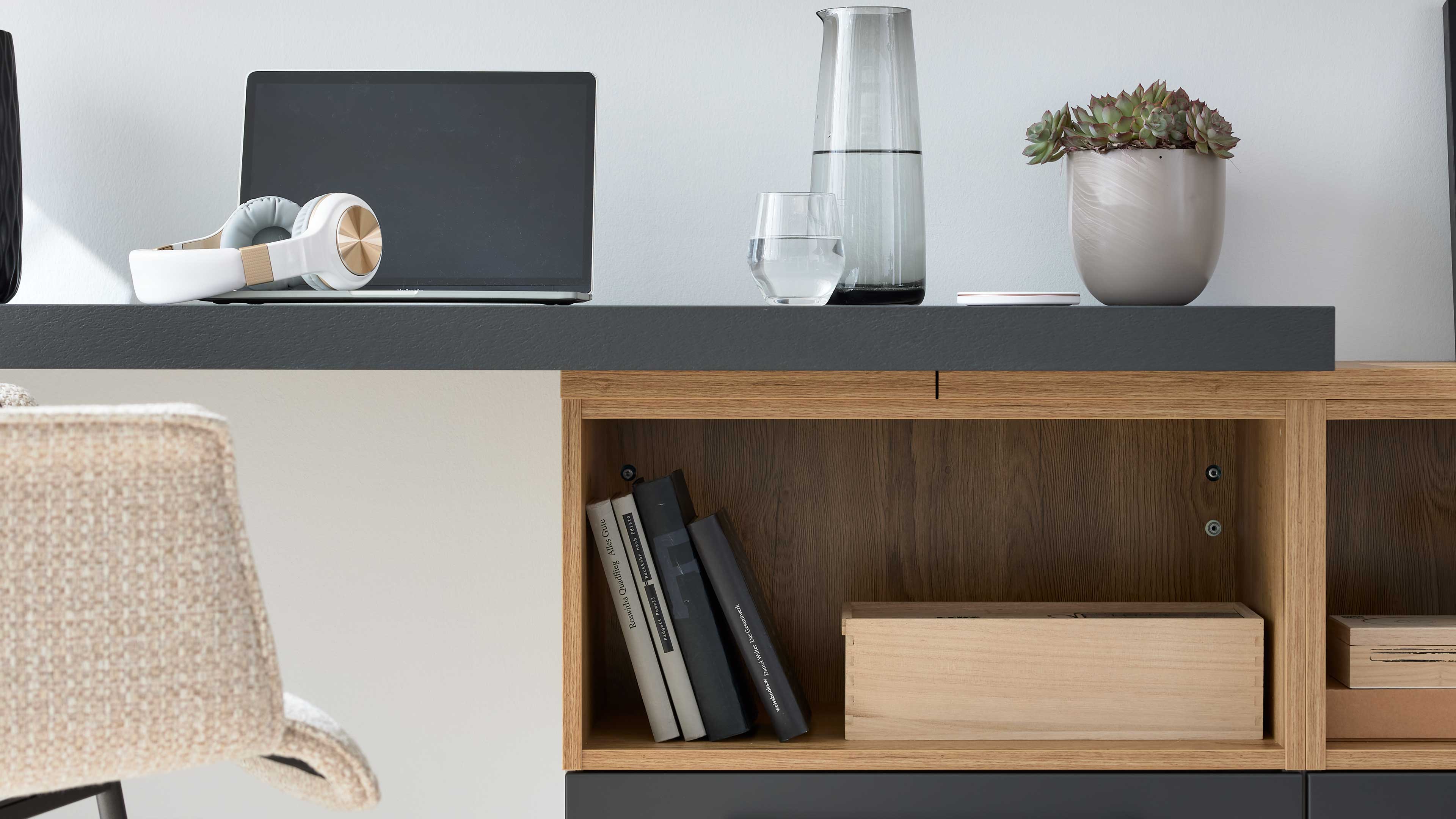 Stilvolle Optik in Graphit und Holz