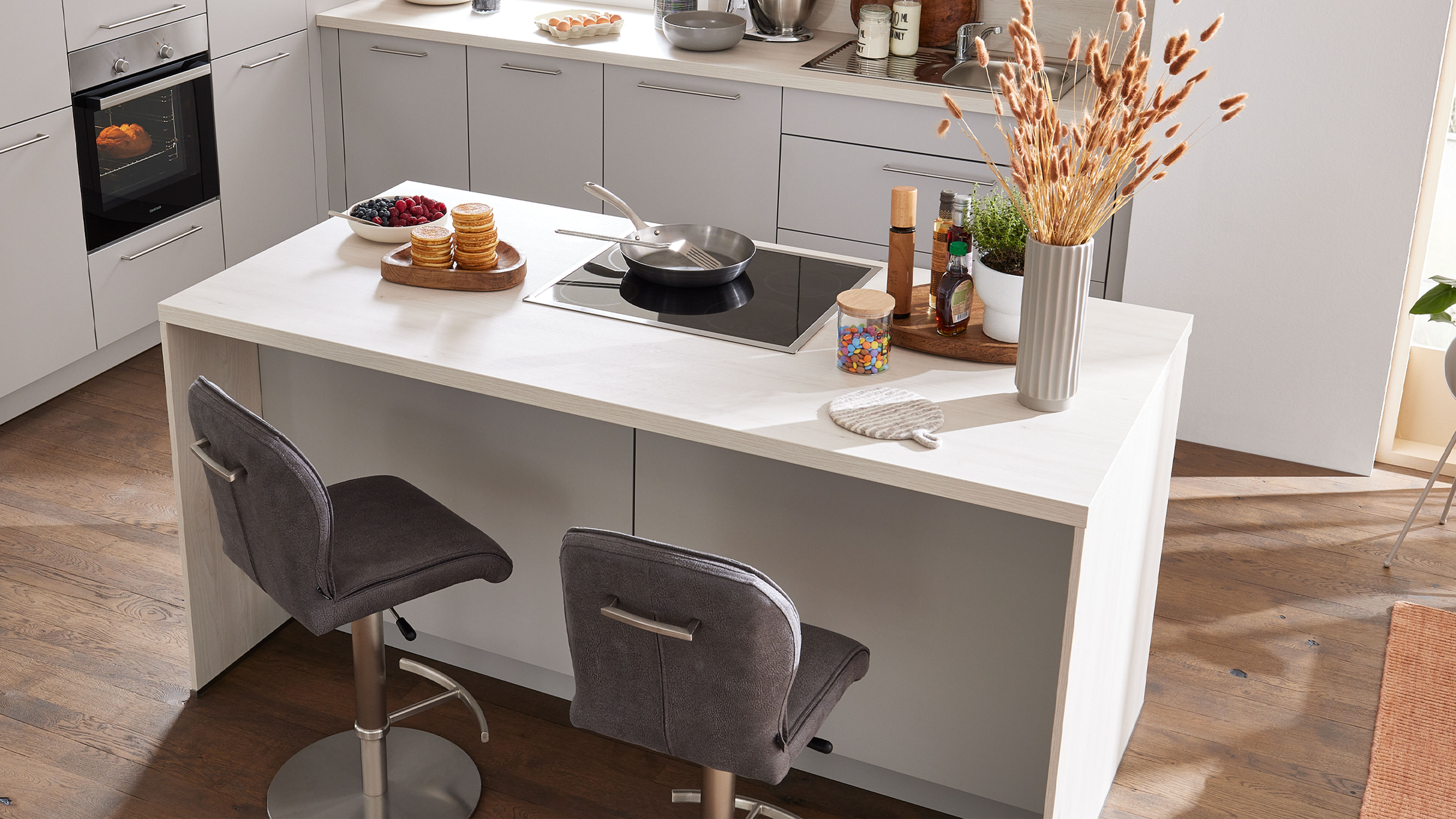 Ob für ein offenes Wohnkonzept oder eine kompakte Raumsituation – die Interliving Küche Serie 3077 passt sich deinen Bedürfnissen an. Dank der modularen Struktur kannst du Stauraum, Arbeitsflächen und Geräte exakt auf deine Anforderungen abstimmen.